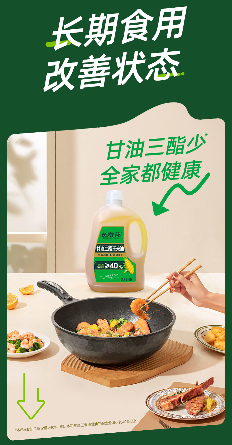 长寿花轻酯甘油二酯食用油40%DAG含量 5L 甘油二酯玉米油家庭装赠送2.5kgl长粒香大米