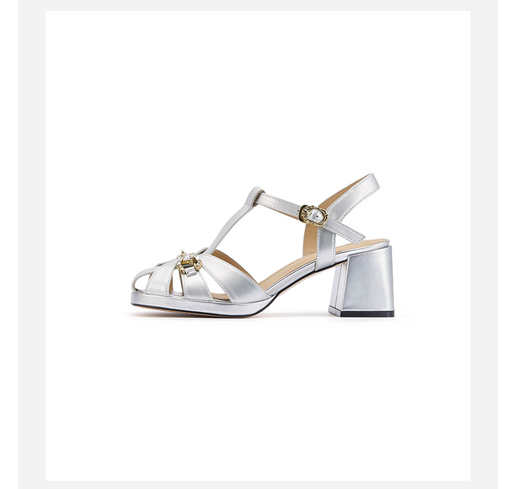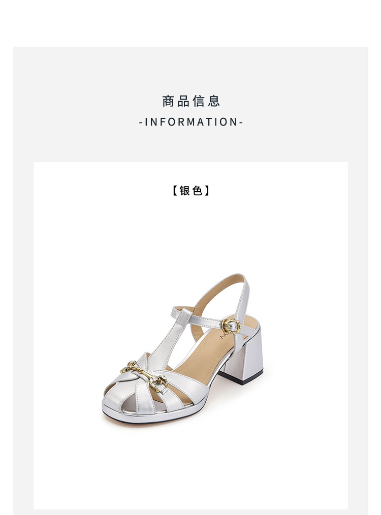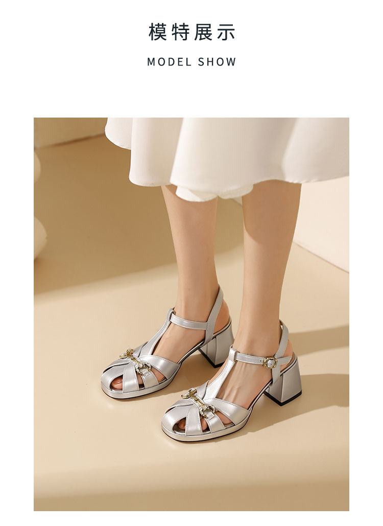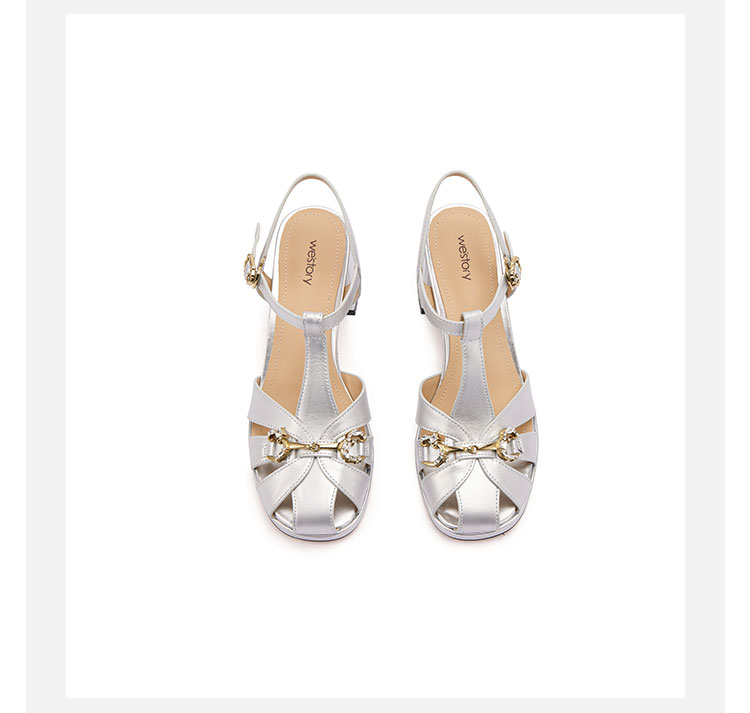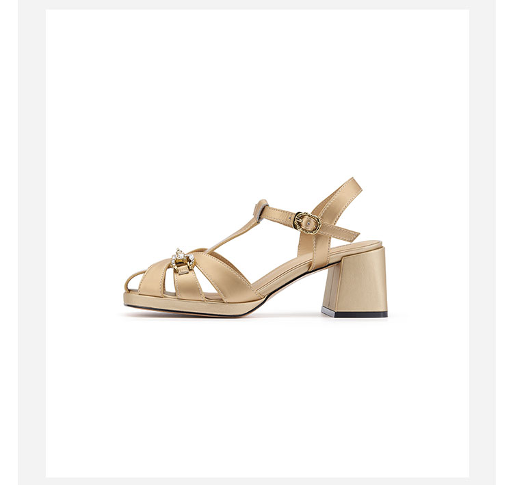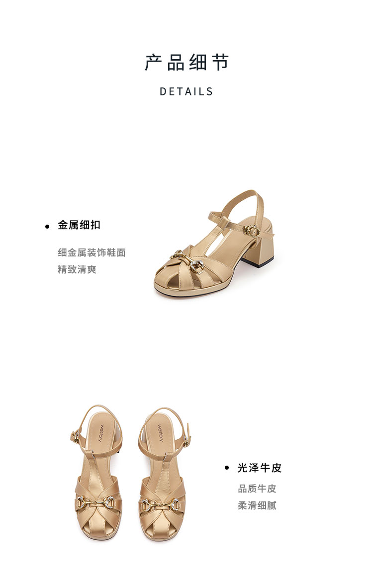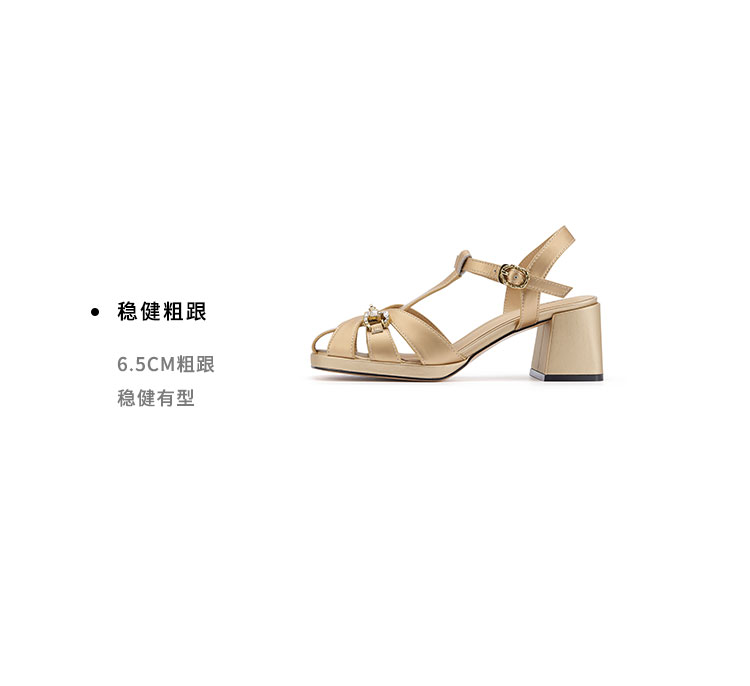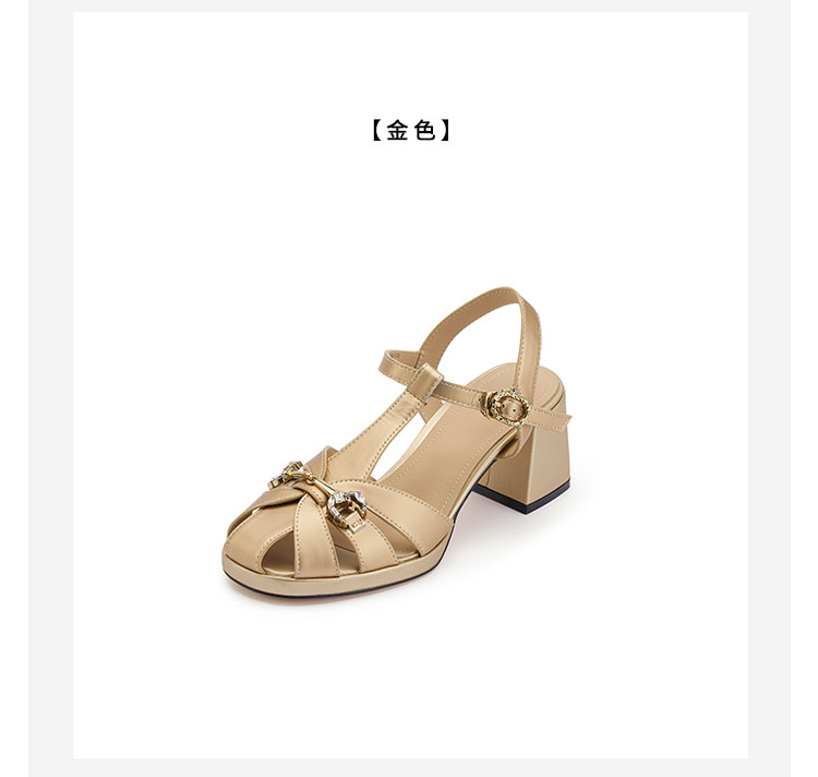 westory粗跟猪笼凉鞋罗马凉鞋圆头中粗跟露趾圆头系带凉鞋W24BG61831