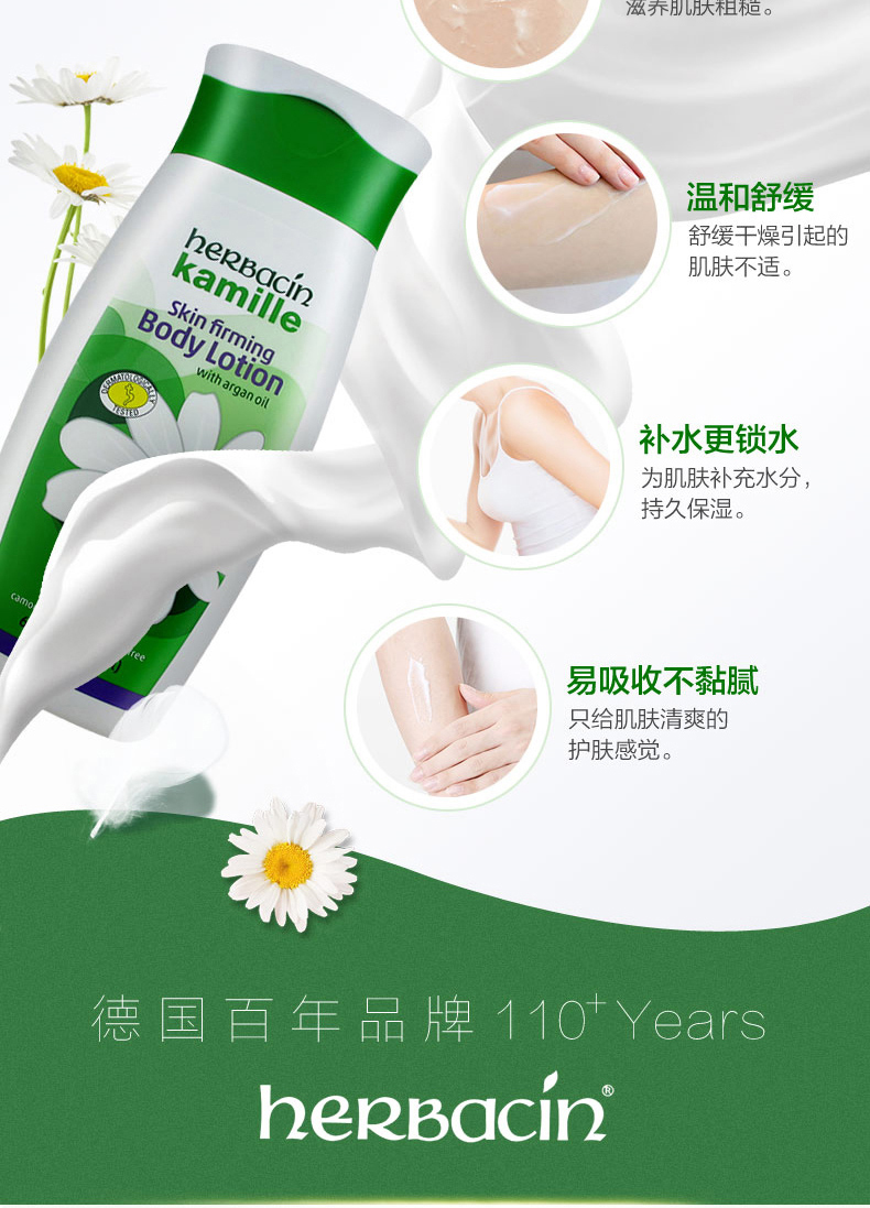 (Herbacin)德国小甘菊经典紧肤乳液 200ml 四季适用 补水保湿