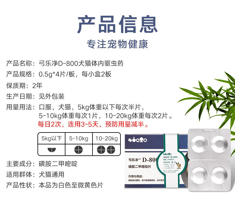 美国巴迪D800弓乐净宠物狗狗弓形虫球虫猫咪体内打虫药驱虫药
