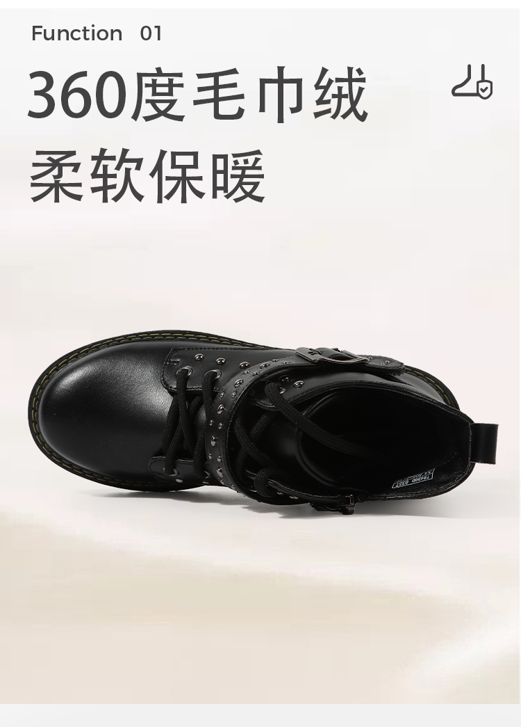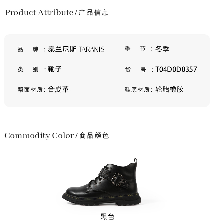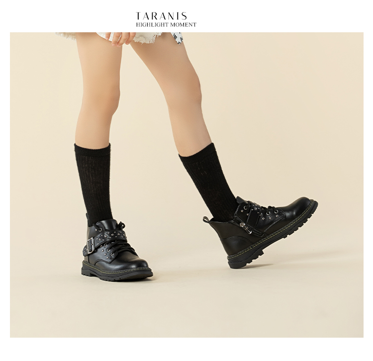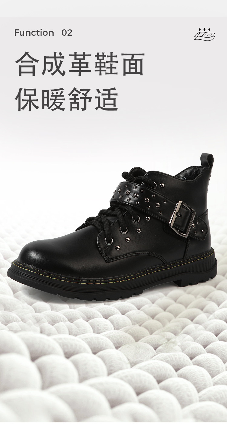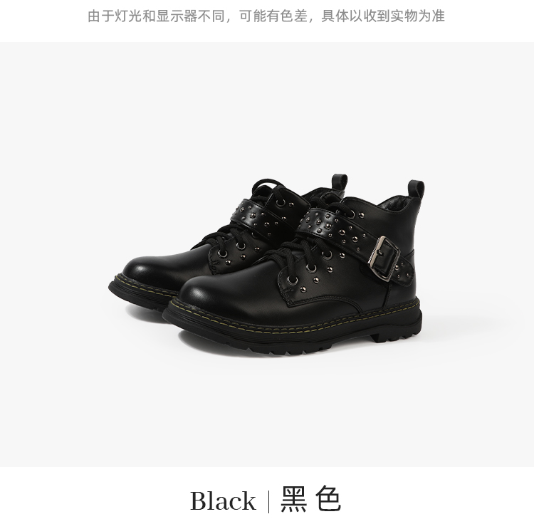 泰兰尼斯秋冬儿童马丁靴加绒保暖防滑女童鞋学生中大童中帮靴子T04D0D0357