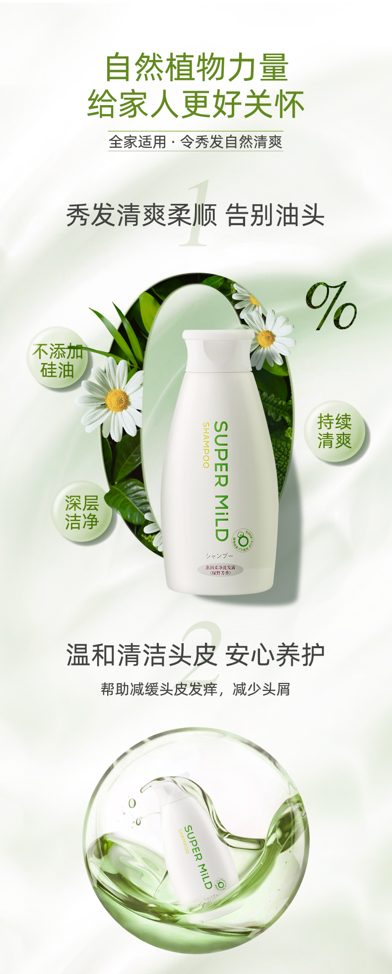 惠润柔净洗发水护发素绿-野芳香220ml无硅油洗发水男女士柔顺滋润持久留香去屑修复