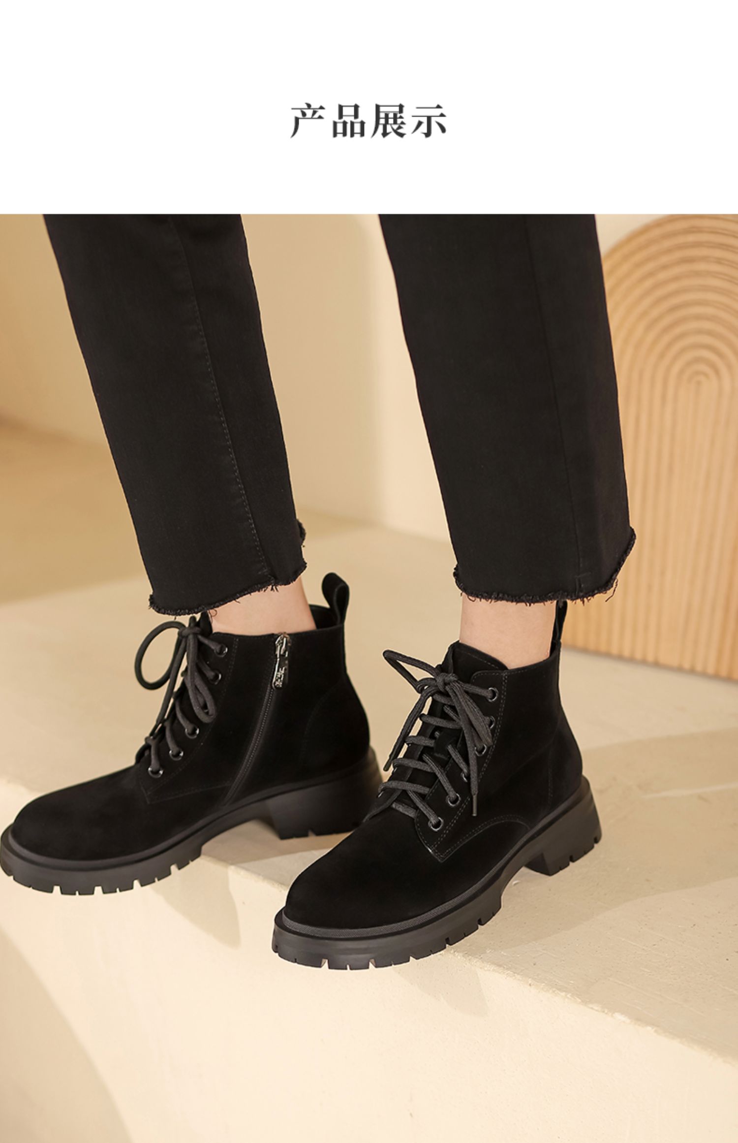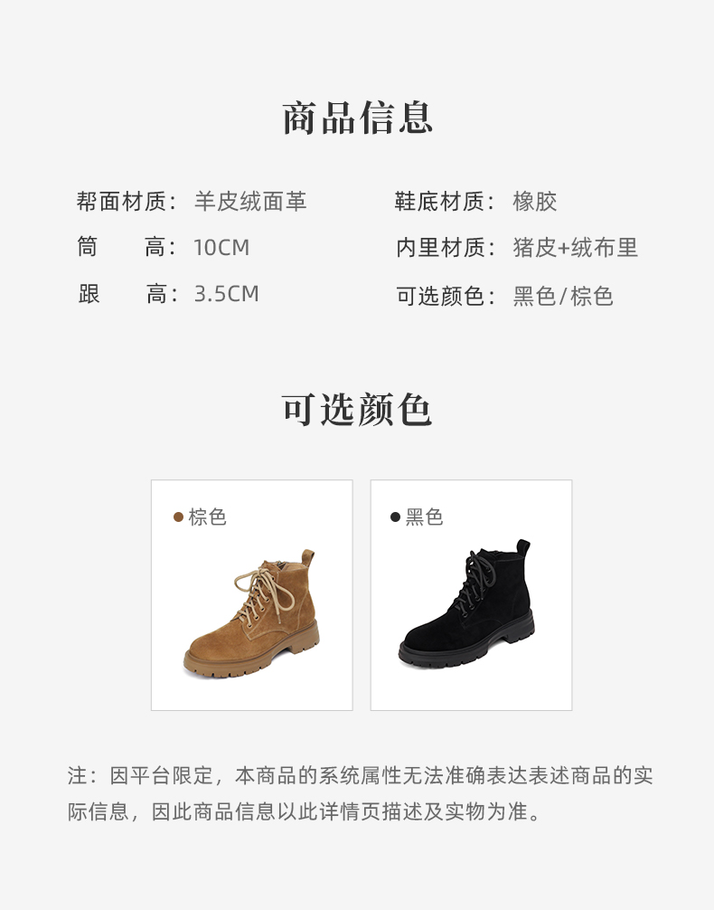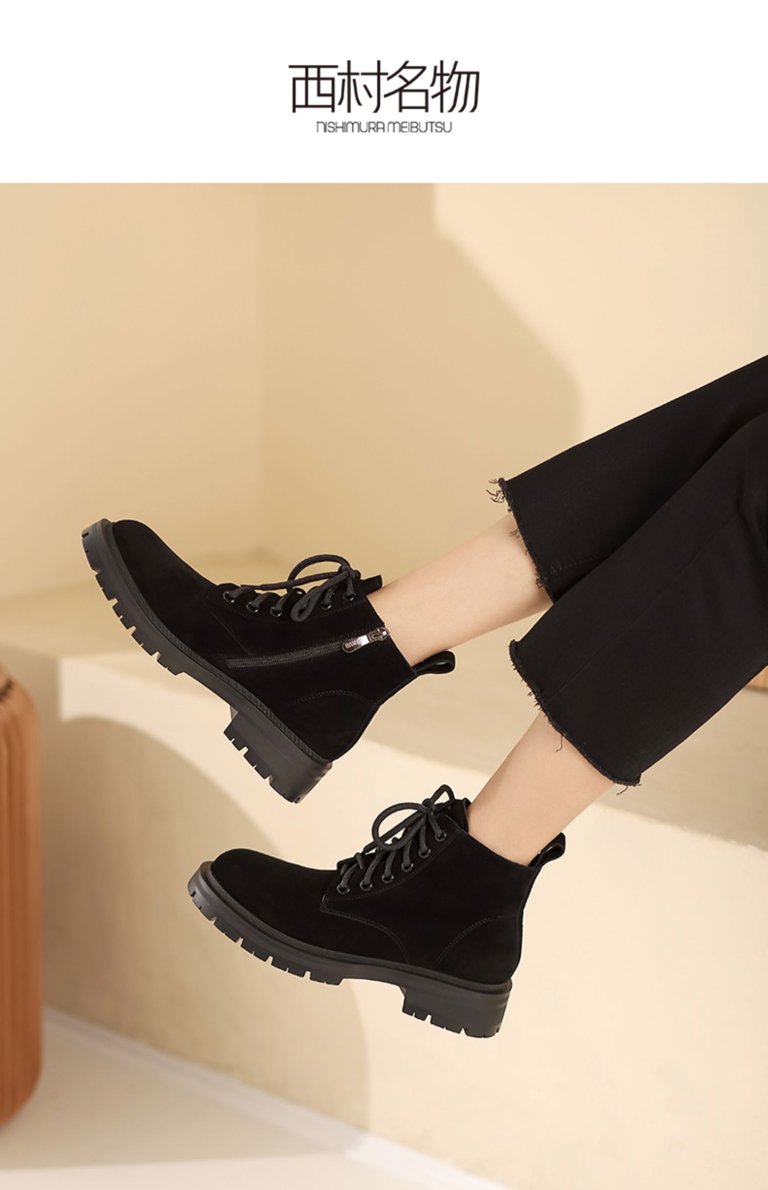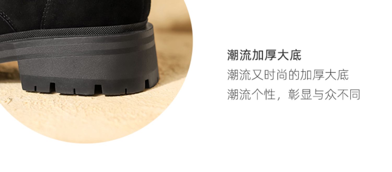西村名物2021秋冬新款磨砂真皮马丁靴女厚底增高短靴英伦风T21DS43761