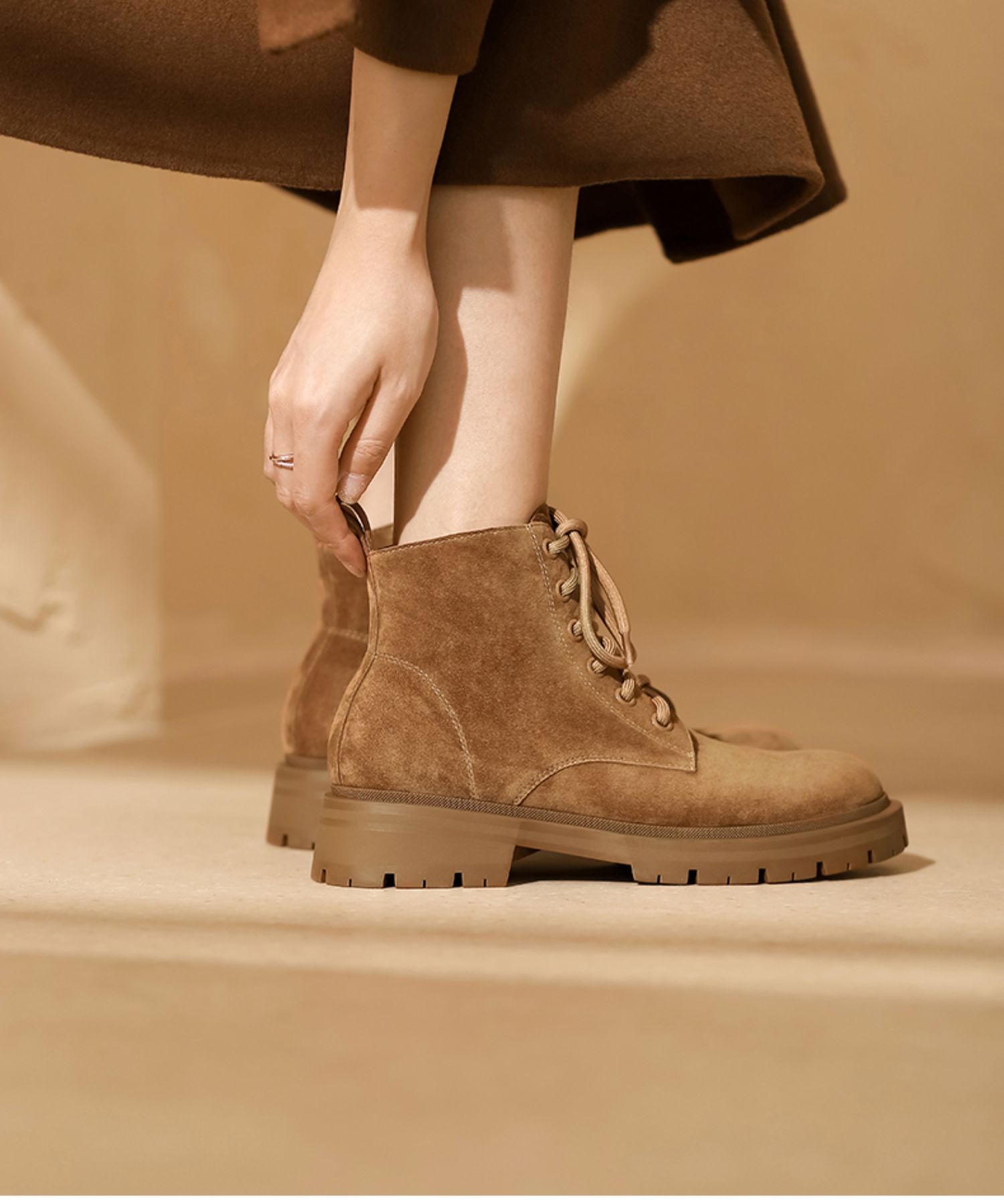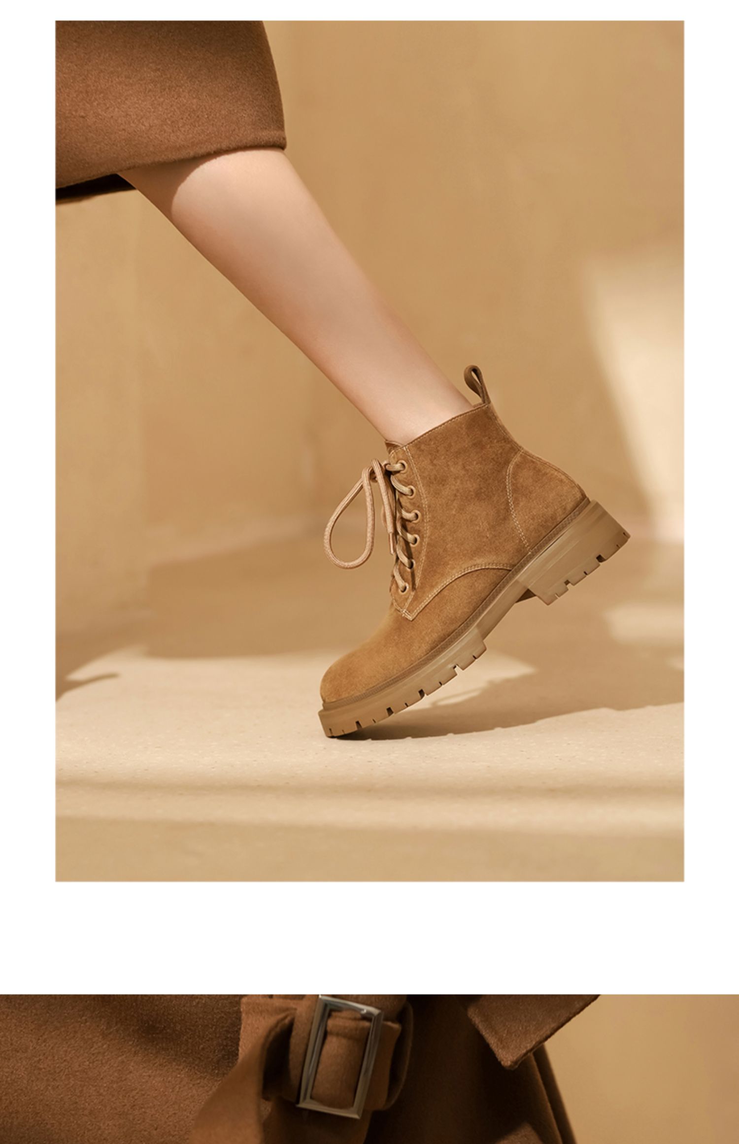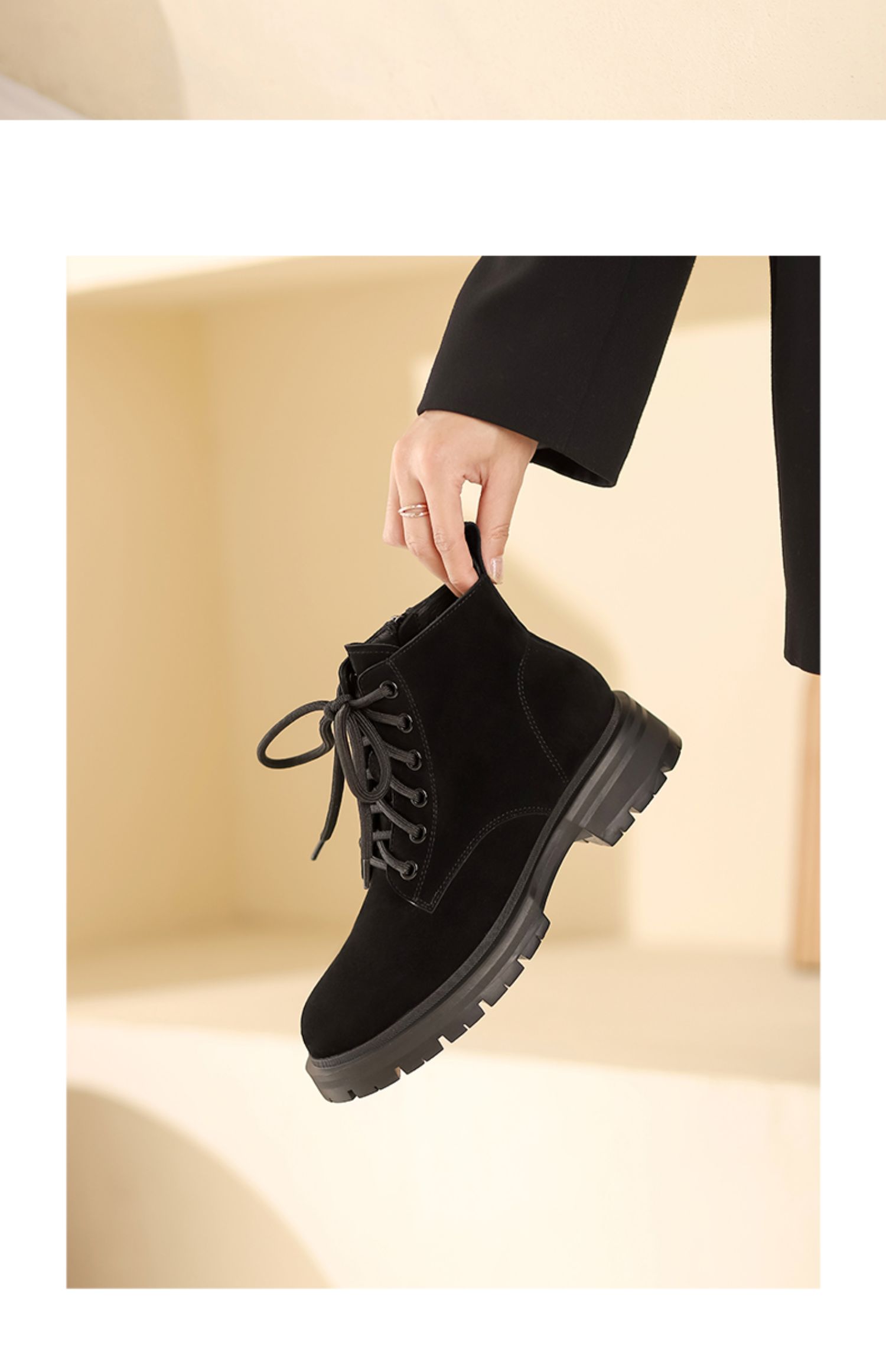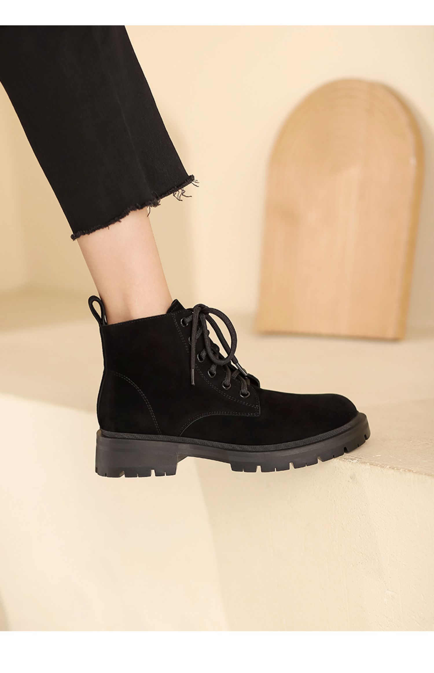 西村名物2021秋冬新款磨砂真皮马丁靴女厚底增高短靴英伦风T21DS43761