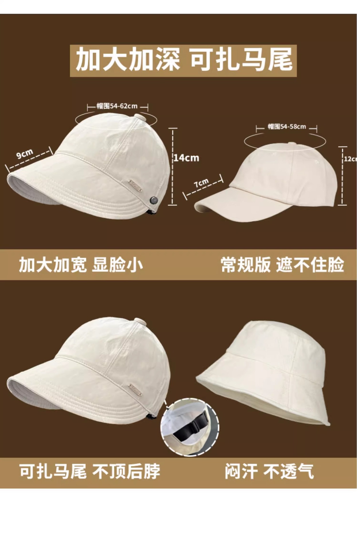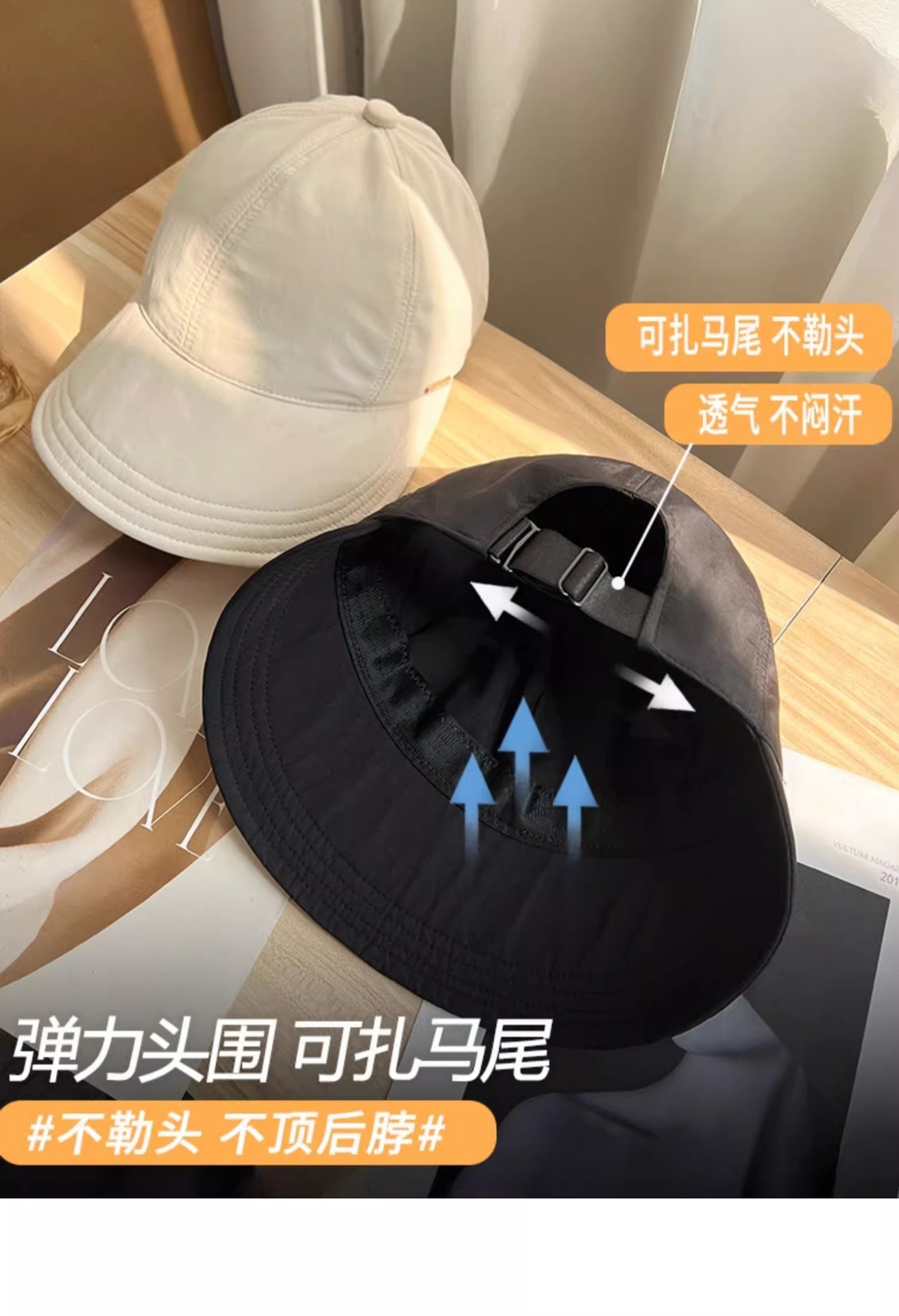 【露思同款,大帽檐渔夫帽】可调节不勒头 显脸小 可带口罩可扎马尾 明星博主zui爱 防晒防紫外线遮阳帽素颜太阳帽子