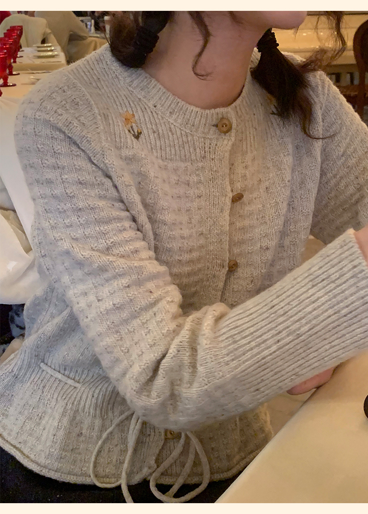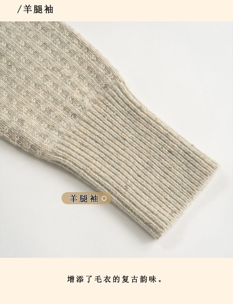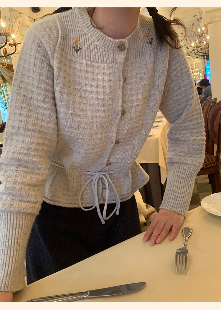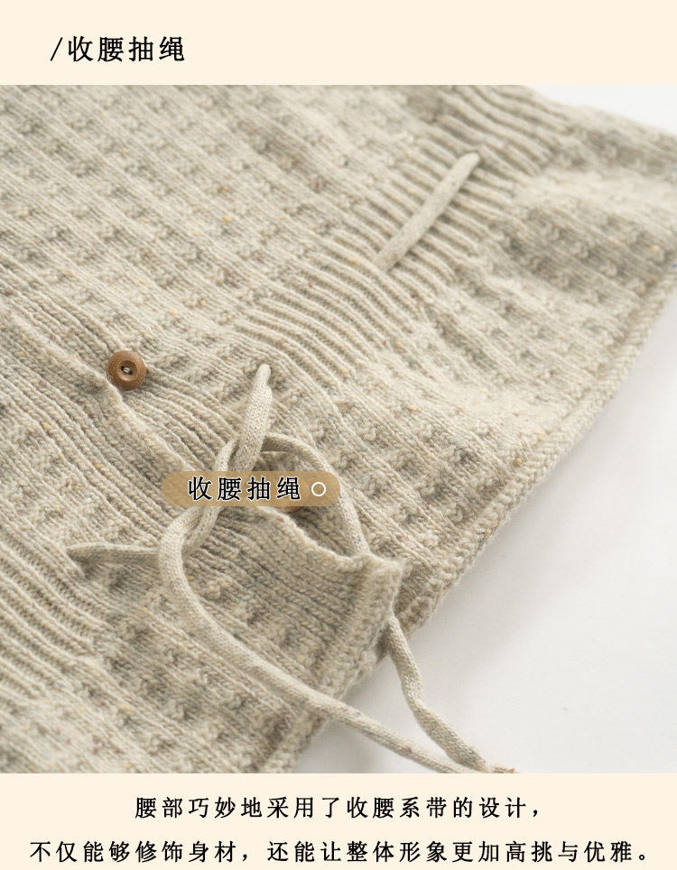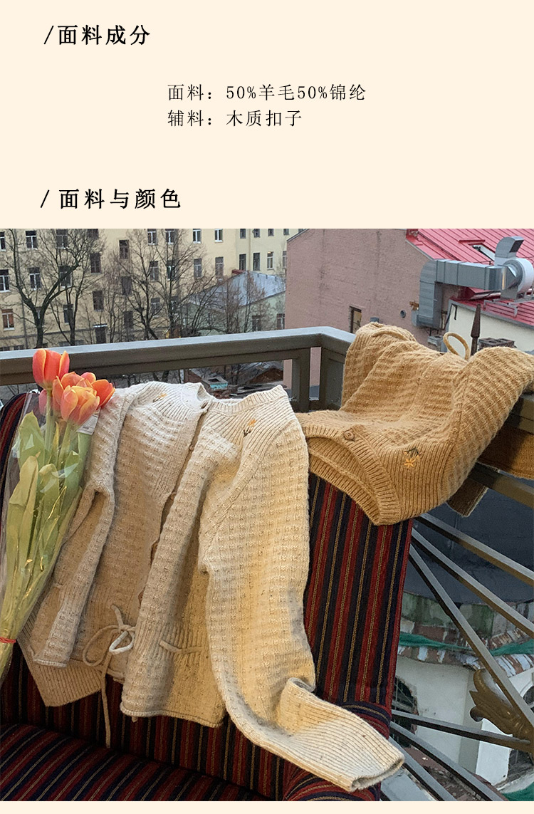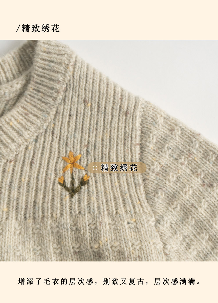 浮生八记/24D207/复古北欧手工钩针花朵华夫格针法系带毛衣