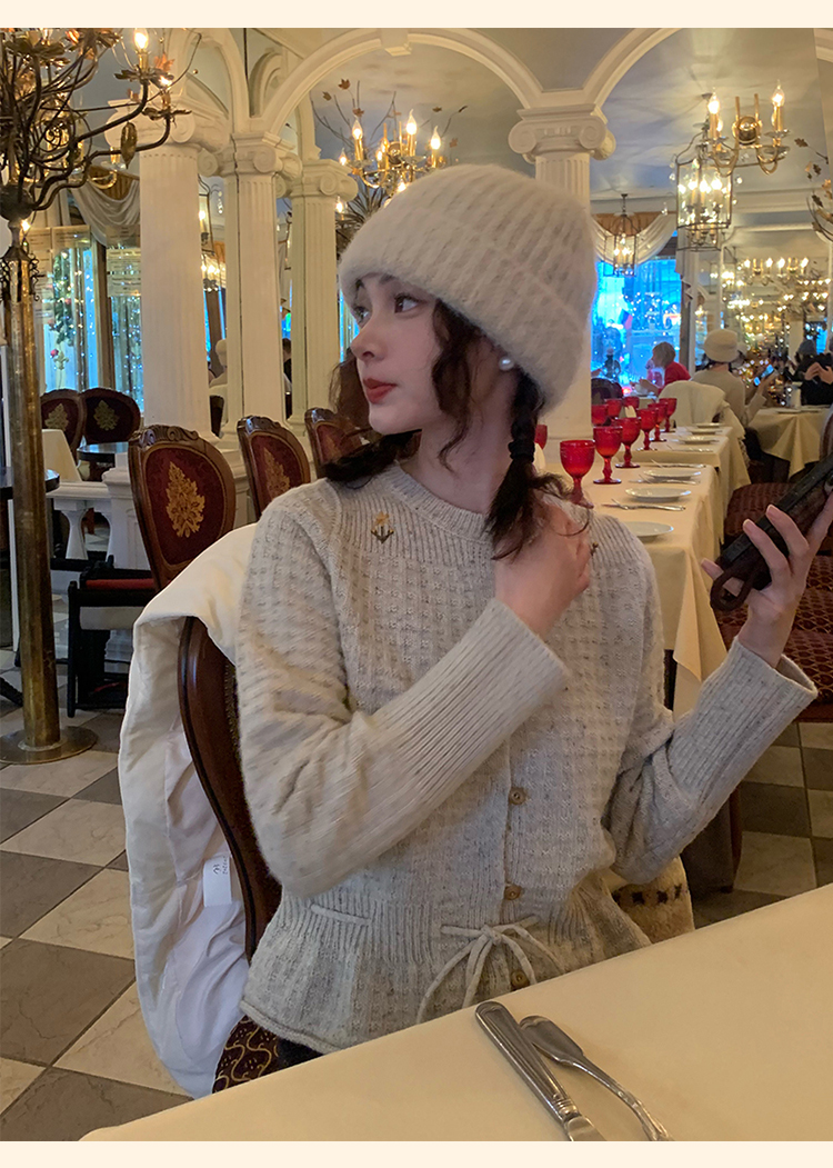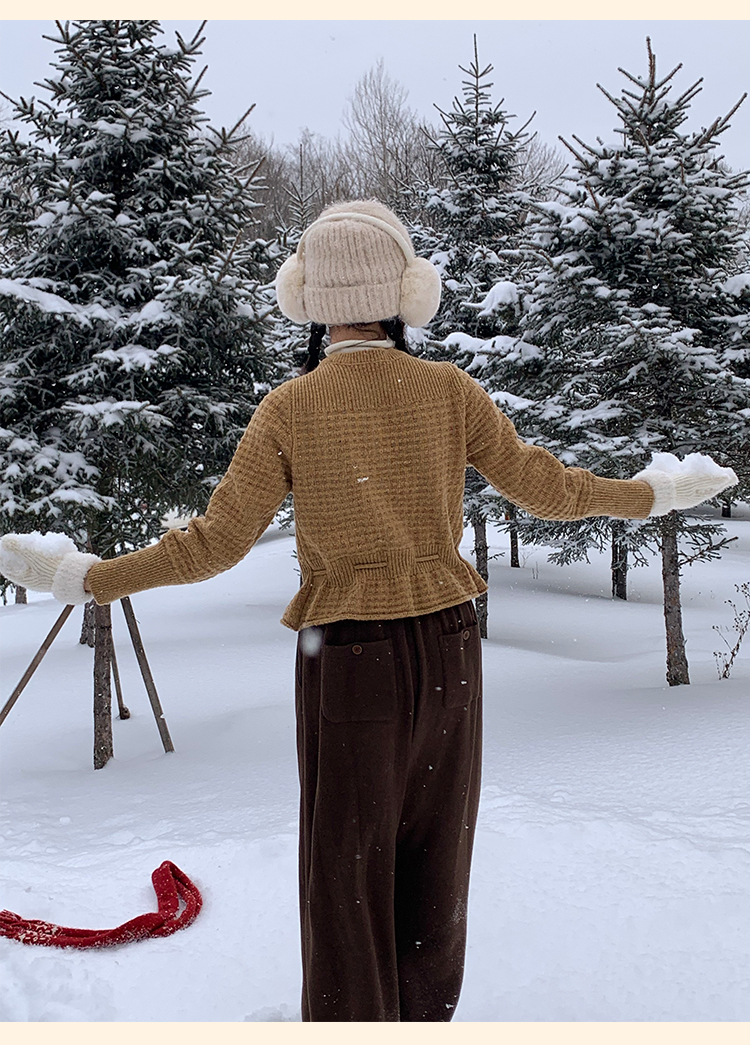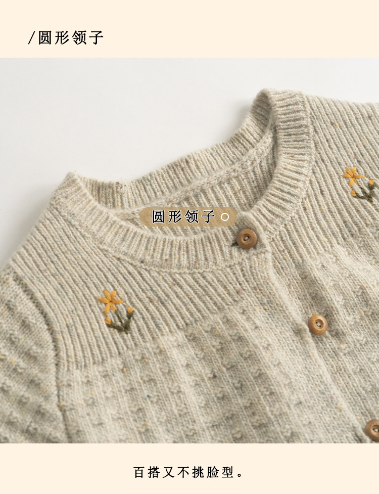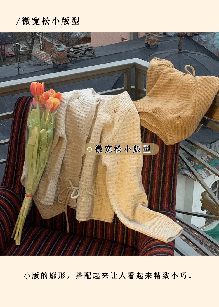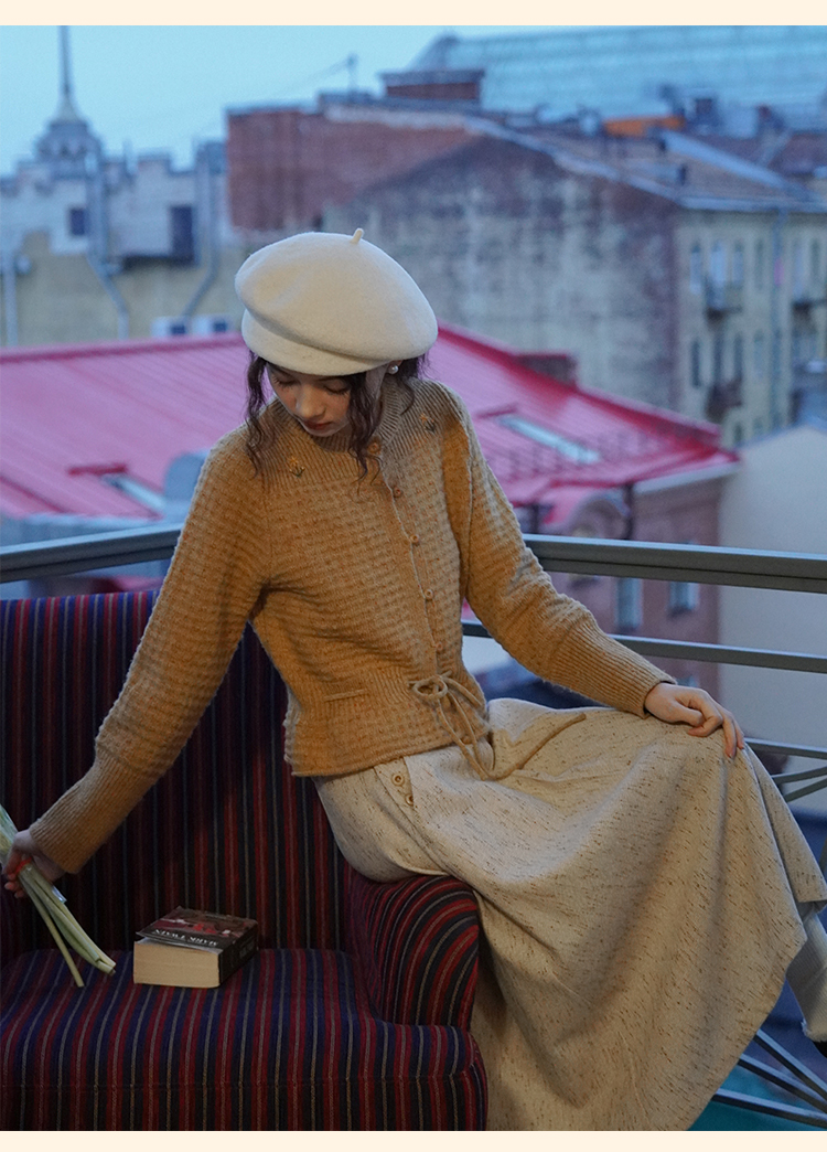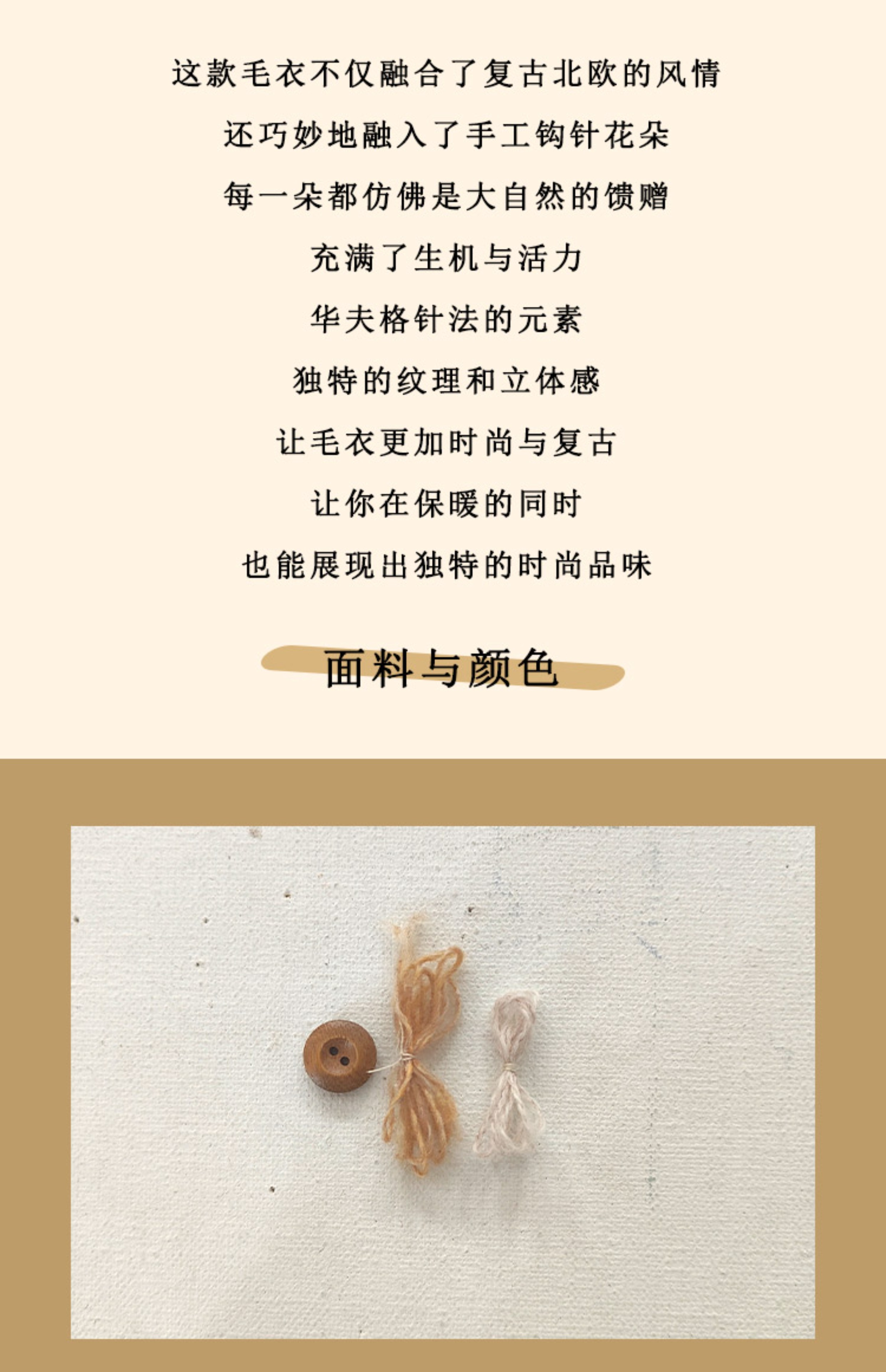 浮生八记/24D207/复古北欧手工钩针花朵华夫格针法系带毛衣