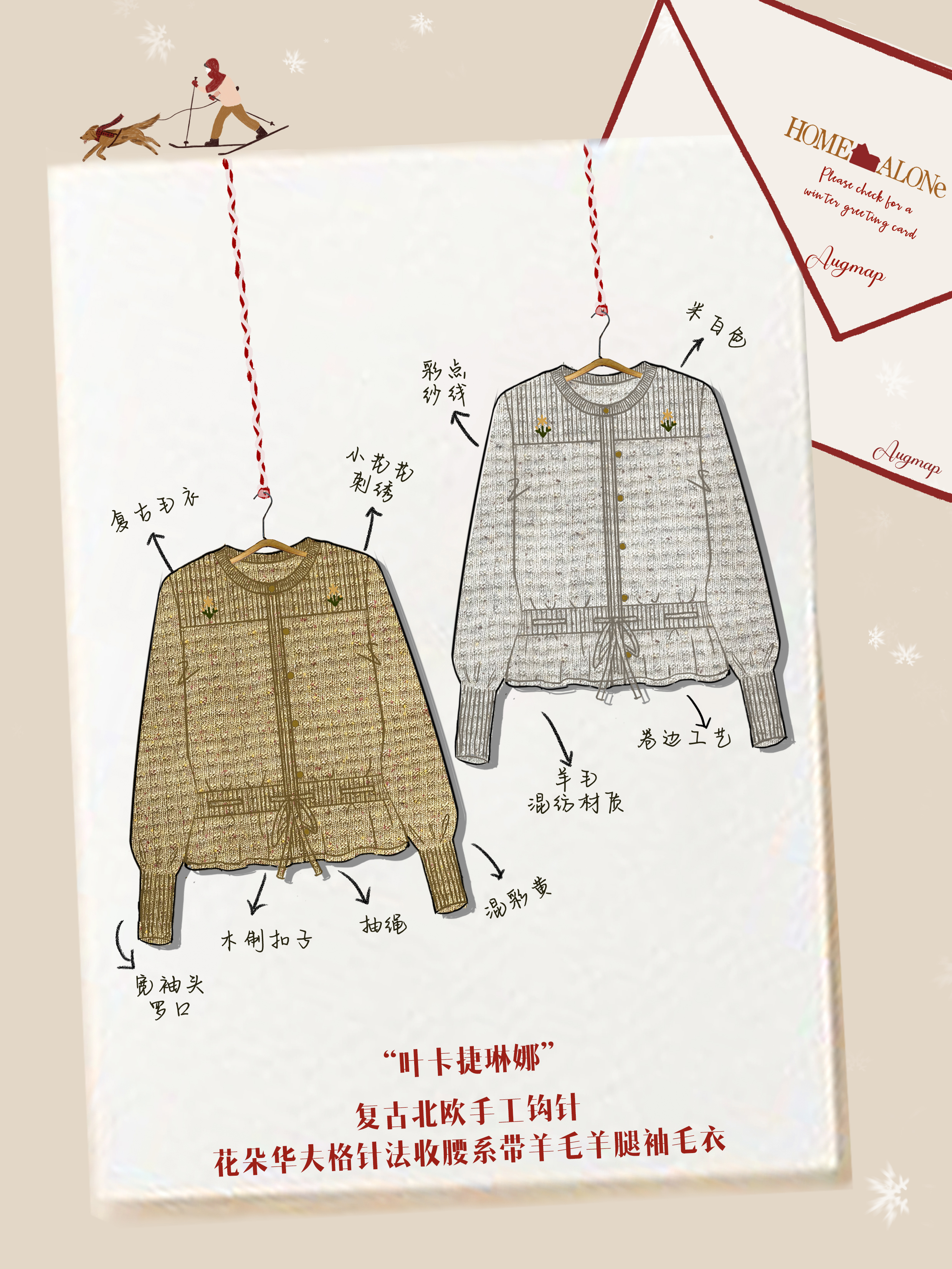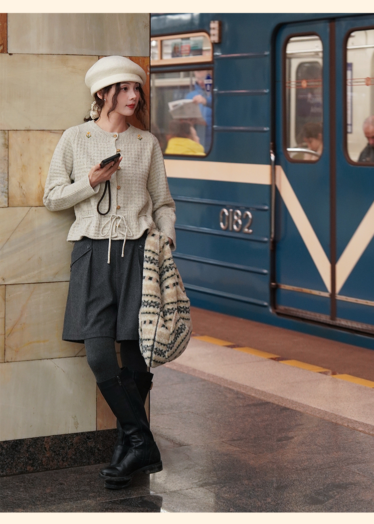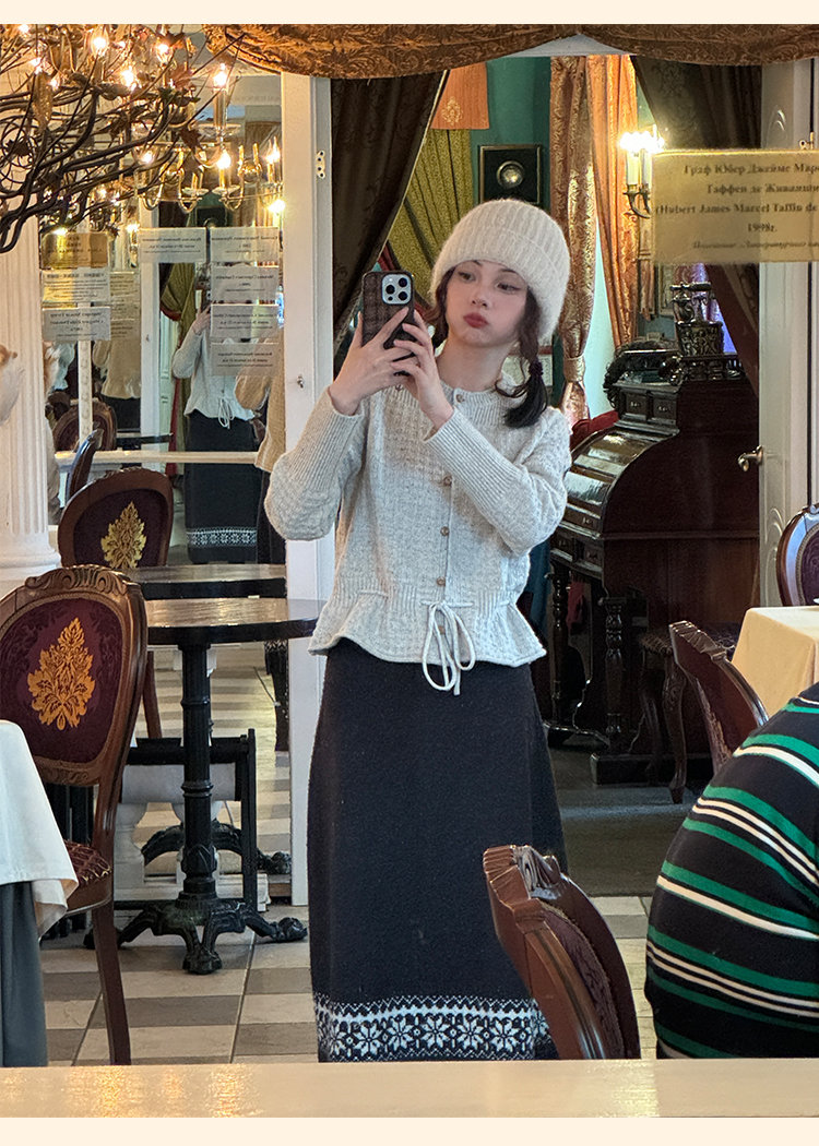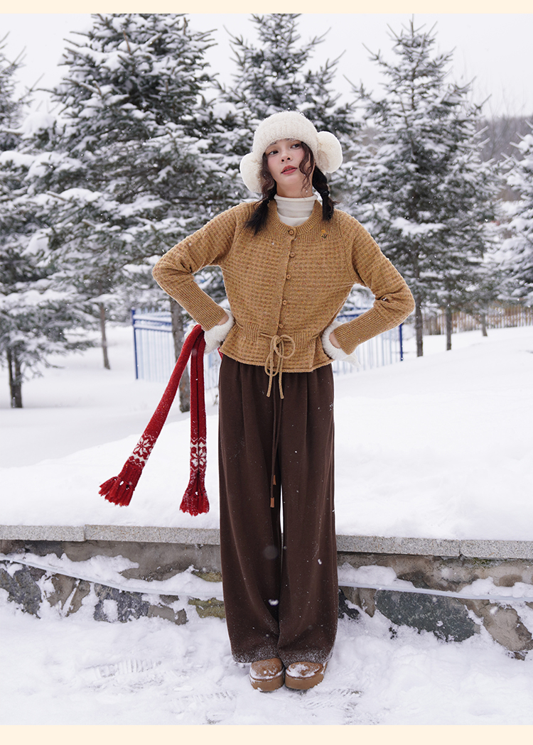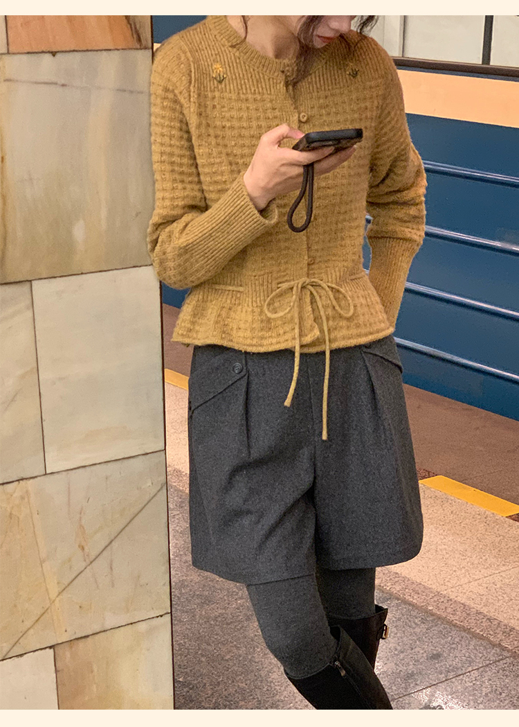 浮生八记/24D207/复古北欧手工钩针花朵华夫格针法系带毛衣