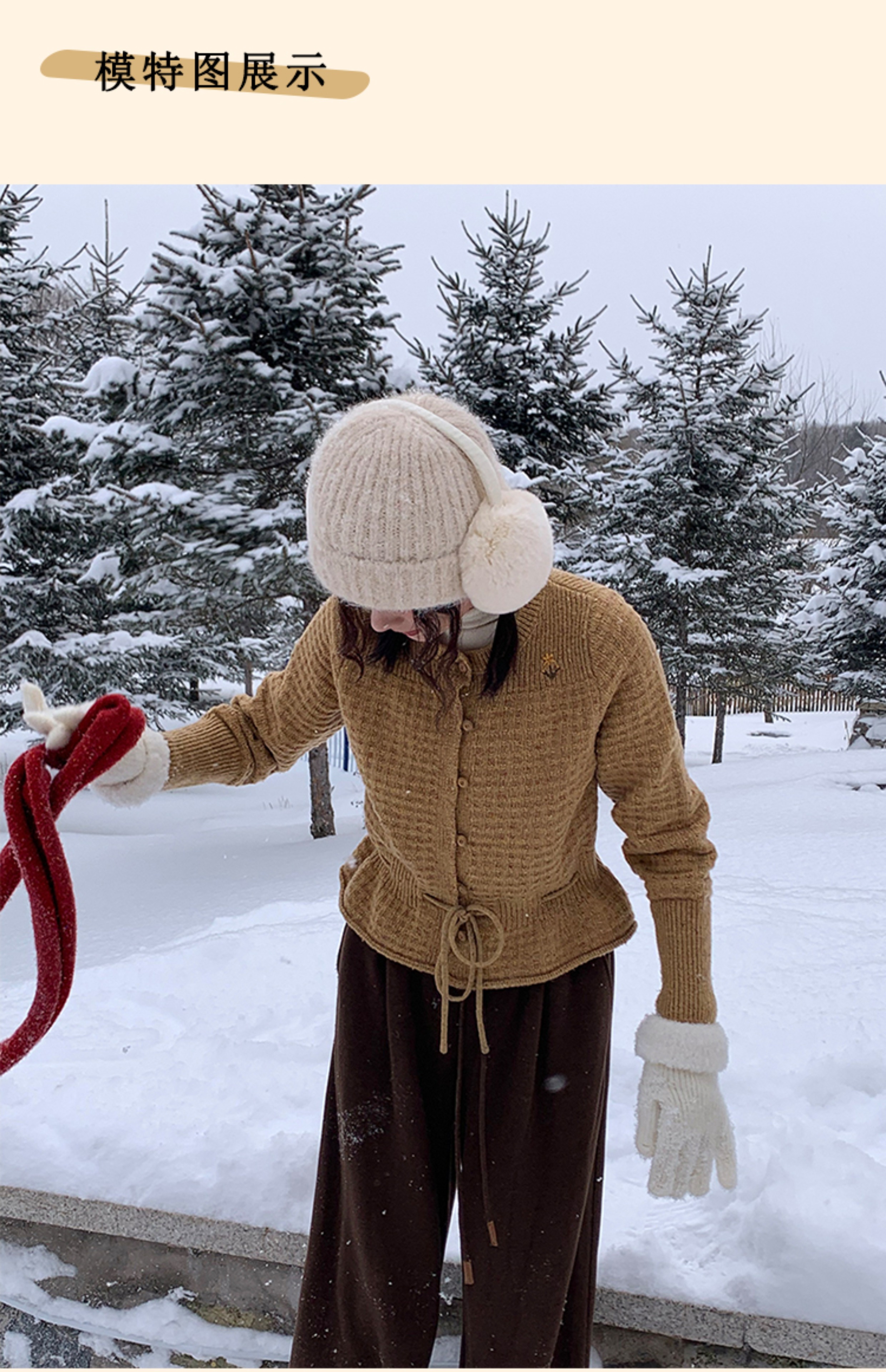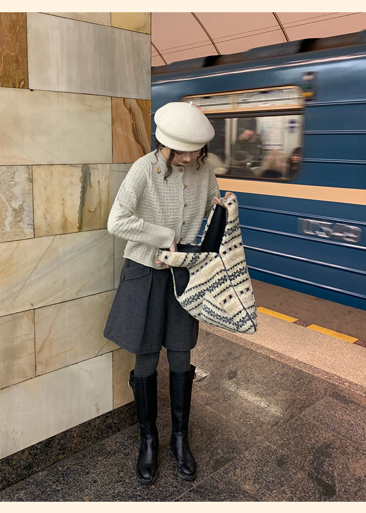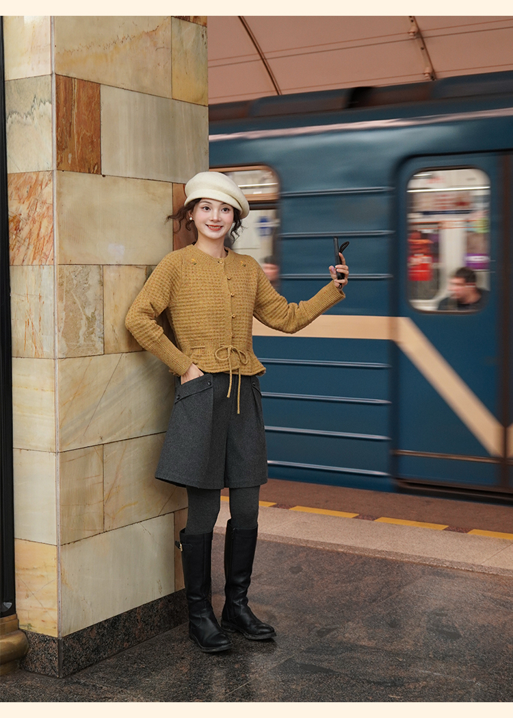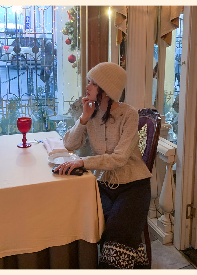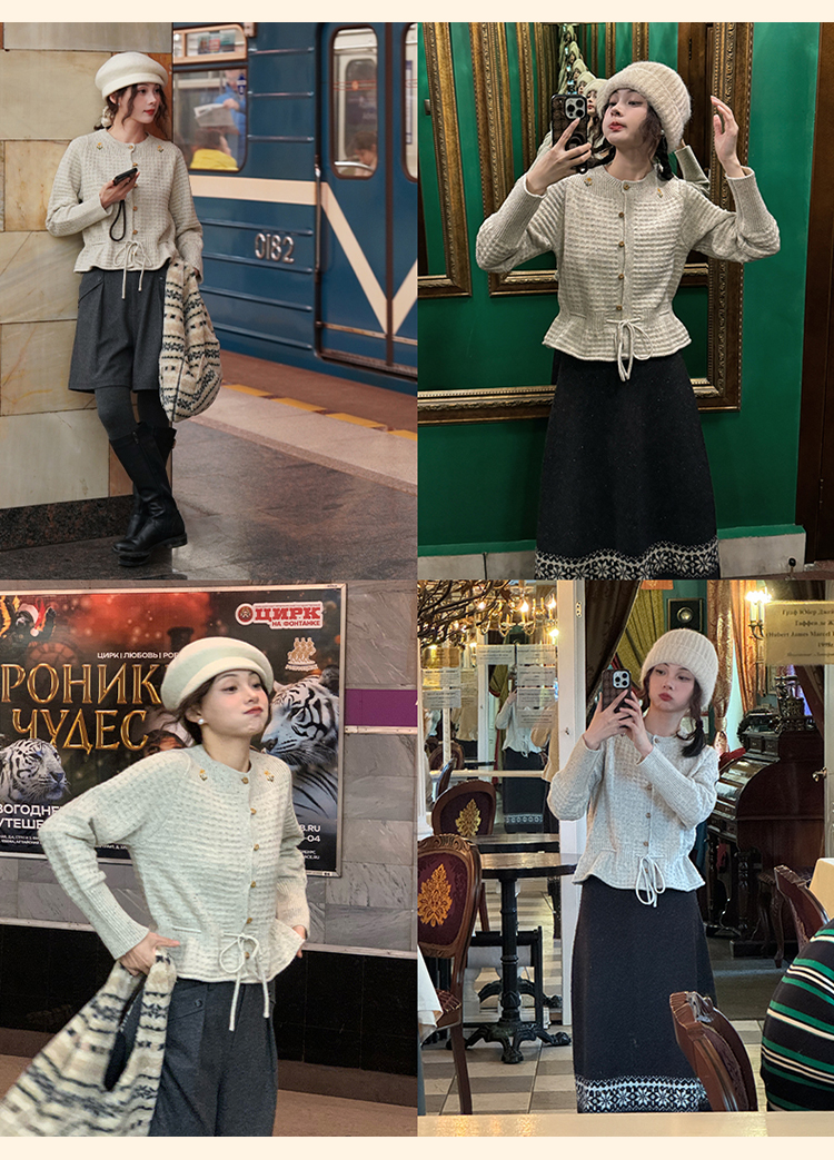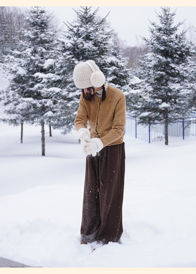 浮生八记/24D207/复古北欧手工钩针花朵华夫格针法系带毛衣