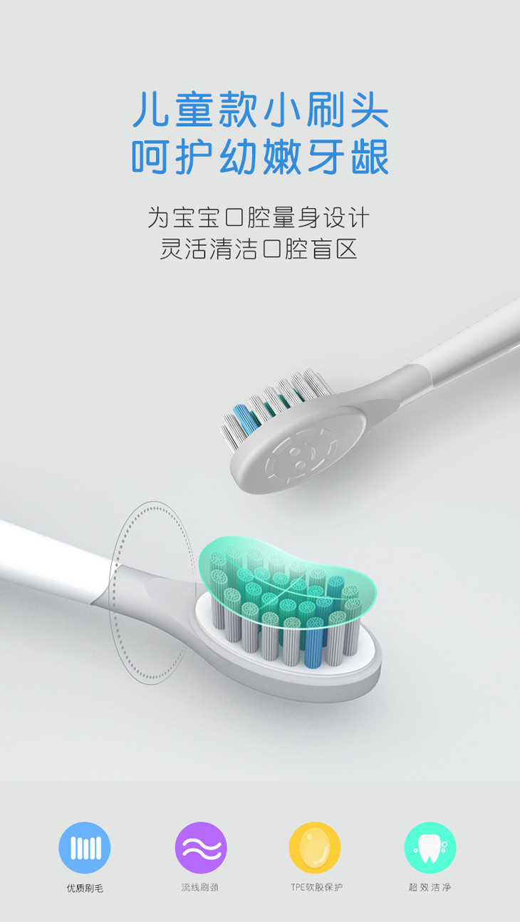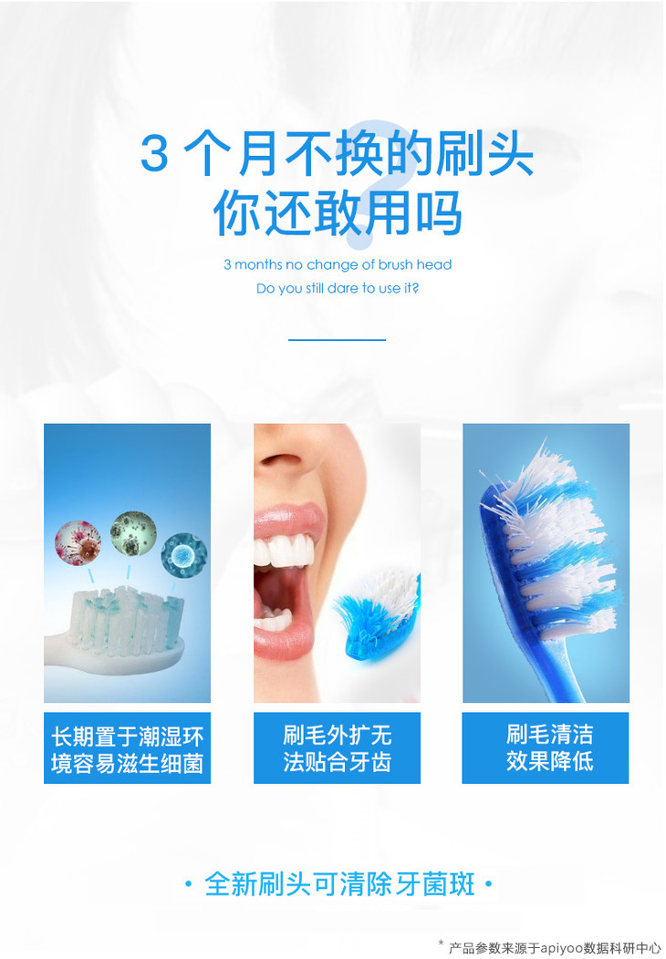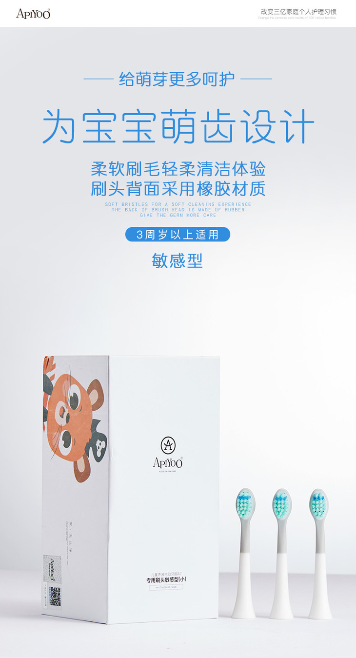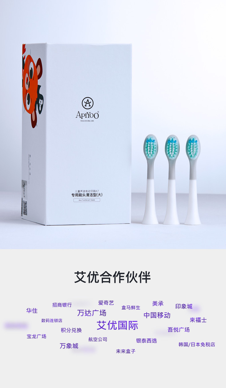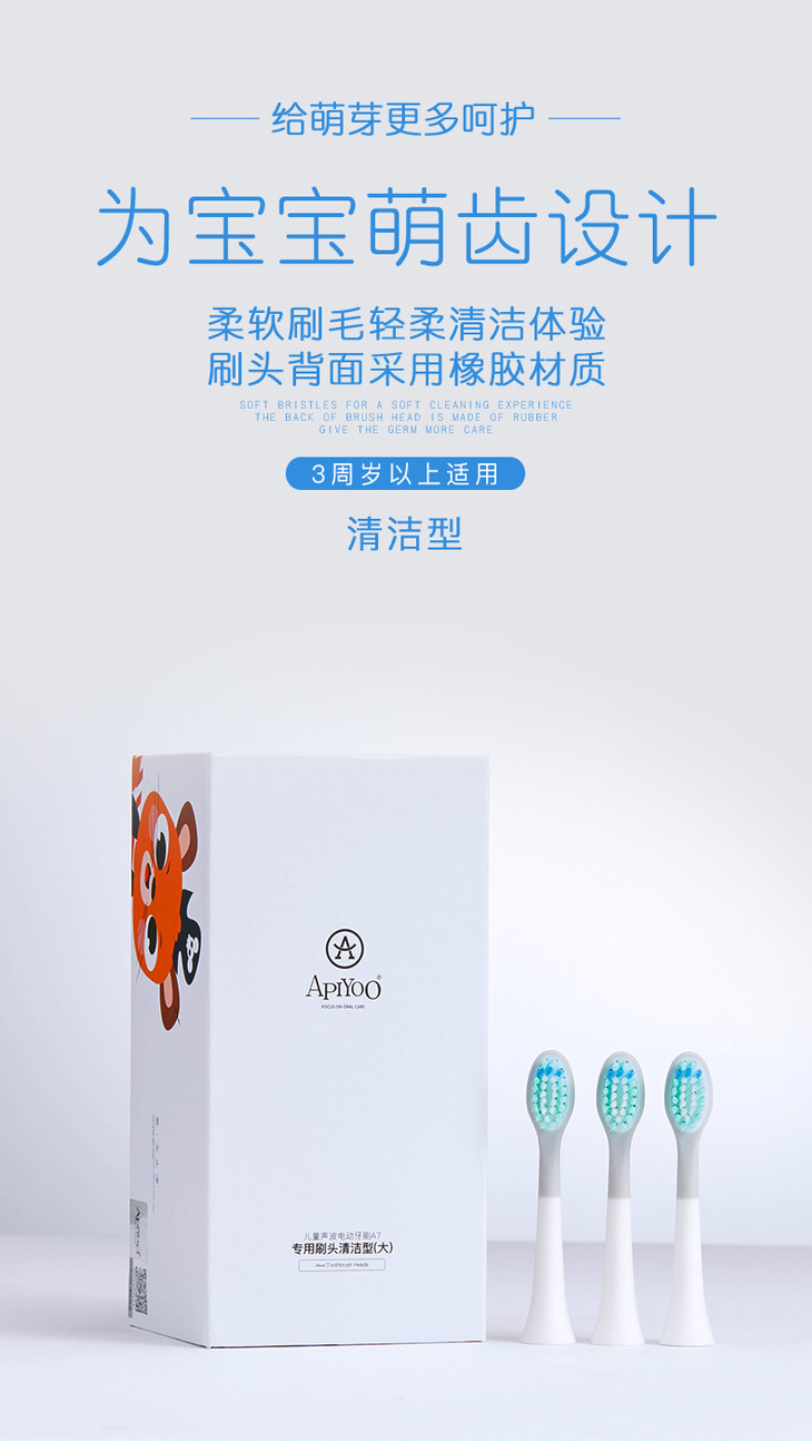 apiyoo艾优儿童清洁型、敏感型A7电动牙刷刷头原装替换刷头3支装