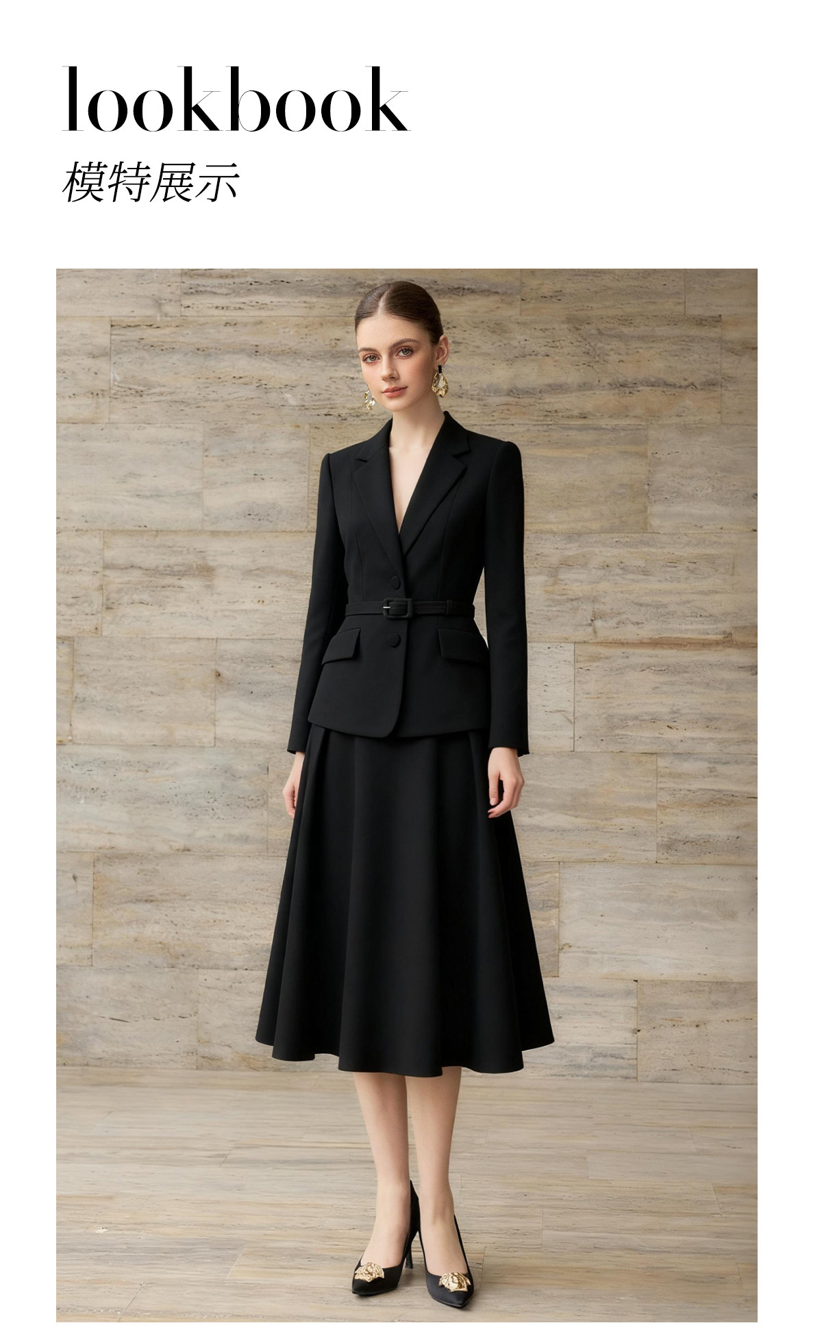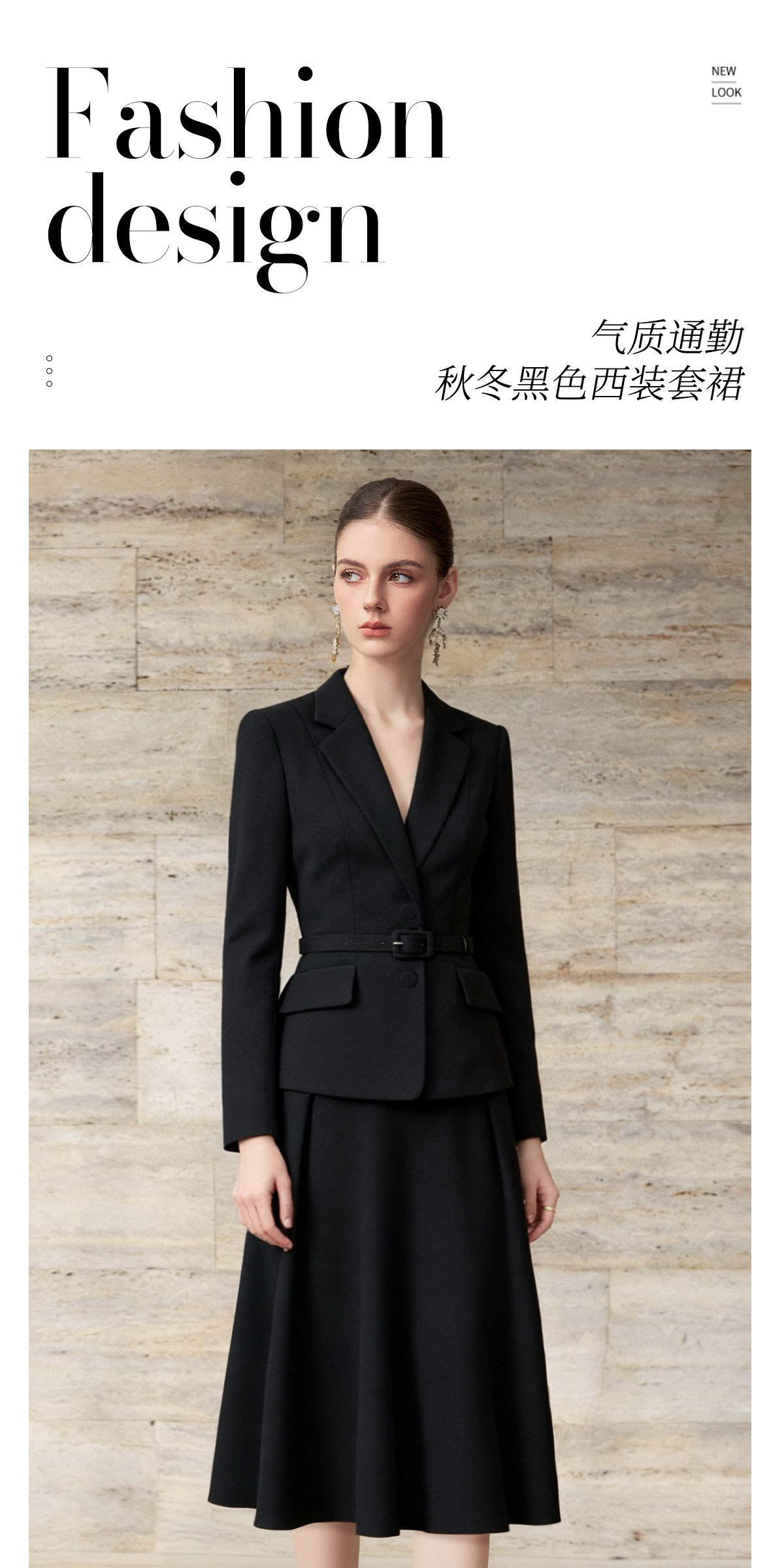 IWY/气质黑色西装套裙女高级感收腰职业装通勤两件套售楼部正装WCS371