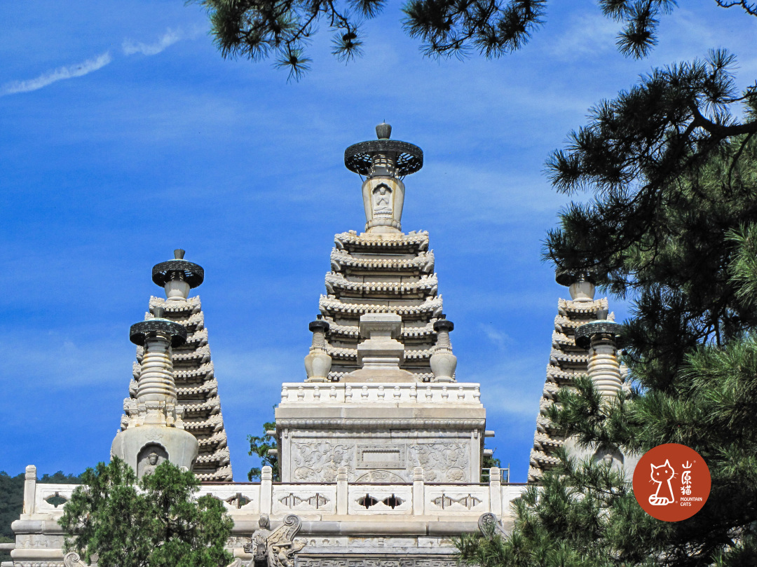 金刚宝座塔位于全寺最高点,乾隆年间仿北京五塔寺而建。塔呈方形,砖石结构;高大的塔基上满刻佛像,雕工精美;宝座上矗立五座十三层密檐方塔、两座圆形喇嘛塔和一座屋形方塔,形成藏传佛教独特的曼陀罗建筑形式。