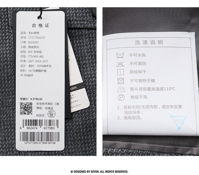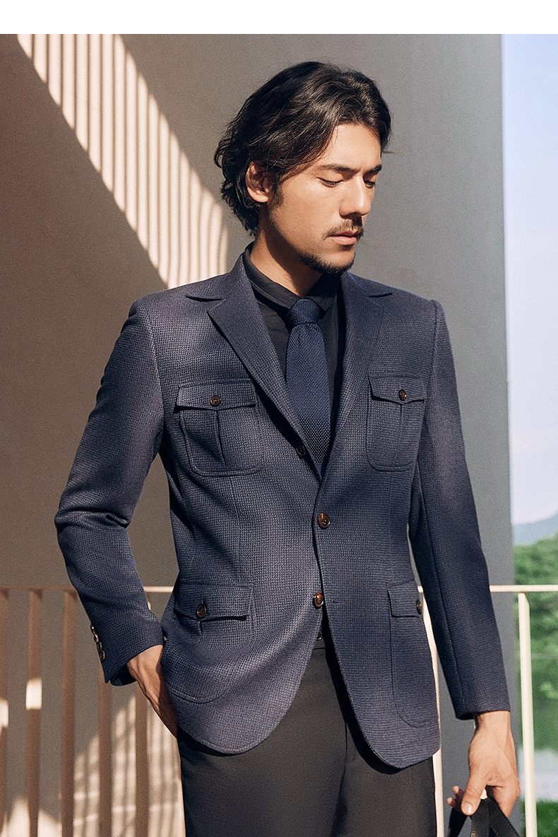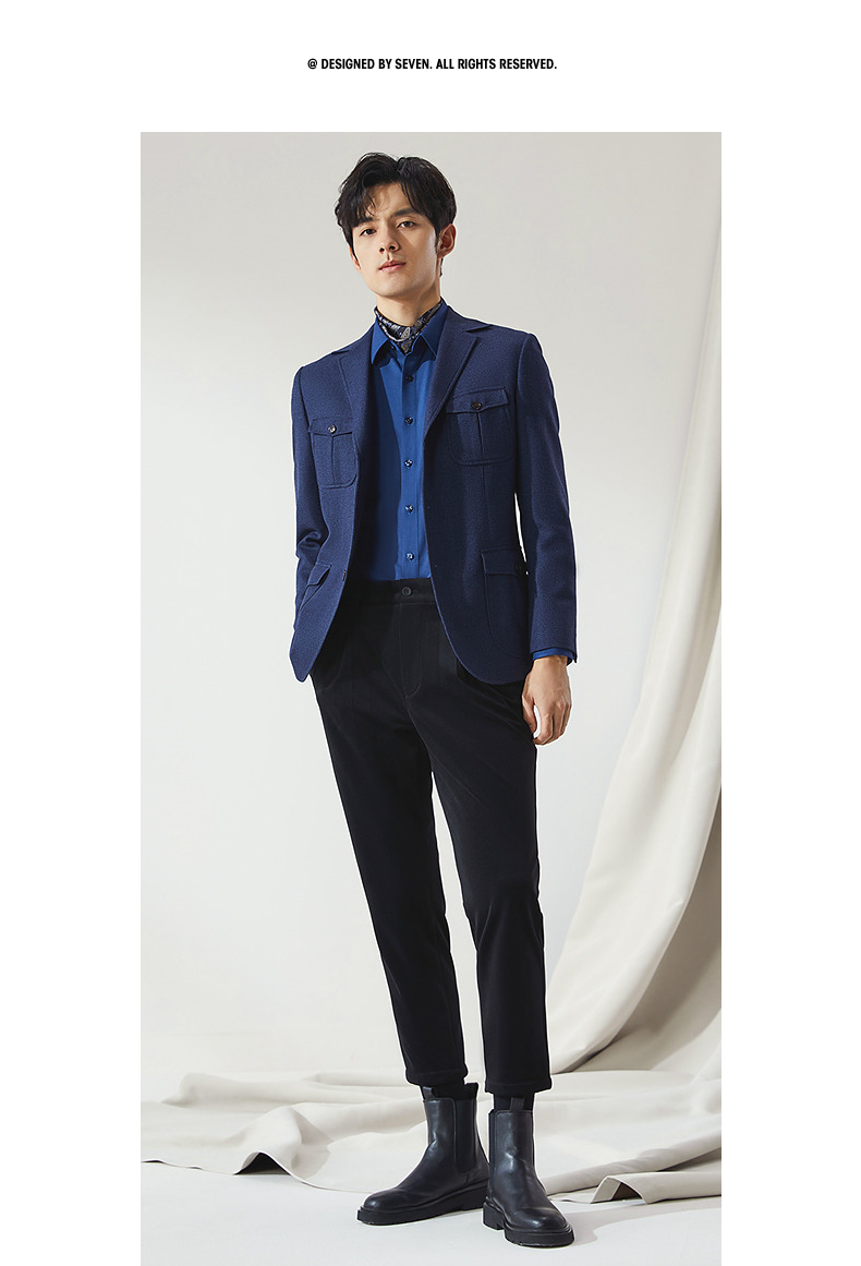 【WoolMark】柒牌休闲西服男2024秋冬新款纯羊毛平驳领单西装外套 127C71050