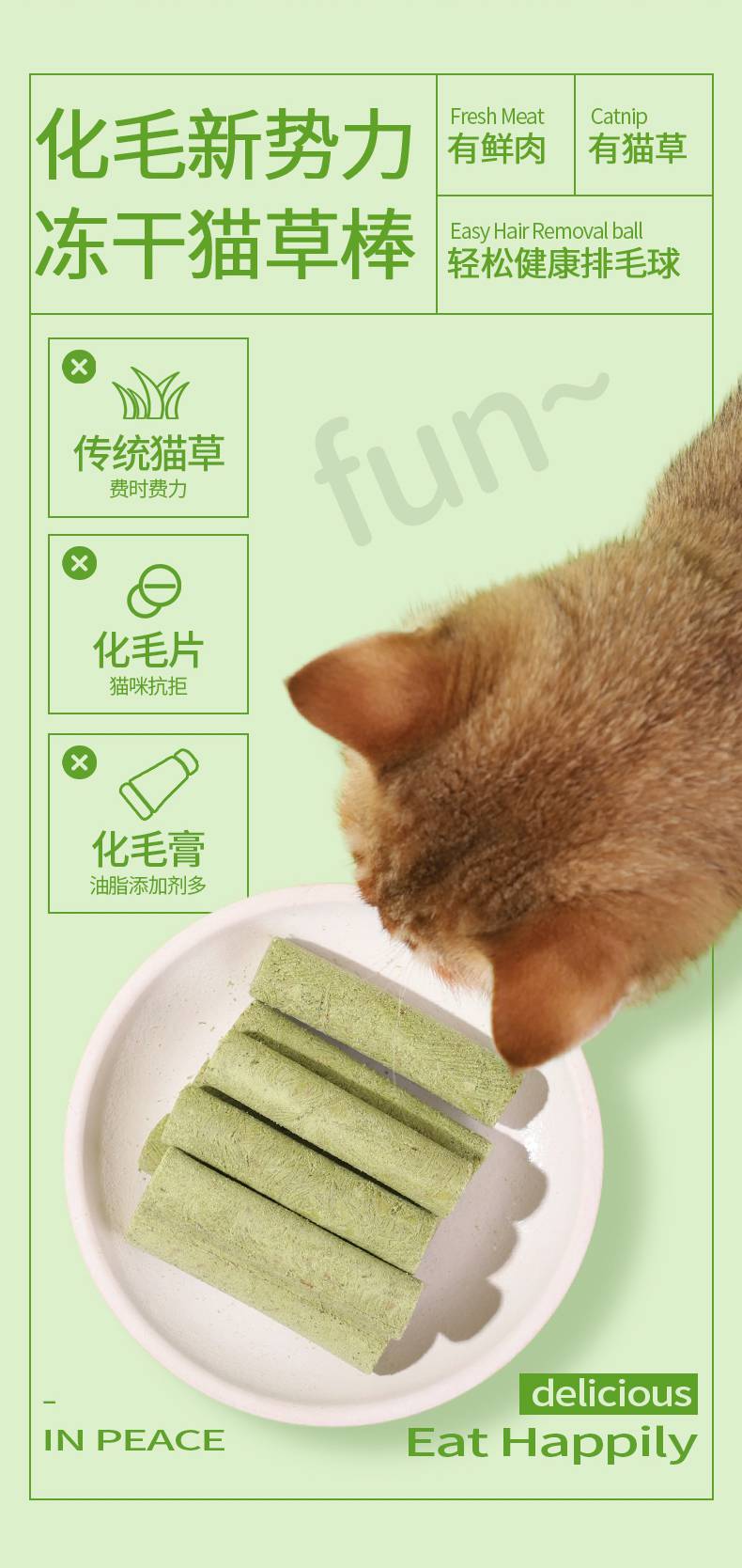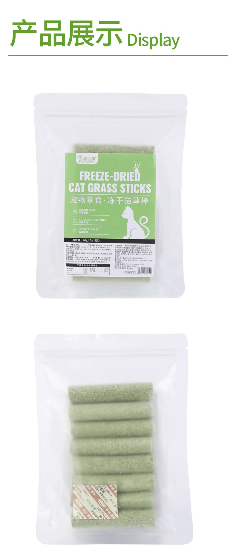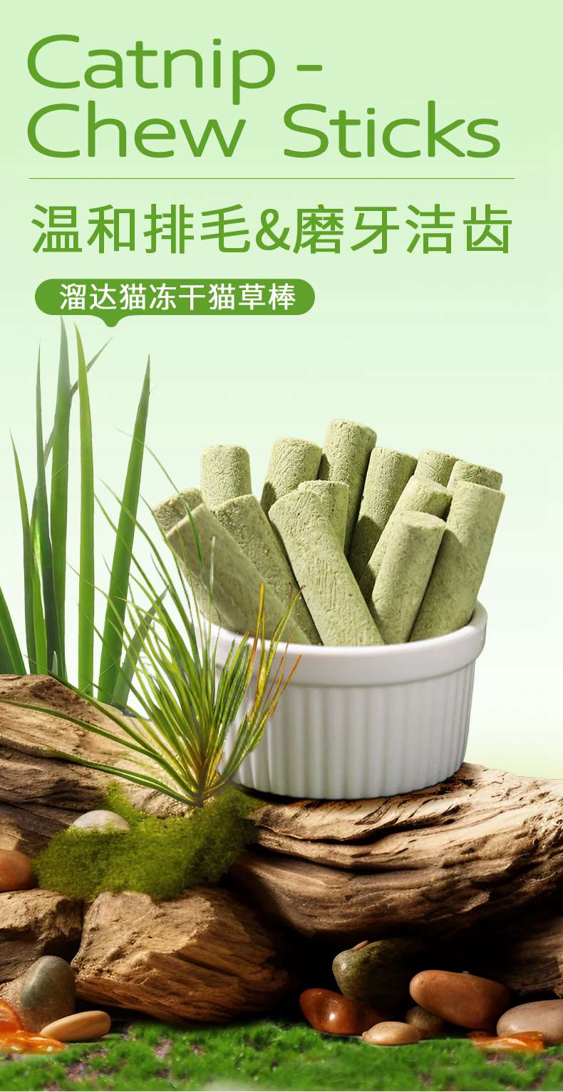 溜达猫 猫咪冻干猫草棒8支袋装 猫草+鸡肉 轻松化毛 0添加 猫咪零食批发