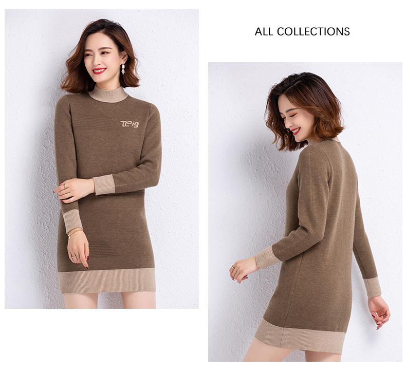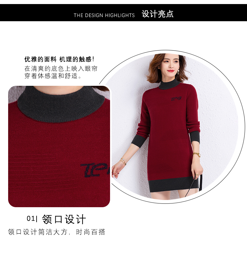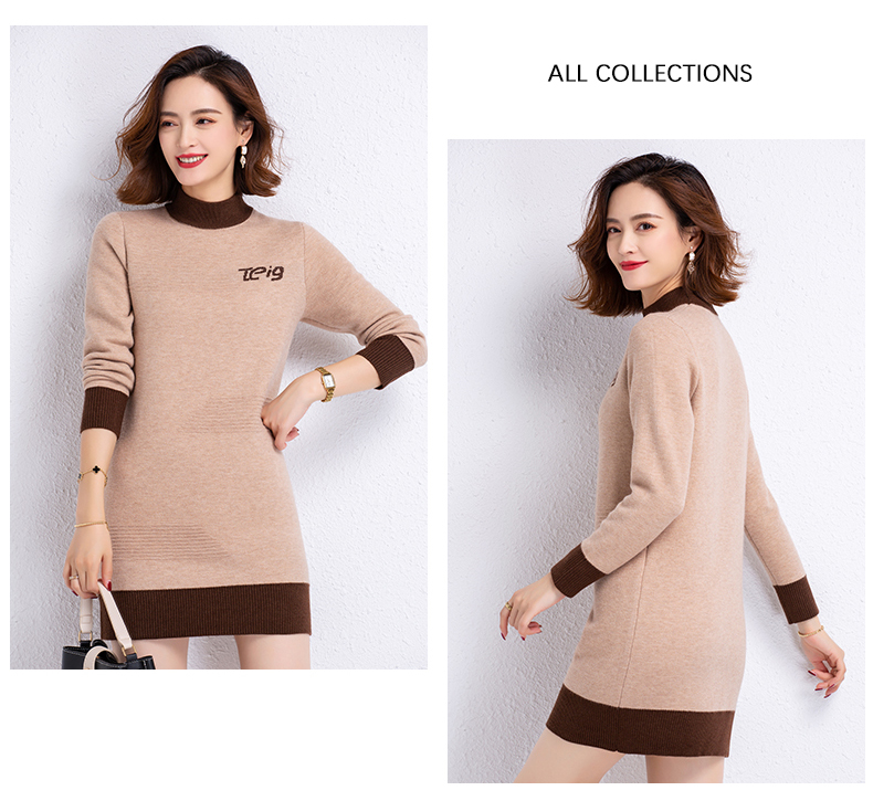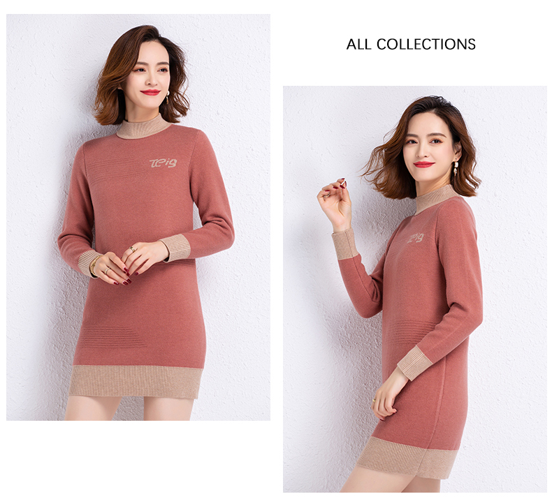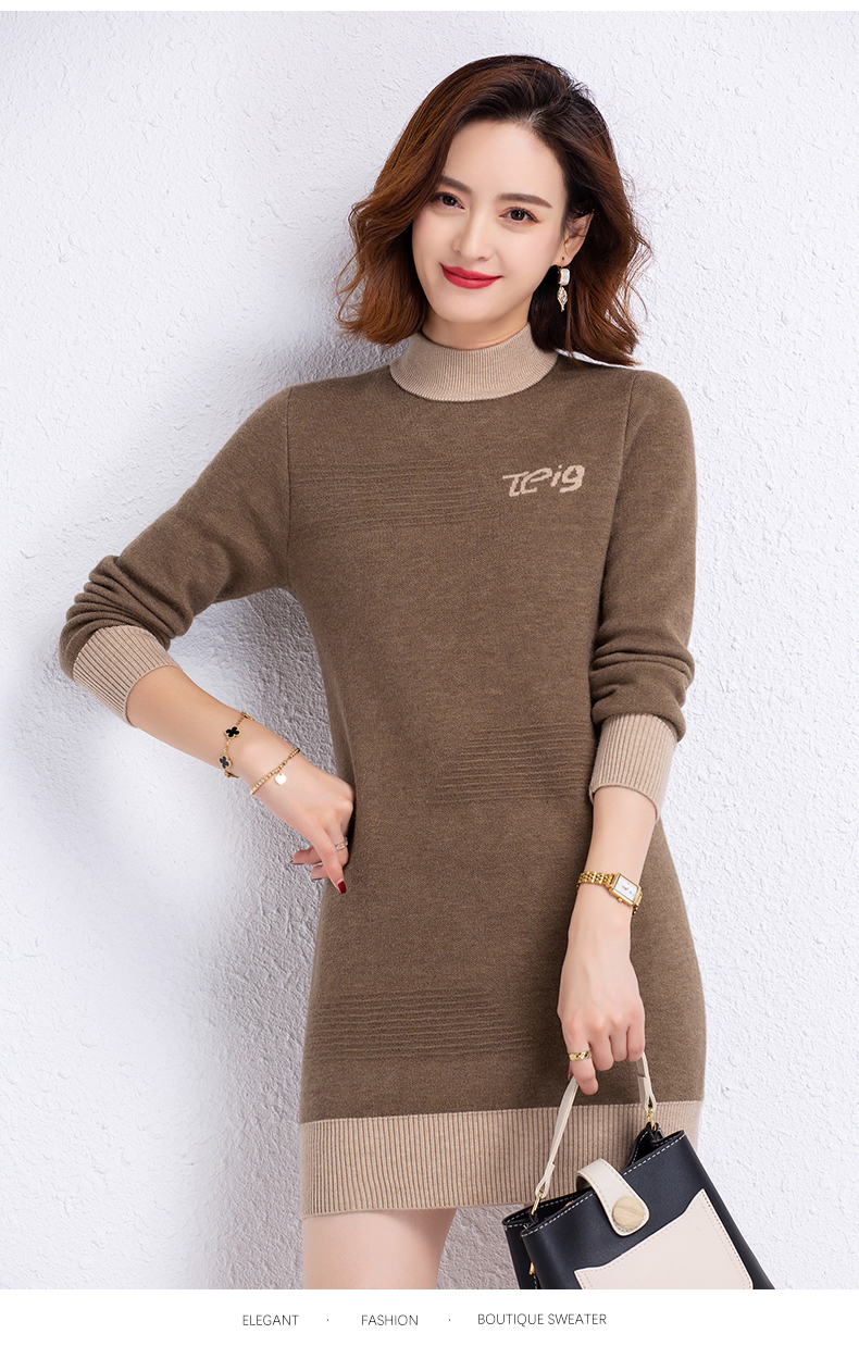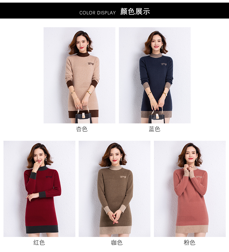 半高领毛衣裙,冬季加绒加厚中长款女装秋冬新款洋气打底衫CC-101-29992