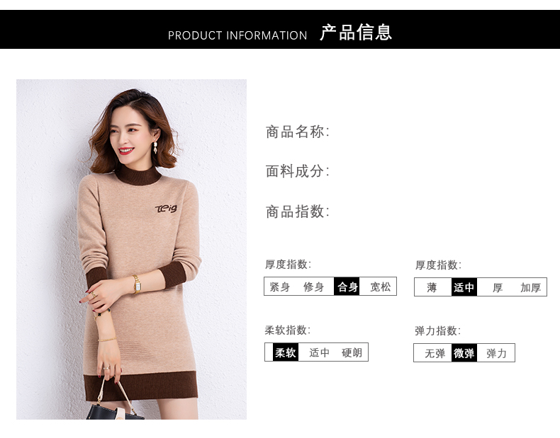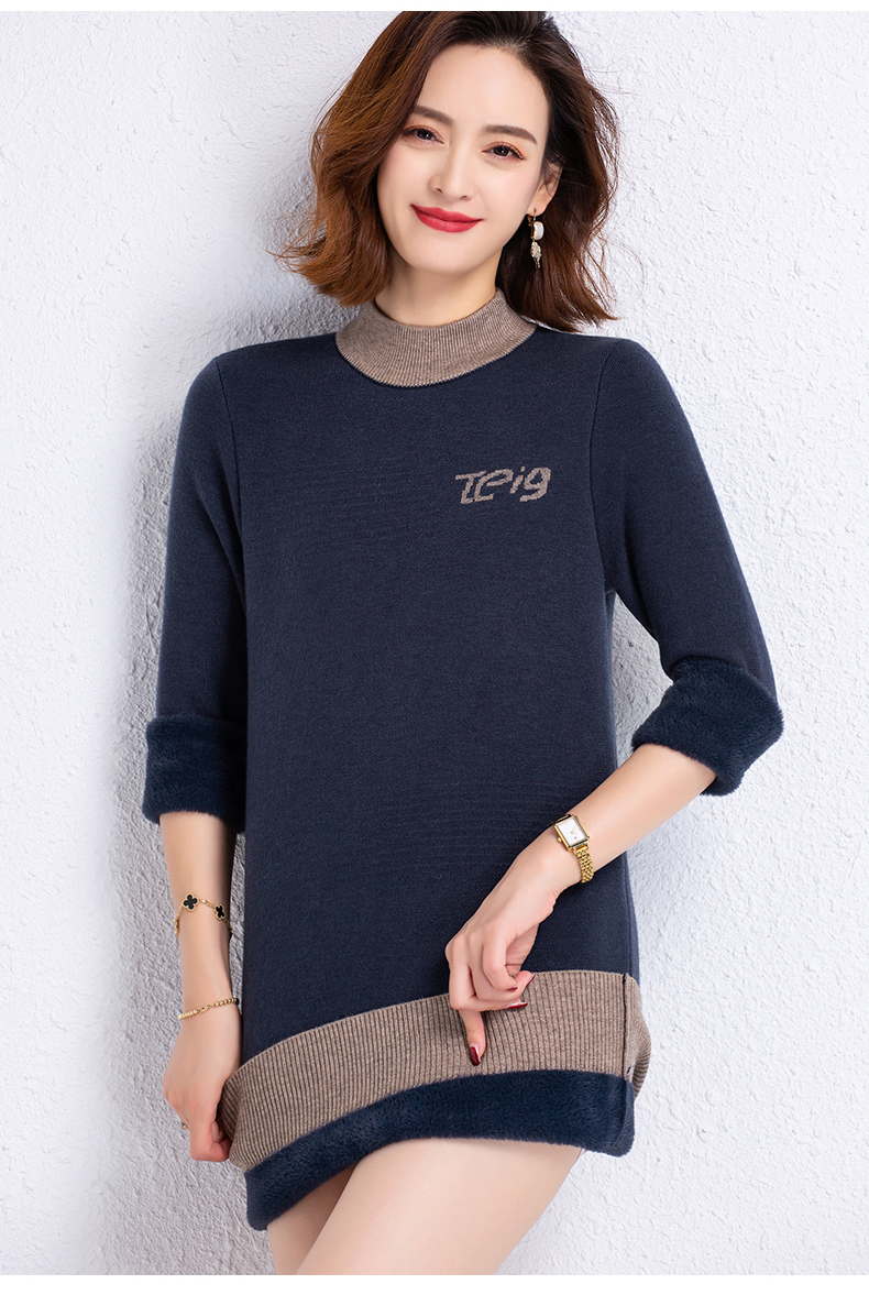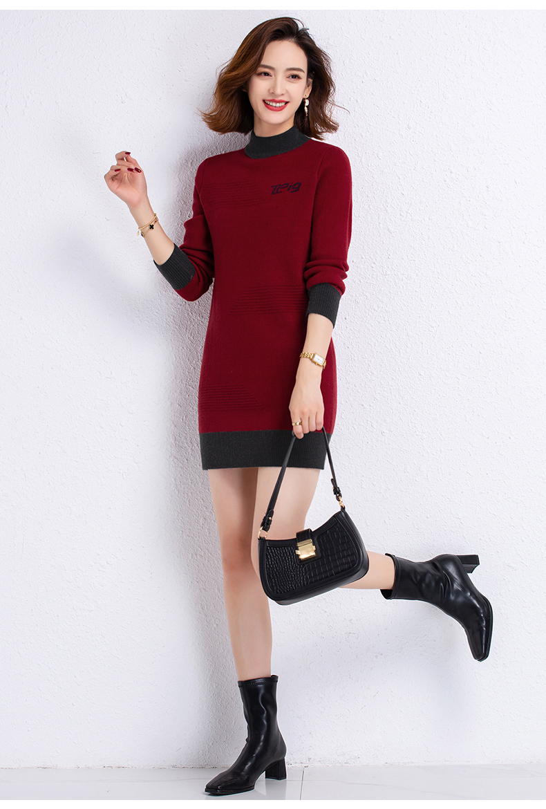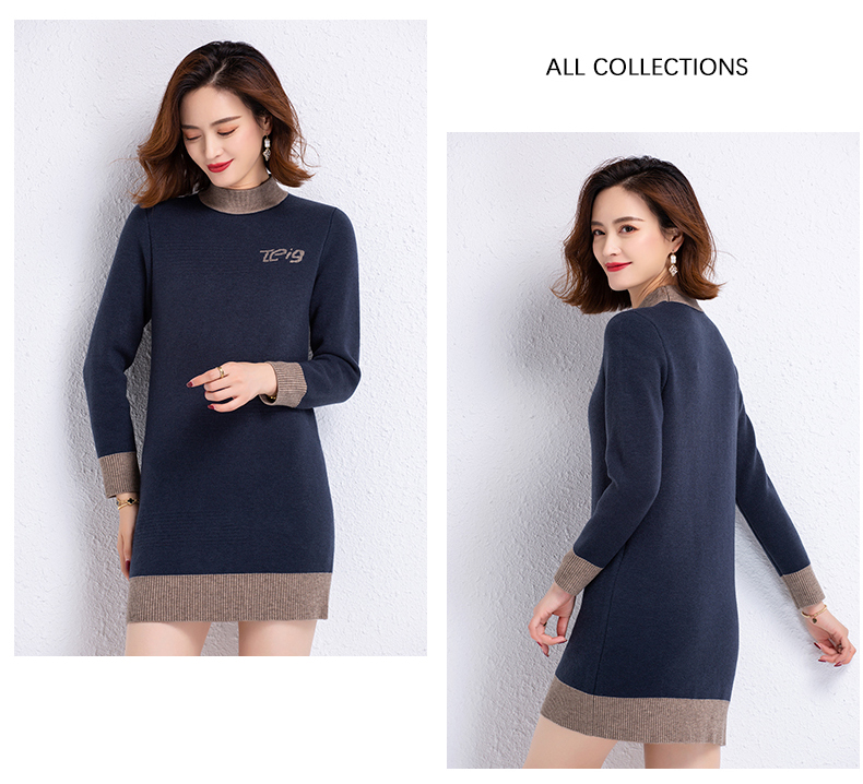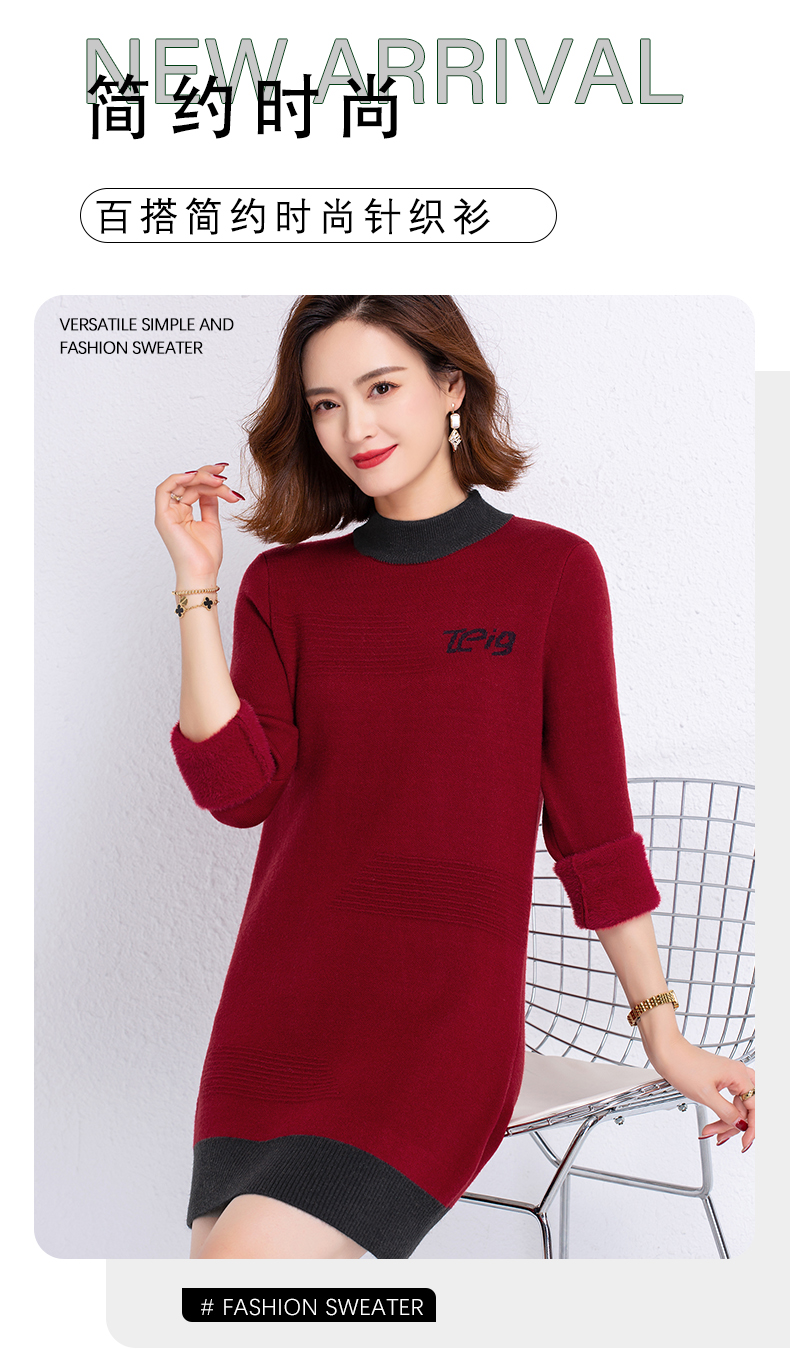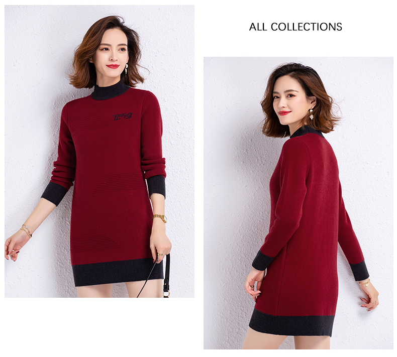 半高领毛衣裙,冬季加绒加厚中长款女装秋冬新款洋气打底衫CC-101-29992