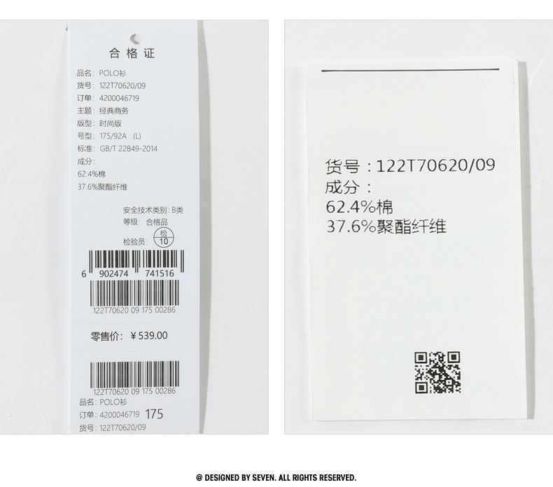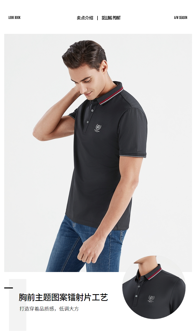 柒牌男士polo衫夏季薄款商务休闲中青年老虎翻领短袖体恤上衣 122T70620