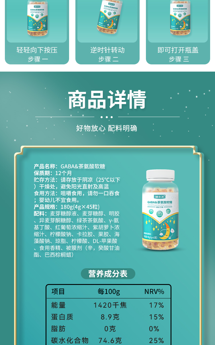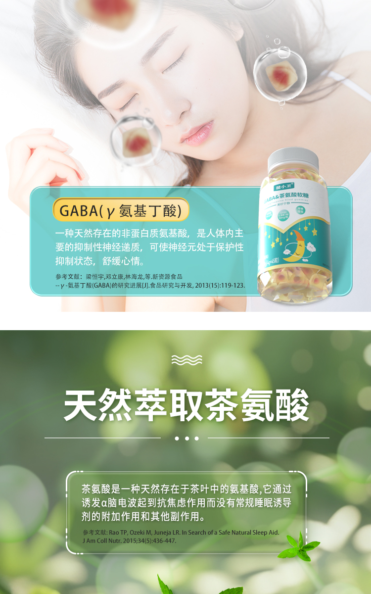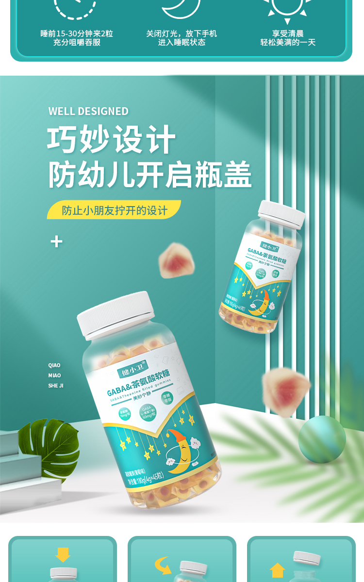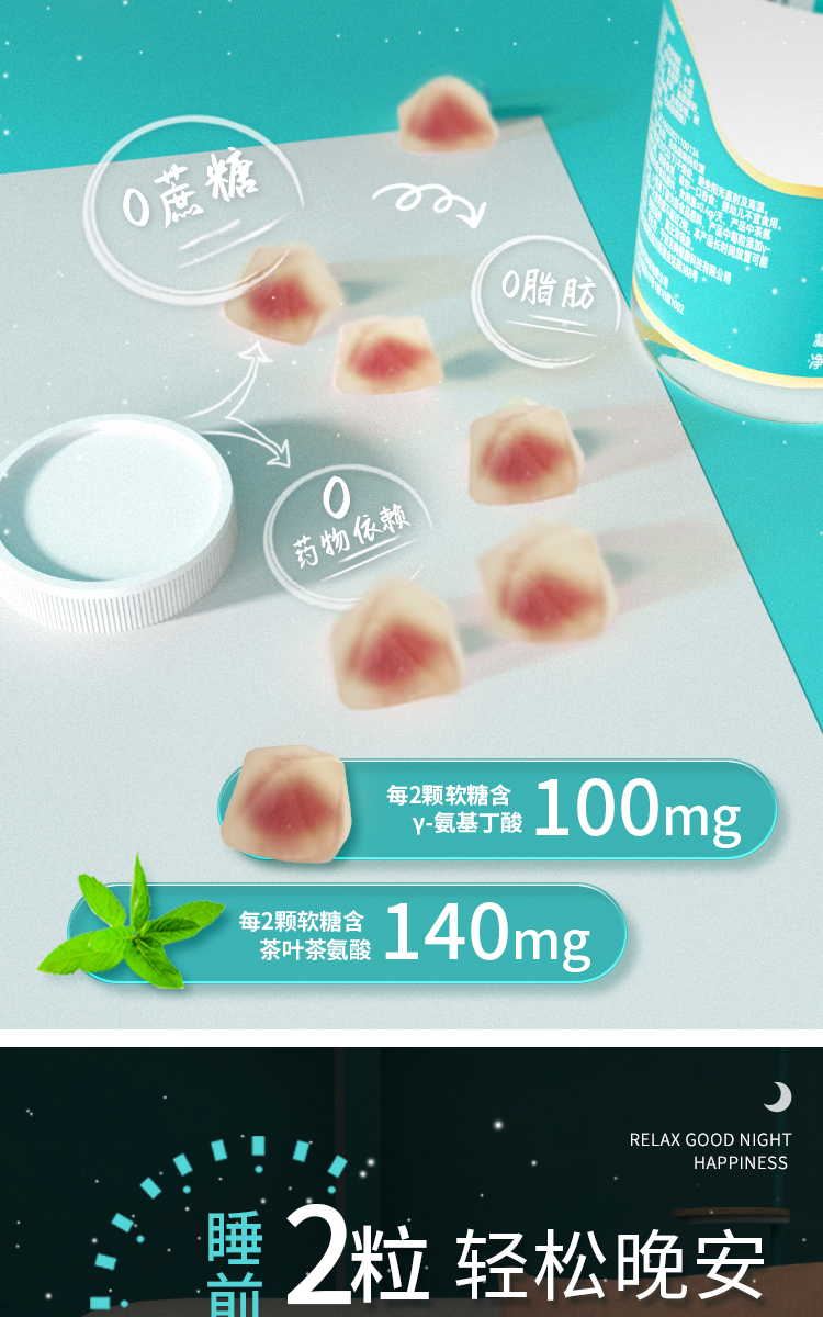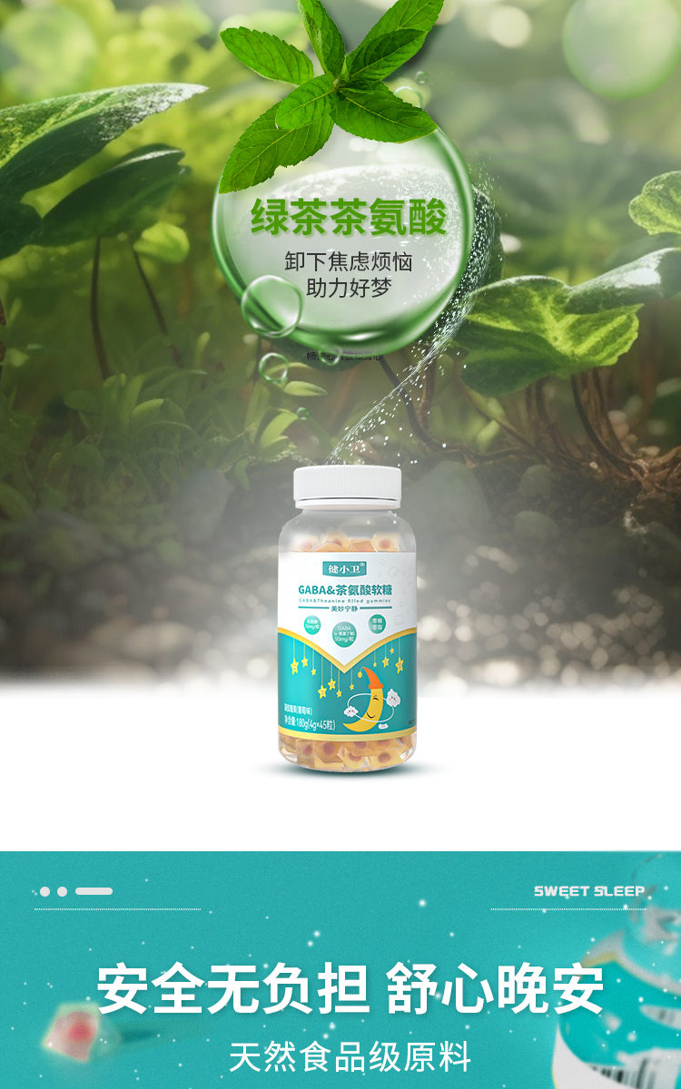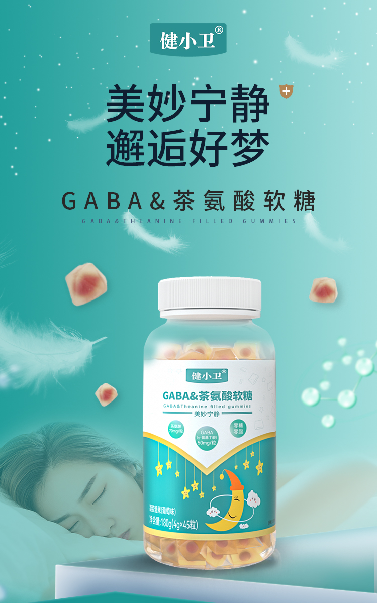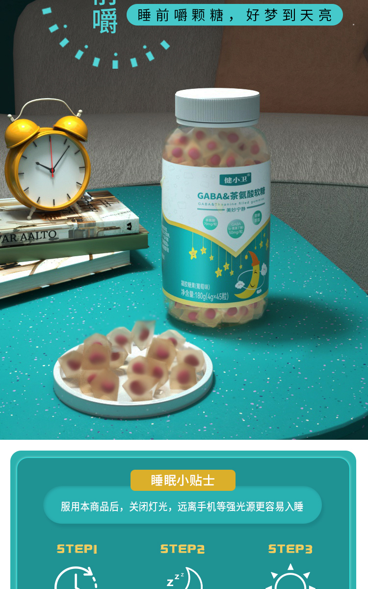 健小卫GABA&茶氨酸软糖 不含褪黑素 0药物依赖 轻松说晚安180g(4g×45粒)
