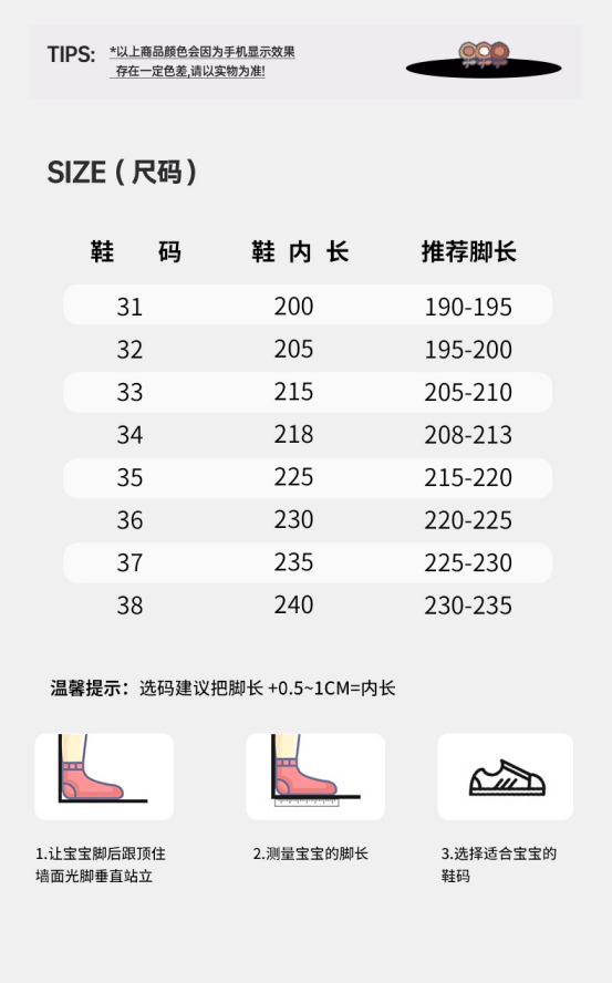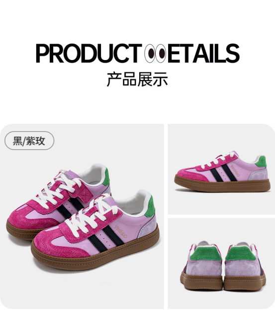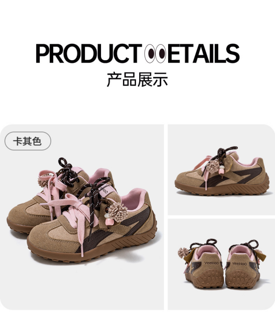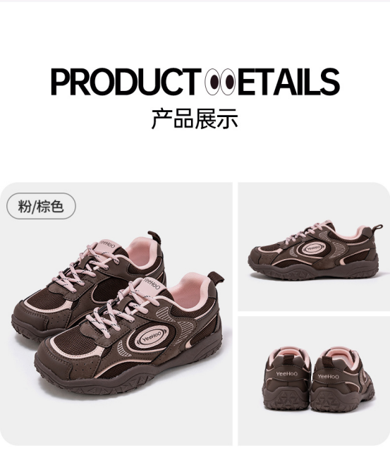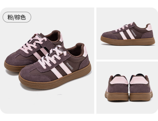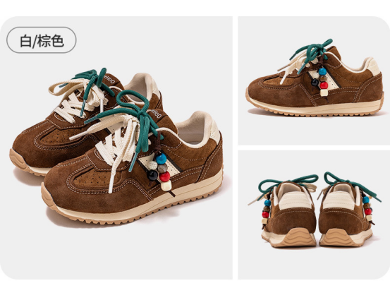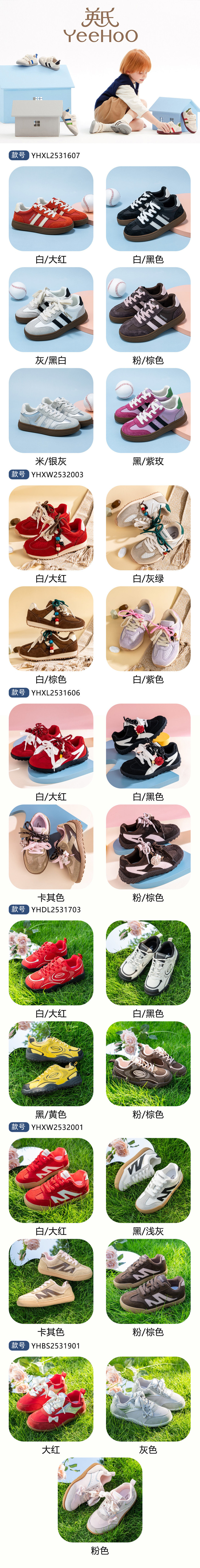 货号:YHXL2531606 颜色:粉/棕色、卡其色、白/大红、白/黑色 尺码:31-38 材质:鞋面 合成革;鞋底 橡胶