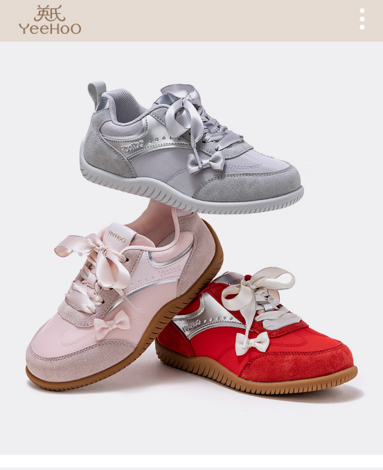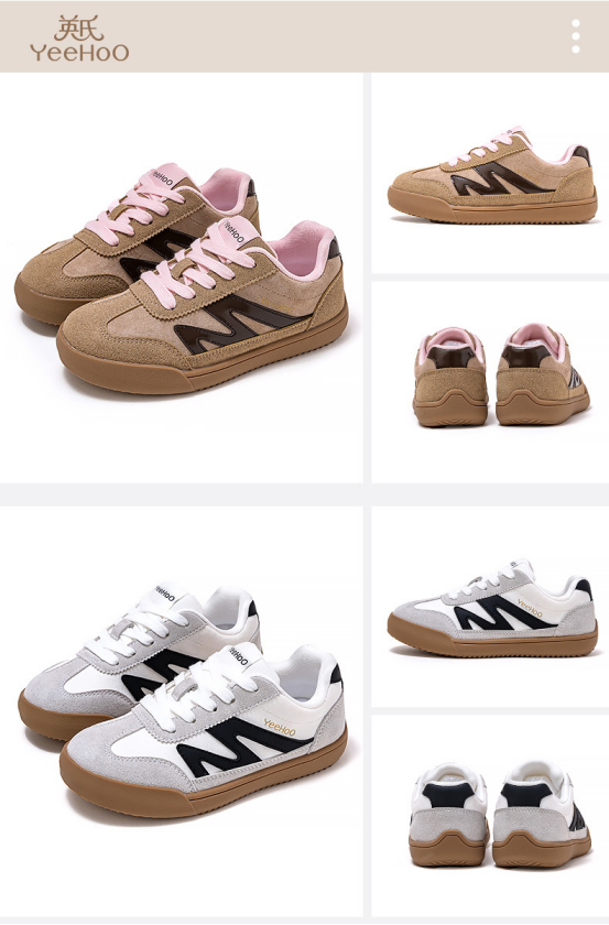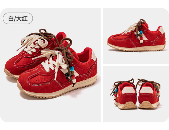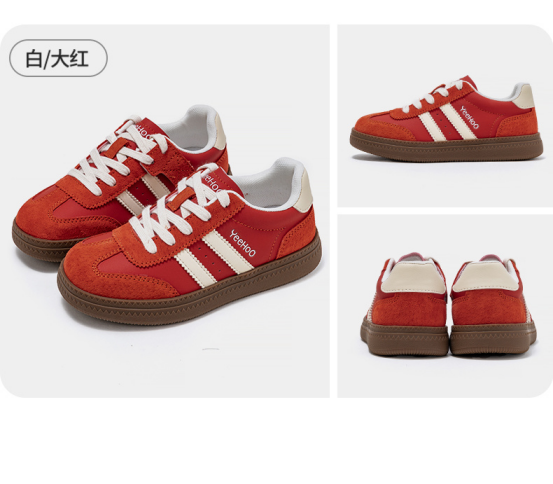 货号:YHXW2532001 颜色:白大红、卡其色、黑浅灰、粉棕色 尺码:32-39 材质:鞋面 合成革;鞋底 橡胶