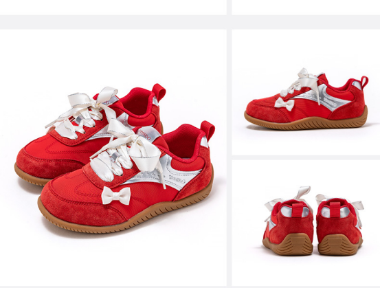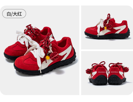 货号:YHBS2531901 颜色:大红、灰色、粉色 尺码:31-38 材质:鞋面 织物+合成革;鞋底 橡胶