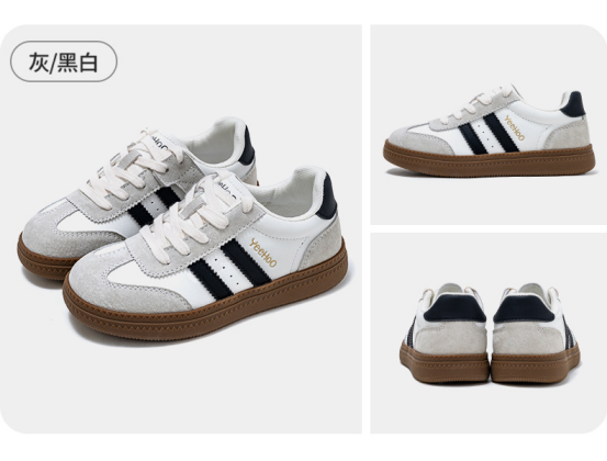 货号:YHXL2531607 颜色:白/黑色、白/大红、灰/黑白、粉/棕色、米/银灰、黑/紫玫 尺码:31-39 材质:鞋面 合成革;鞋底 橡胶