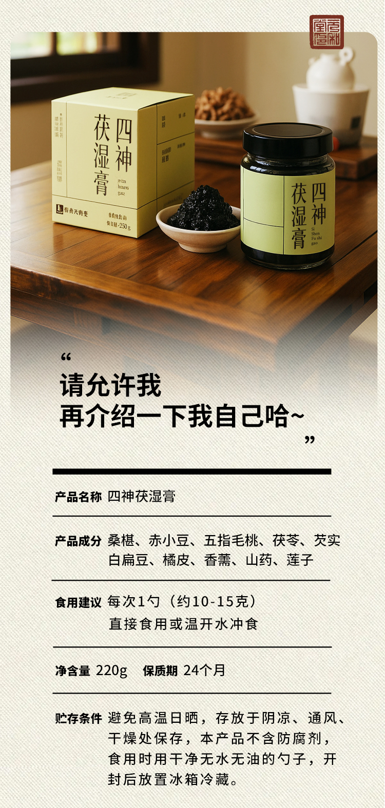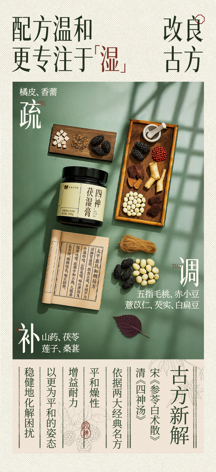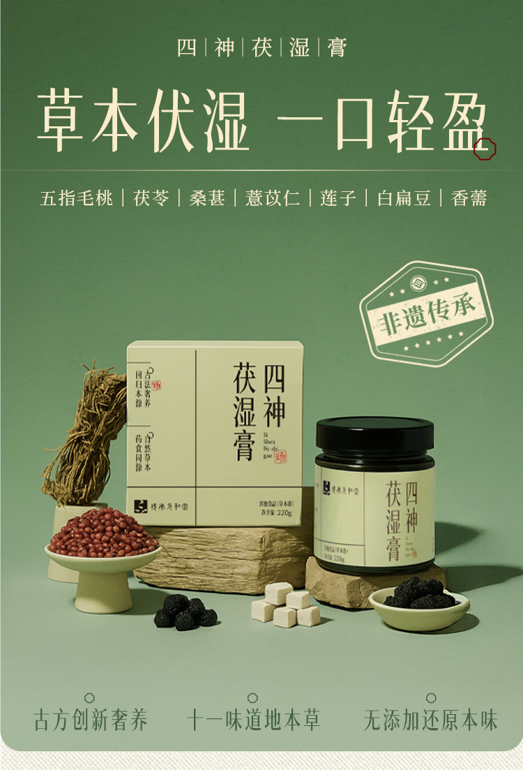 【四神茯湿膏】元和堂 | 改良古方 11味草本伏湿 配方温和 220克/1盒 元和好物 迷罗亲研