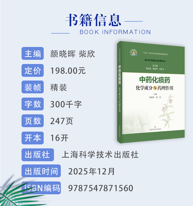 中药化痰药化学成分与药理作用 组分中药研究系列丛书 颜晓晖 柴欣 主编 本分册收录的19种常用化痰药 中药学 上海科学技术出版社