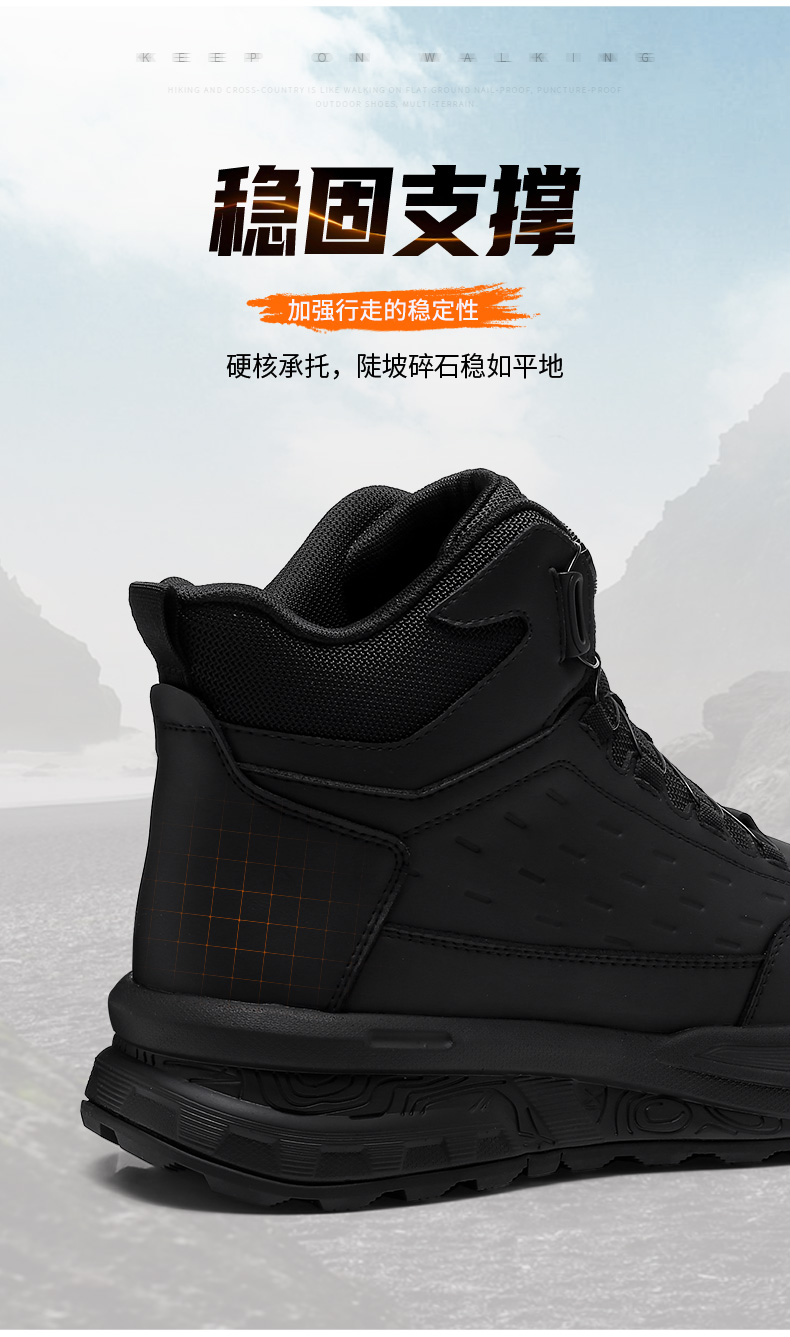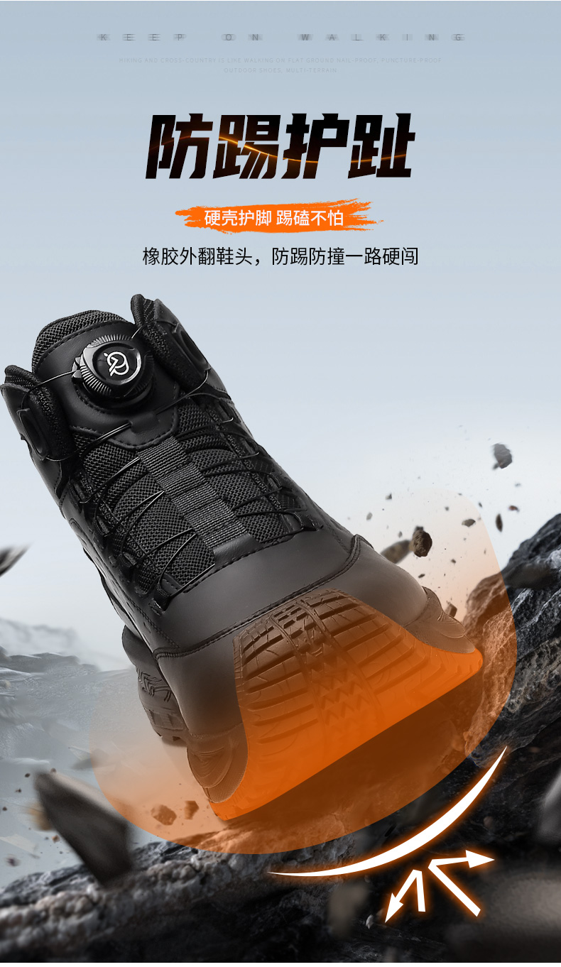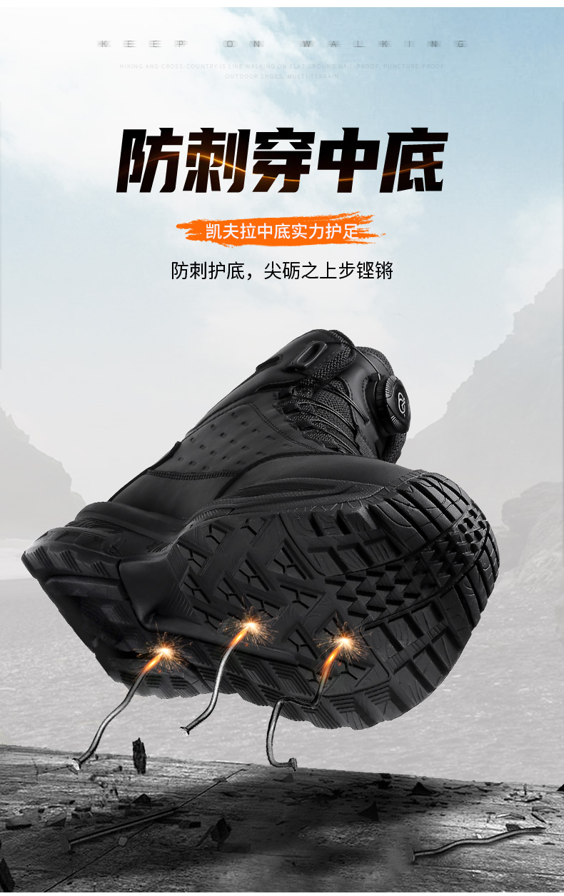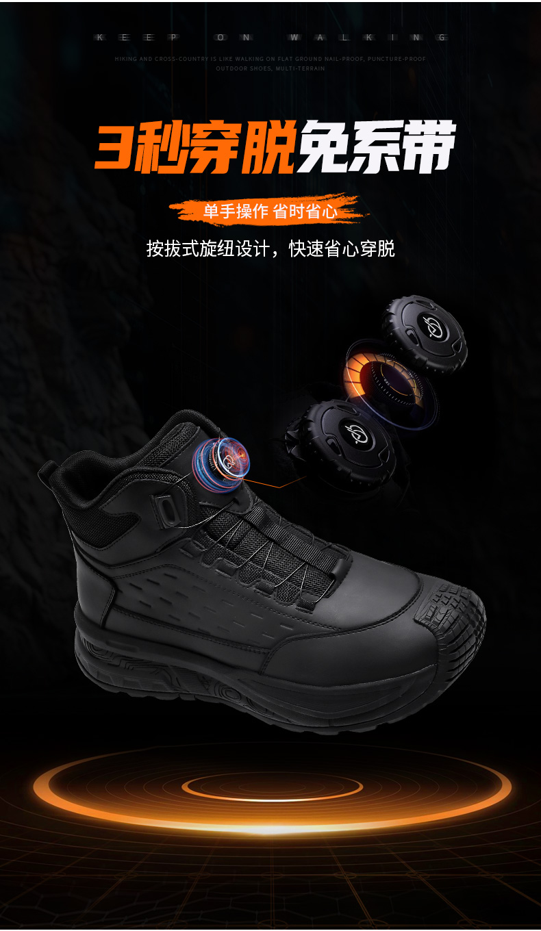 强人3515男靴凯夫拉防穿刺户外训练靴厚底百搭黑色登山短靴
