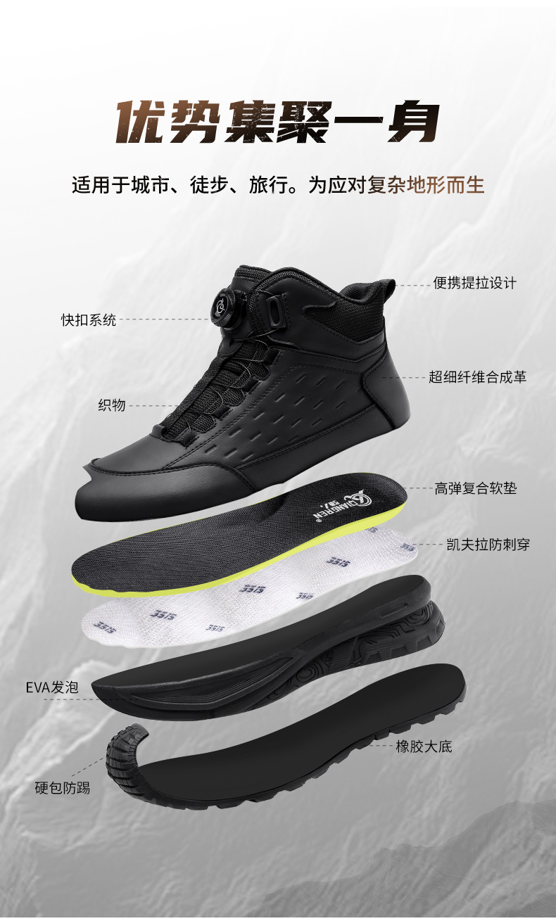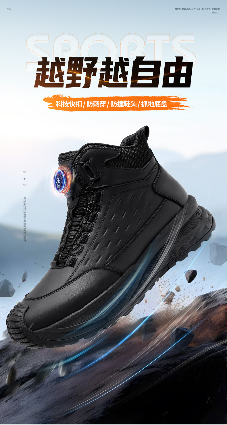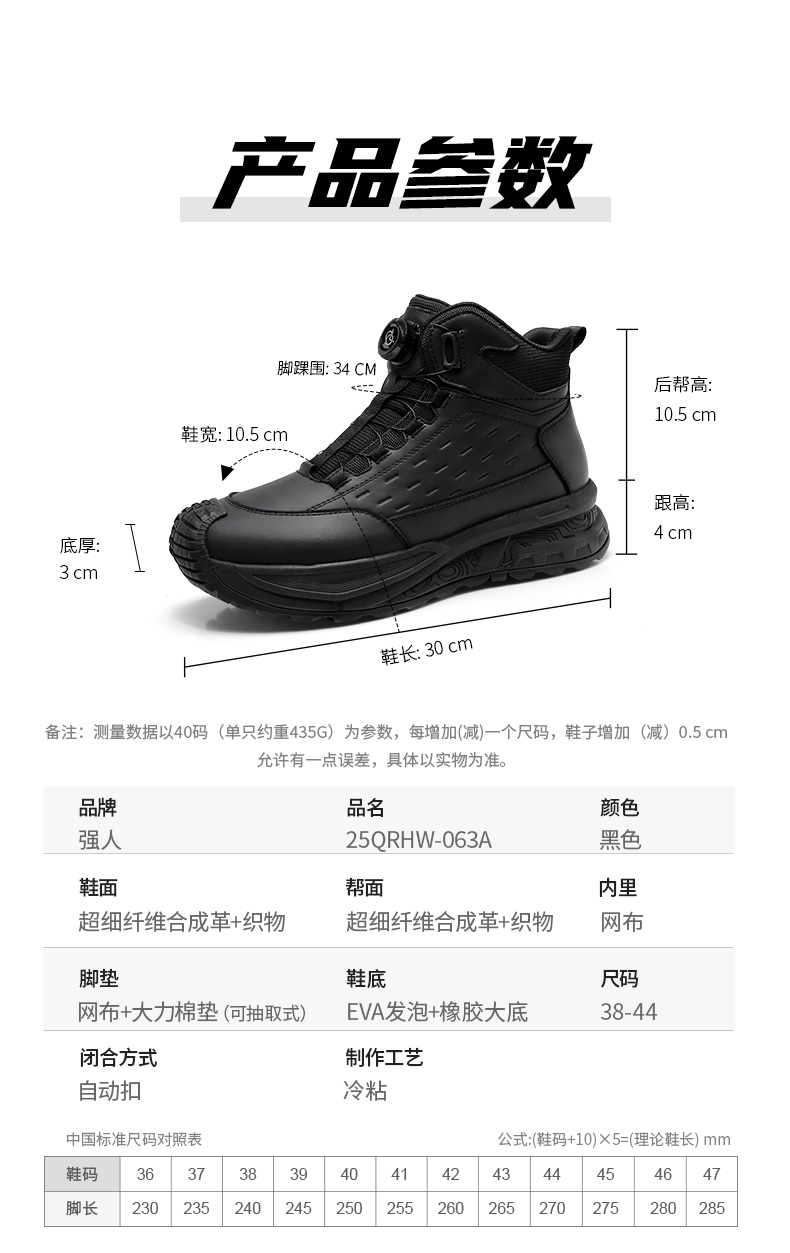 强人3515男靴凯夫拉防穿刺户外训练靴厚底百搭黑色登山短靴