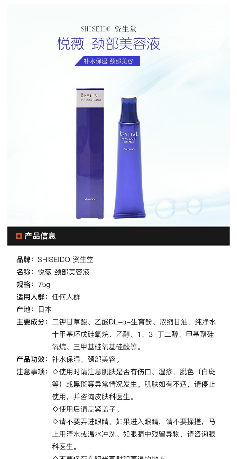 【YZ】资生堂REVITAL悦薇颈部精华乳液颈霜淡化颈纹提拉紧致护理75g日本