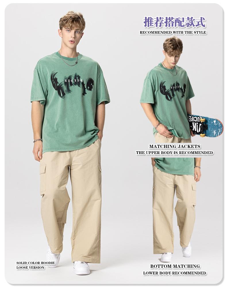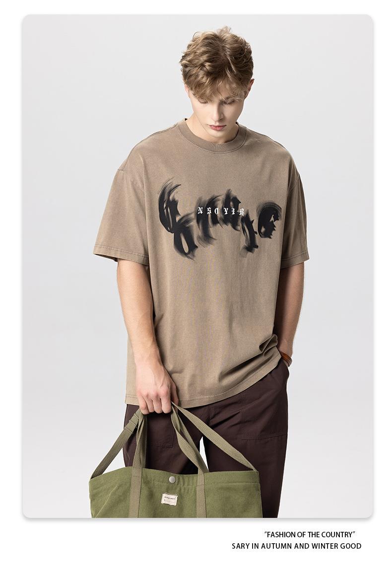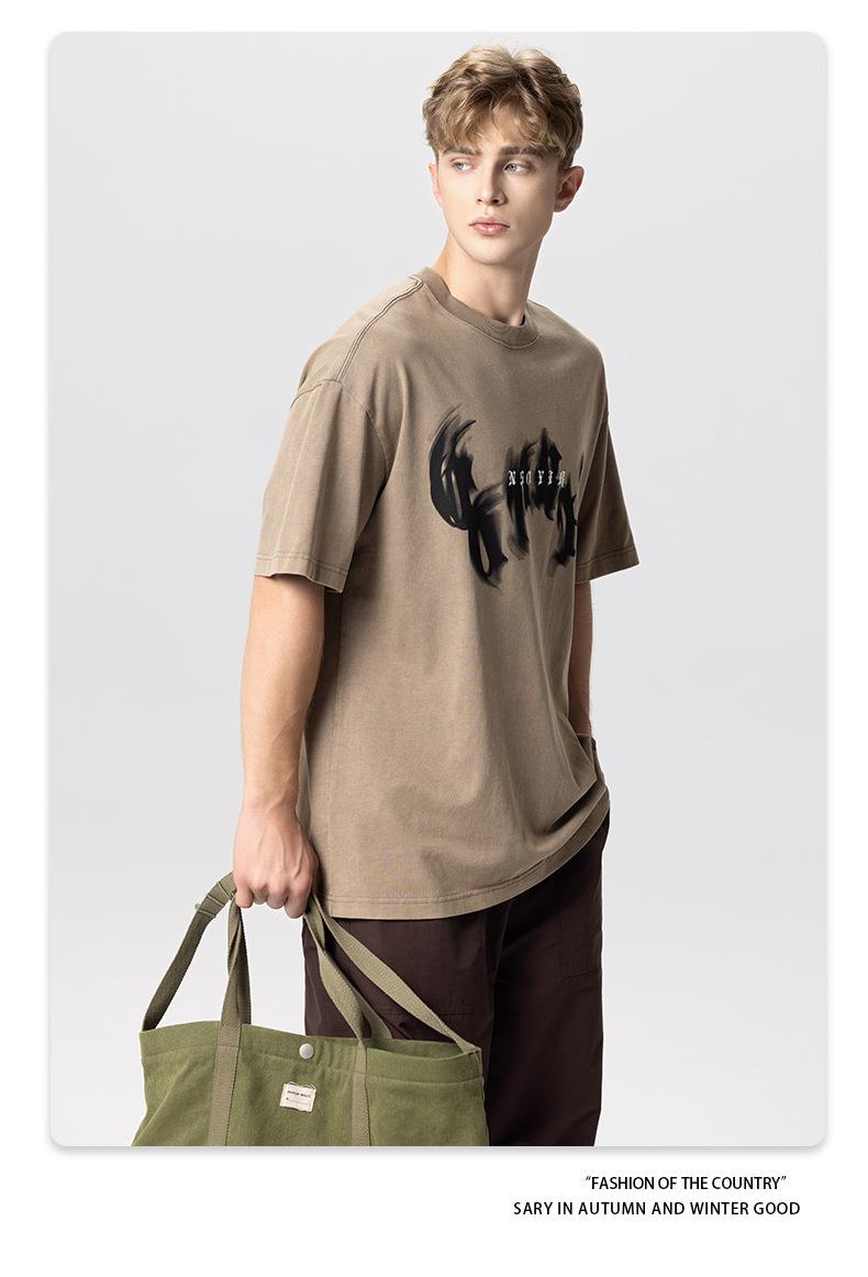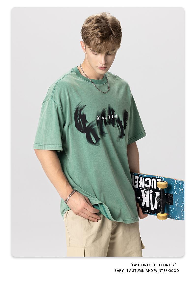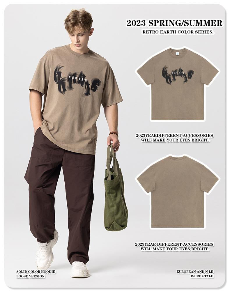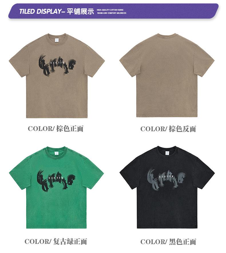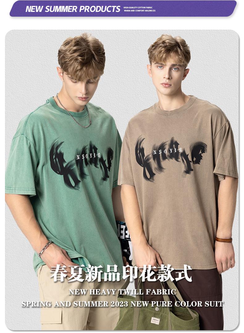 RS男装|2023夏季重磅复古水洗做旧oversize高街潮牌宽松短袖t恤男