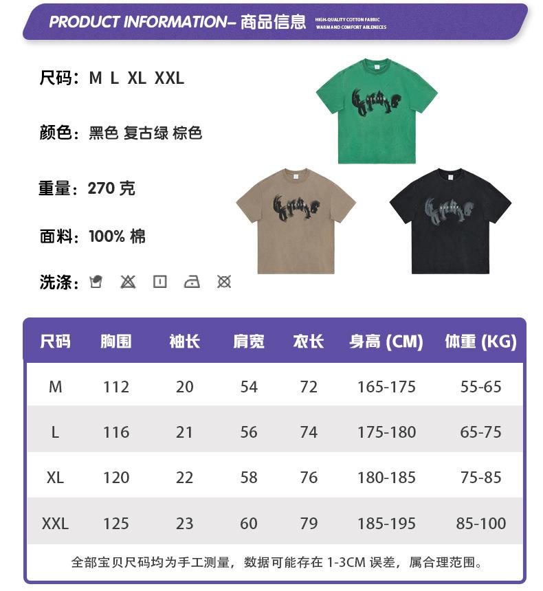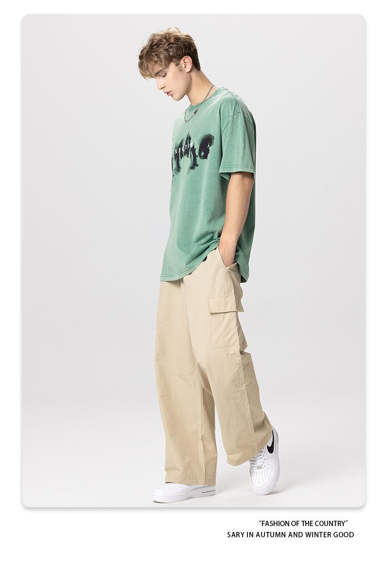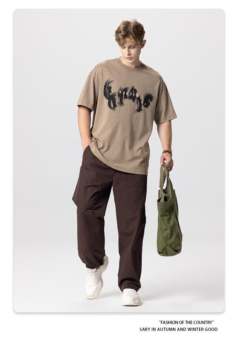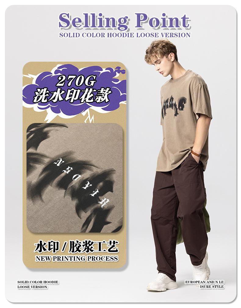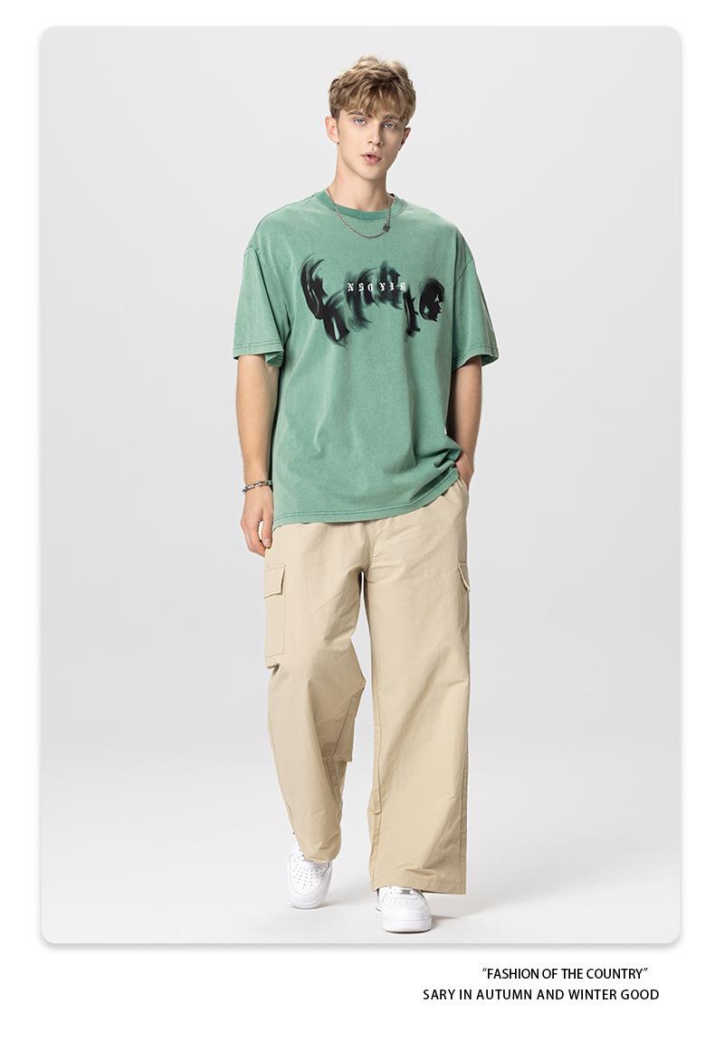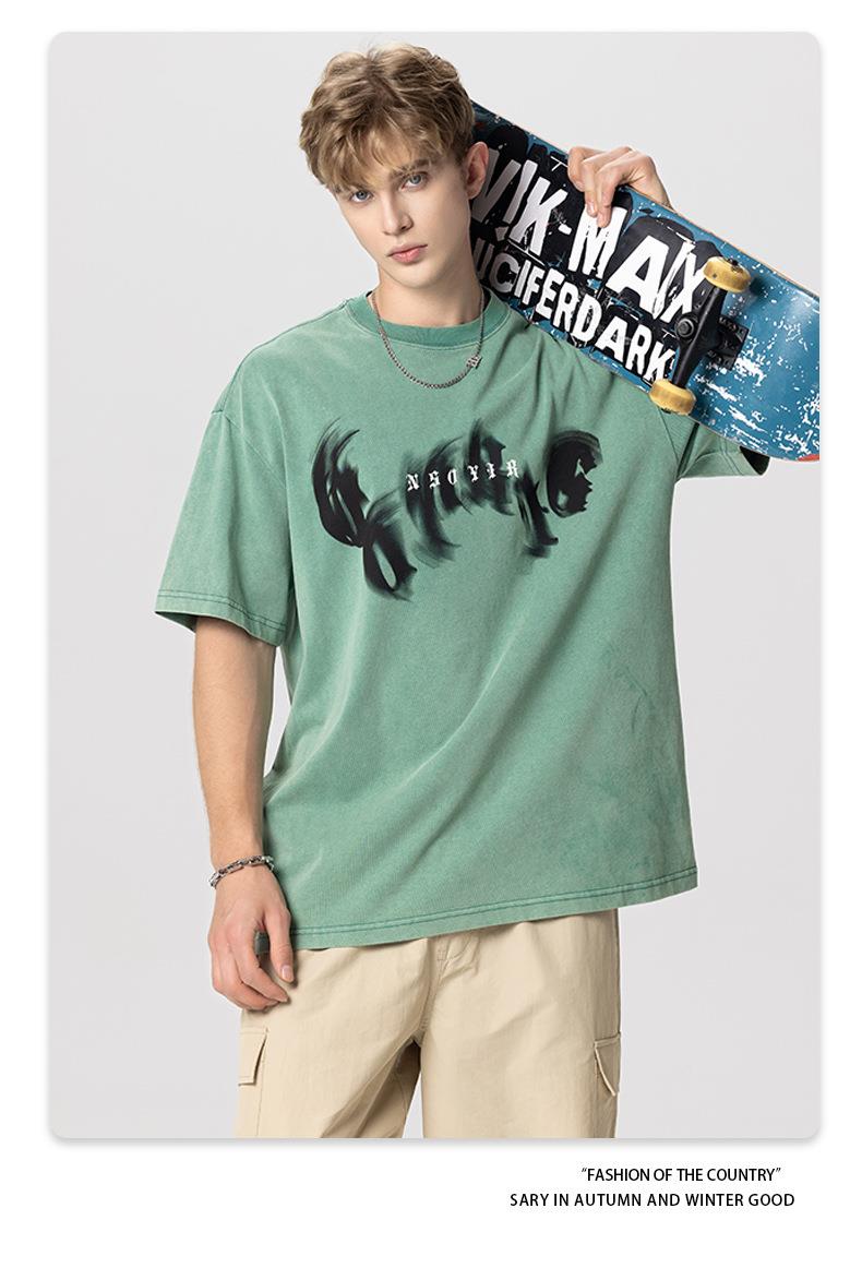 RS男装|2023夏季重磅复古水洗做旧oversize高街潮牌宽松短袖t恤男
