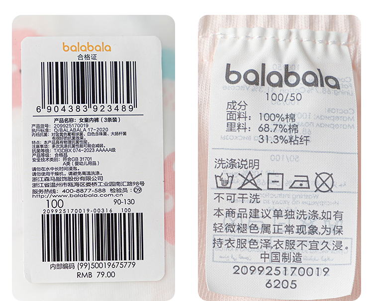 巴拉巴拉宝宝面包裤女童三角短裤婴儿内裤戒尿不湿a类亲肤三条装