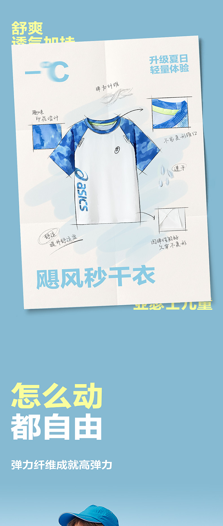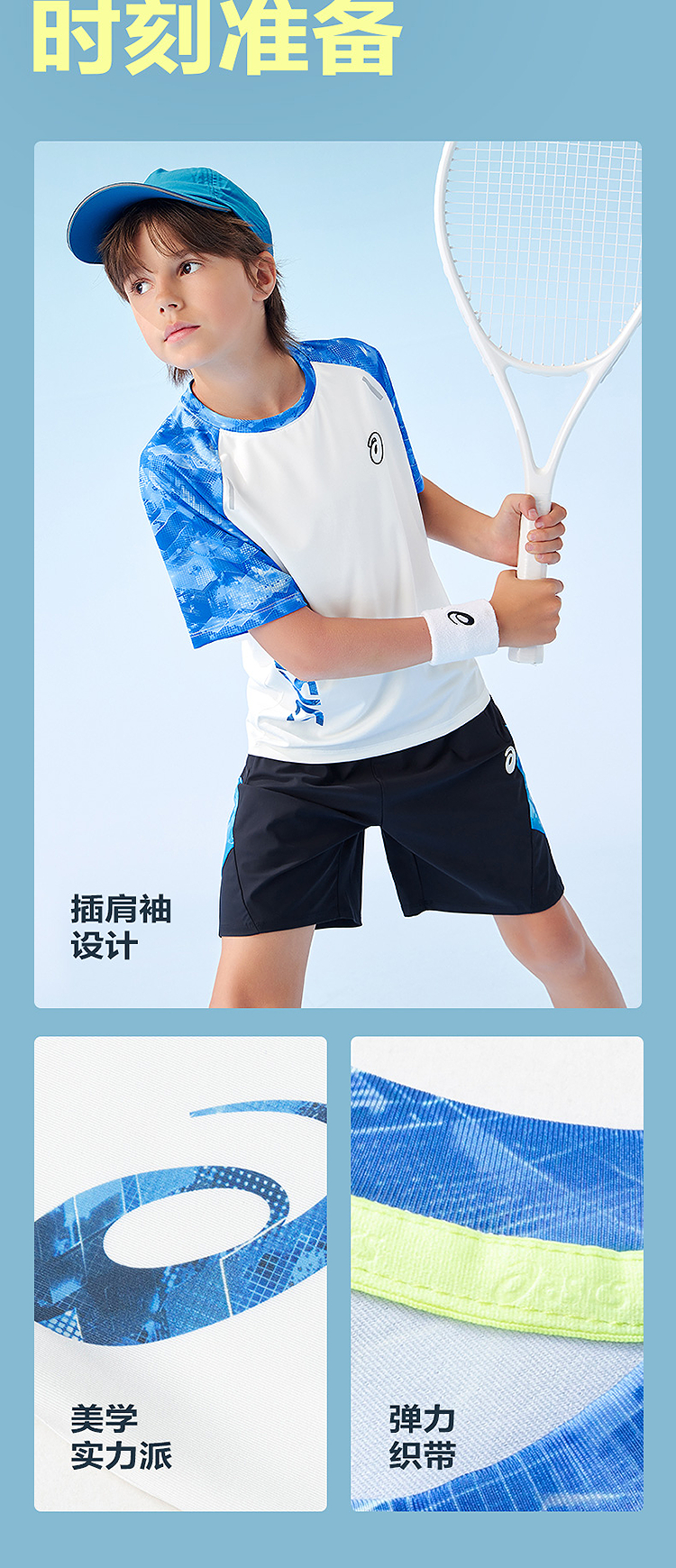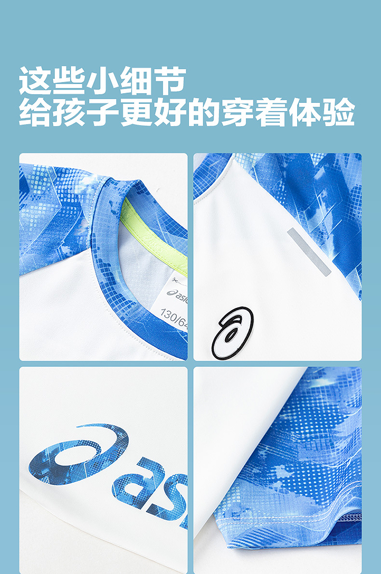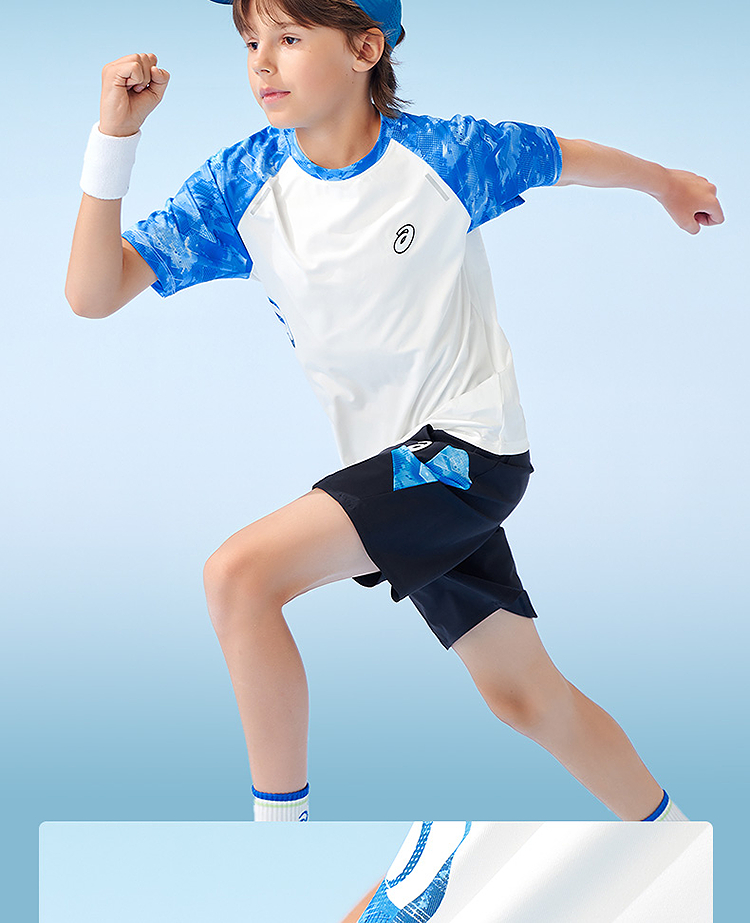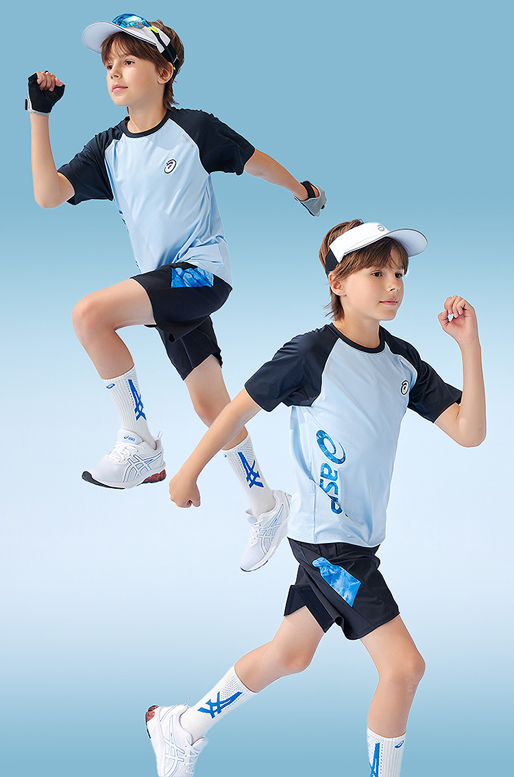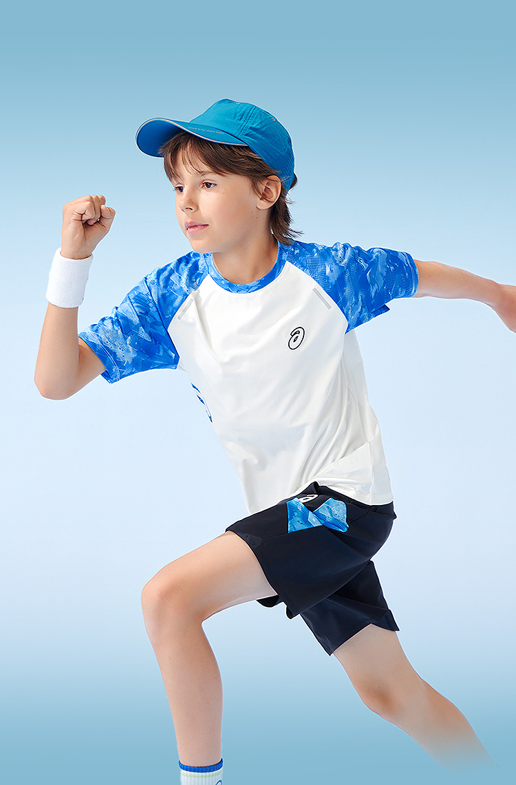 ASICS/亚瑟士儿童25年夏新款吸湿速干舒适弹力插肩袖运动短袖T恤