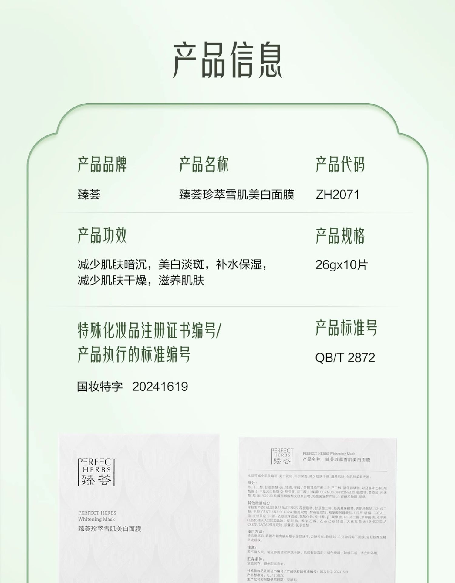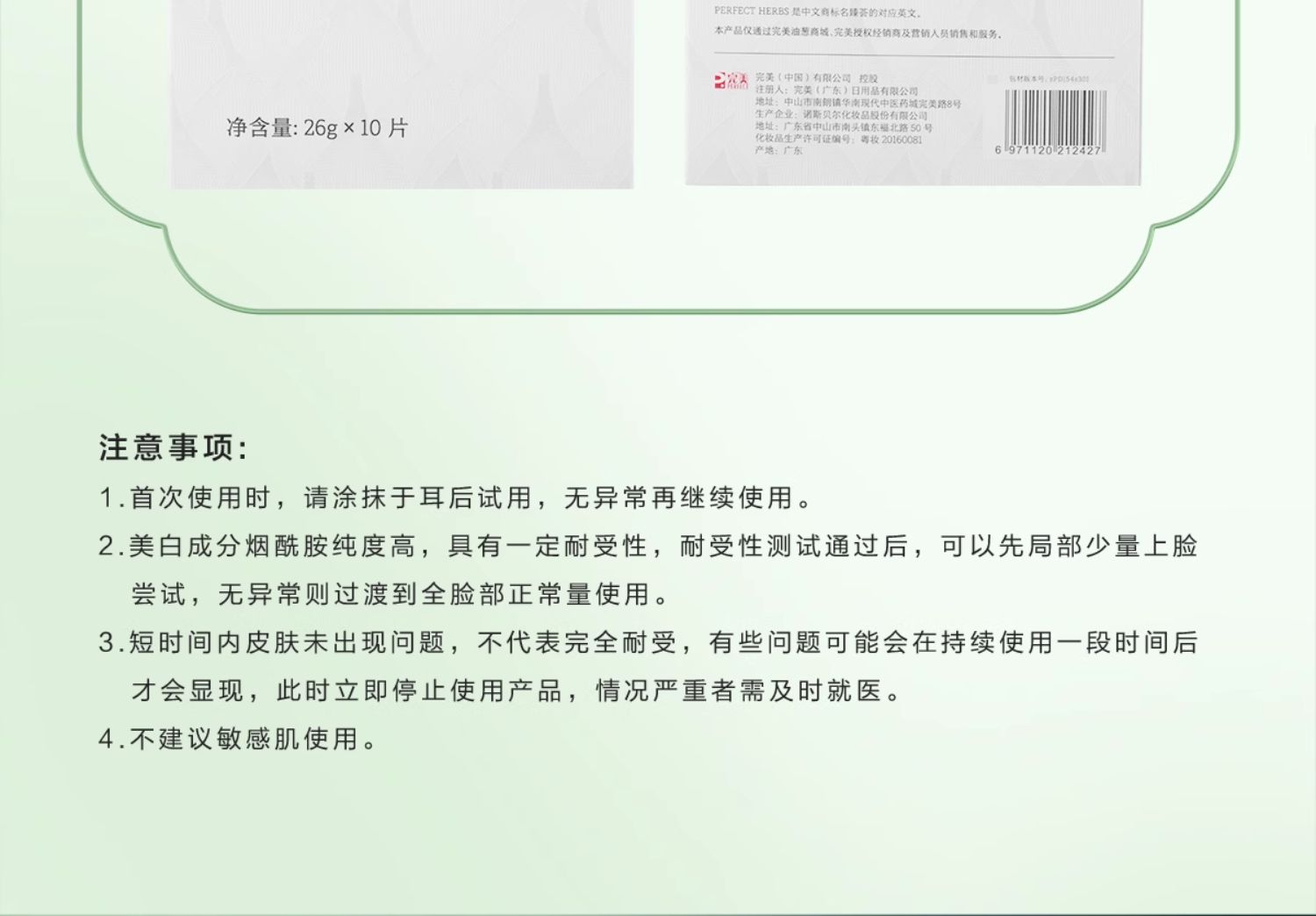 【预售 急单慎拍】完美臻荟珍萃雪肌美白面膜 26g*10片 原价299元