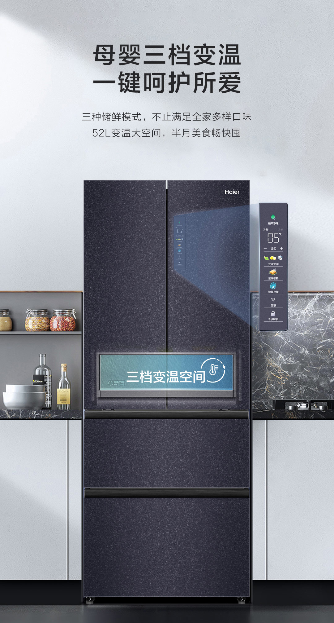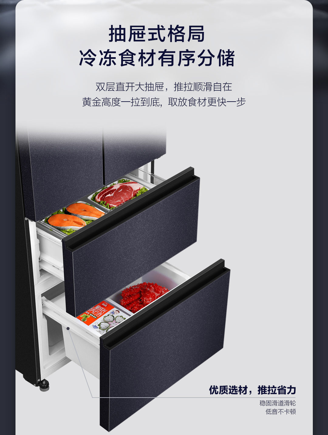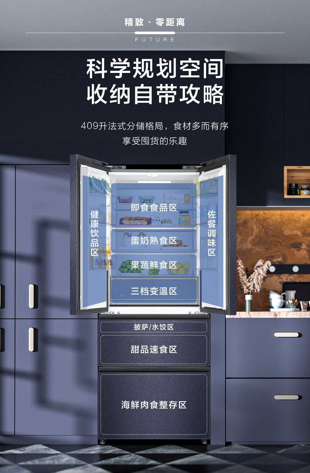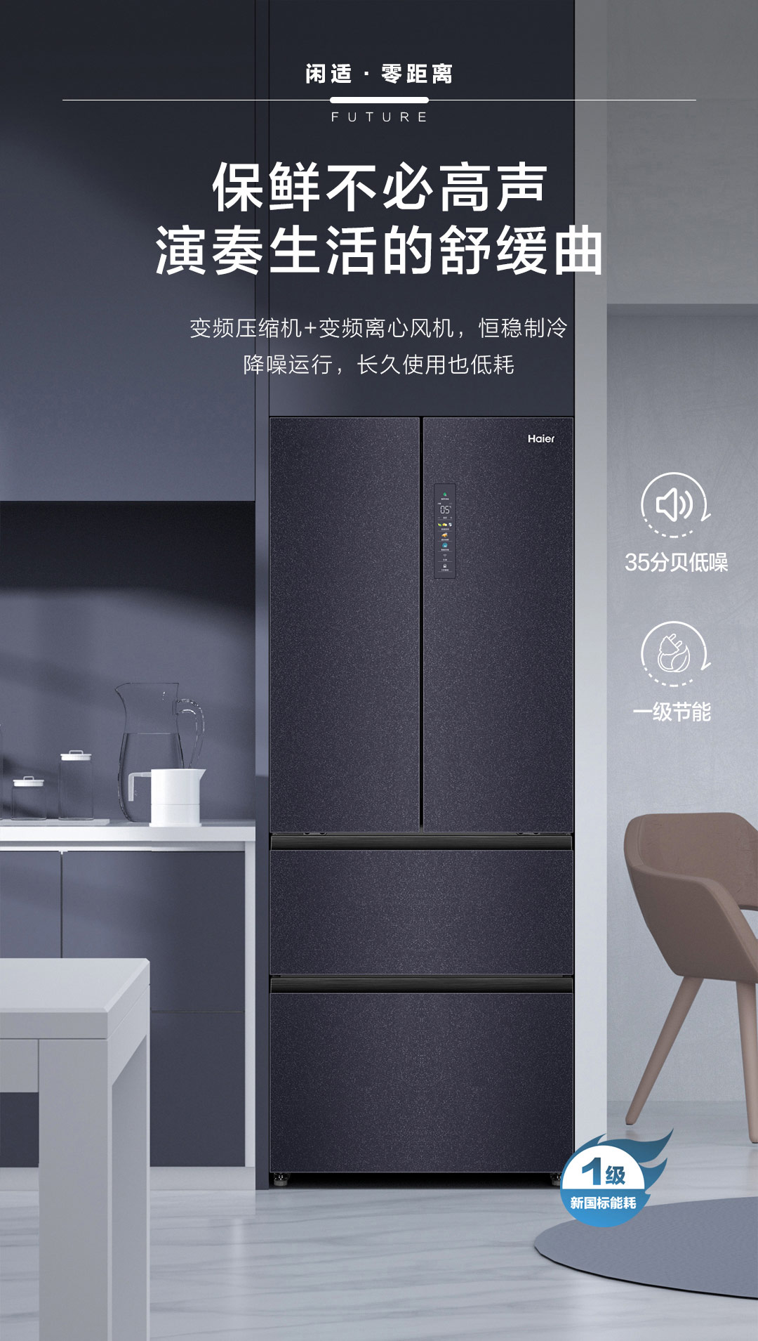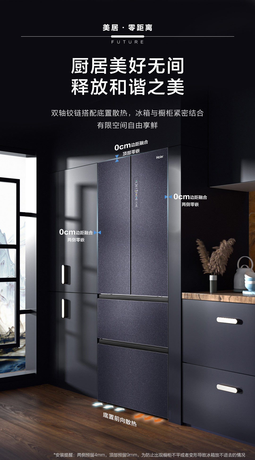 海尔409升一级能效变频超薄零距离嵌入式四开门多门冰箱风冷无霜净味