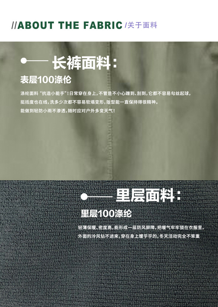 在面料的处理上,真的煞费苦心 因为我们的衣服都是给宝宝们穿着的 所以不仅功能性要好 舒适感也要做到最佳 裤子的里面,贴肤柔软,吸湿排汗,又很透气 大大的提升了穿着体验感 这样良心的厂家,这样好的裤子,真的要多备两条才安心