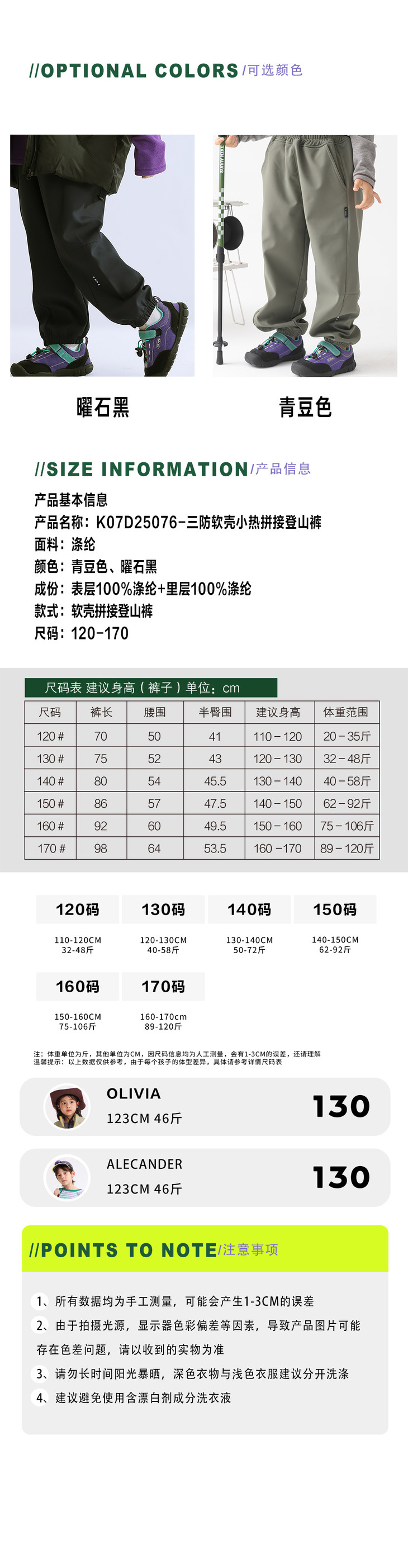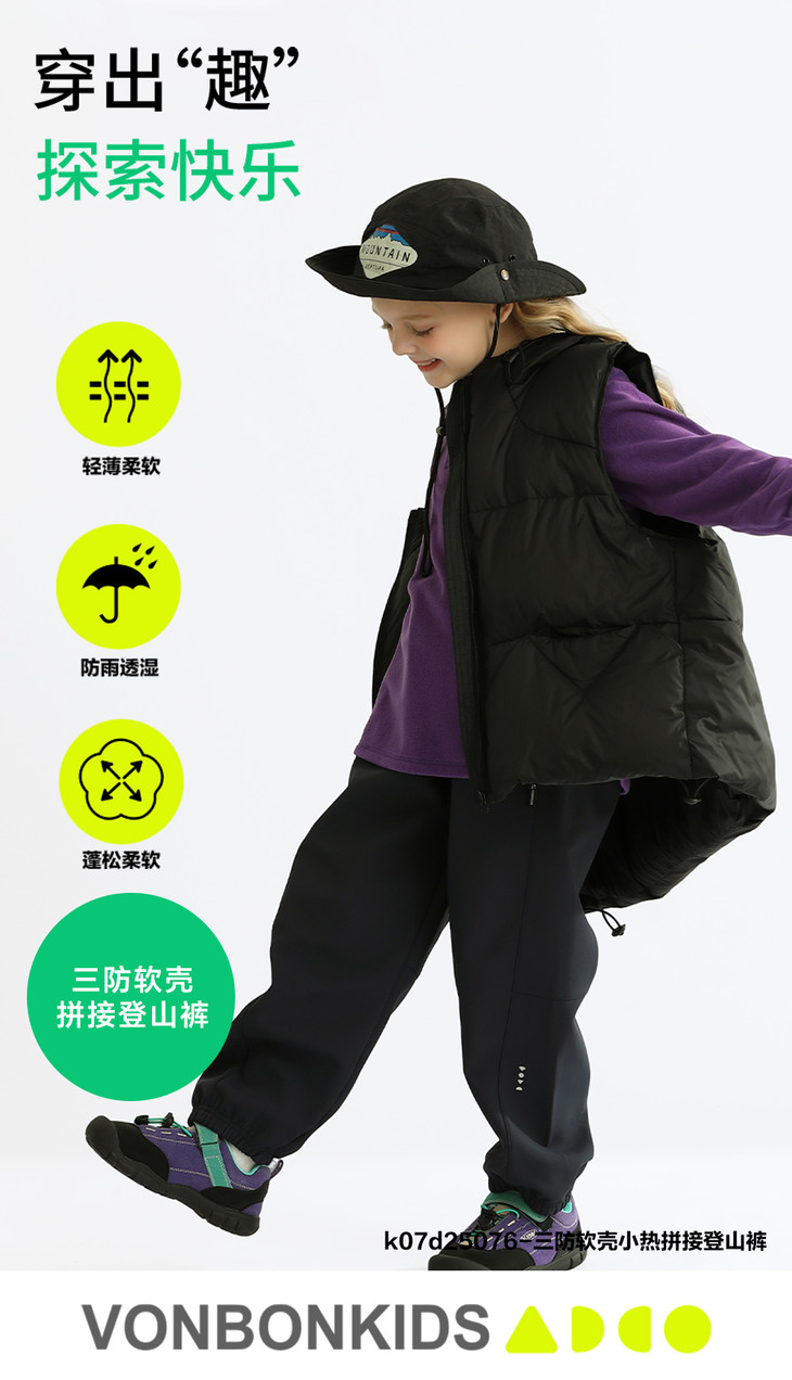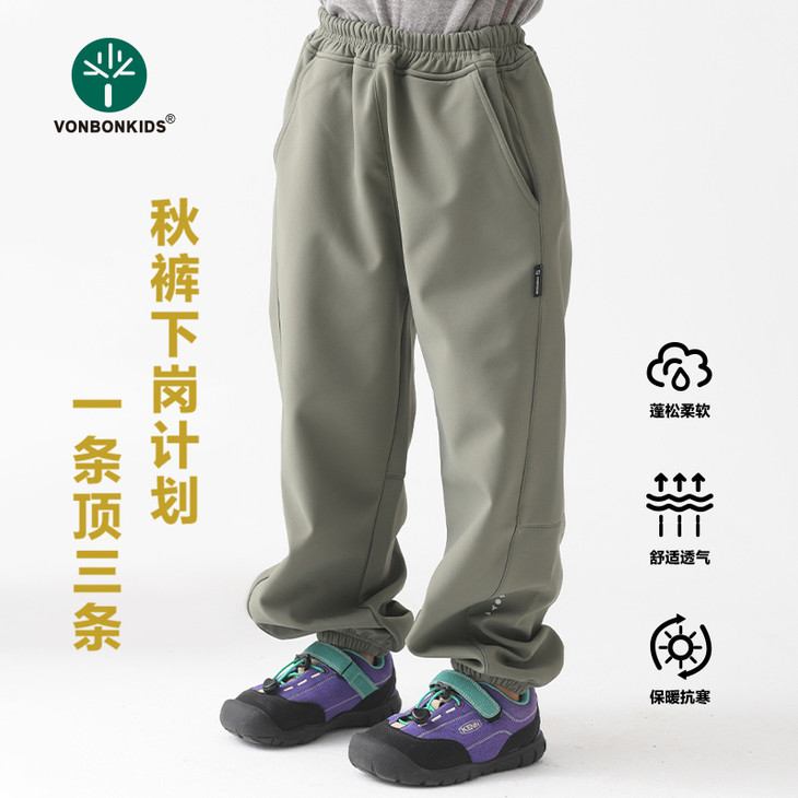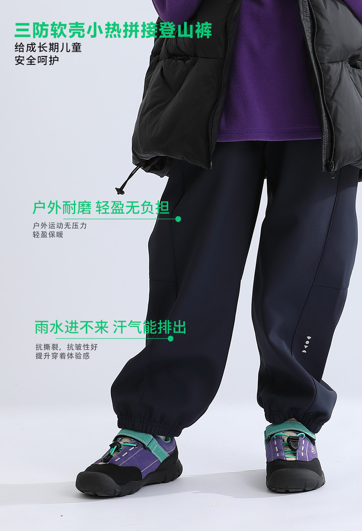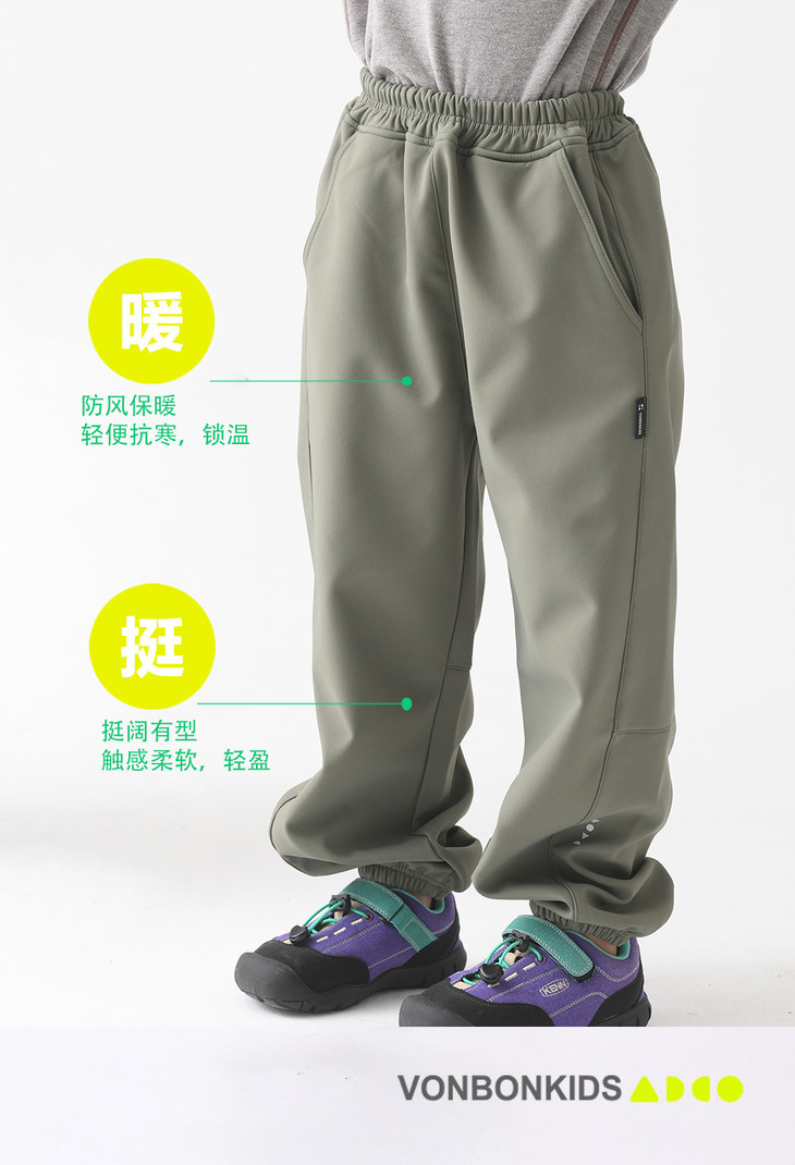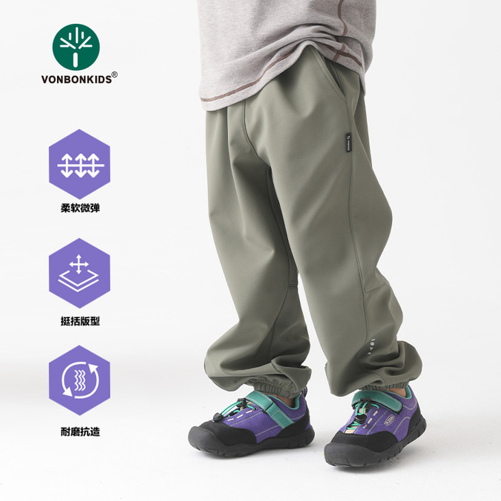 🍒【vonbonkids 三防软壳小热拼接登山裤k07d25076款】 ✨【三防黑科技】防水、防污、防风,💕户外撒欢不怕脏不怕淋,小雨天也能放肆玩~