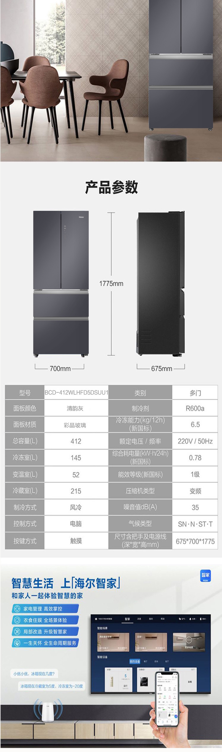 海尔(Haier)冰箱 BCD-412WLHFD5DSUU1