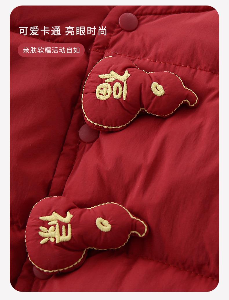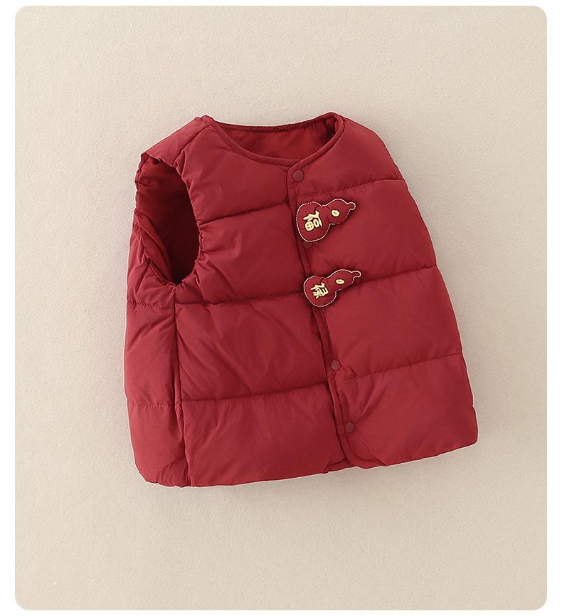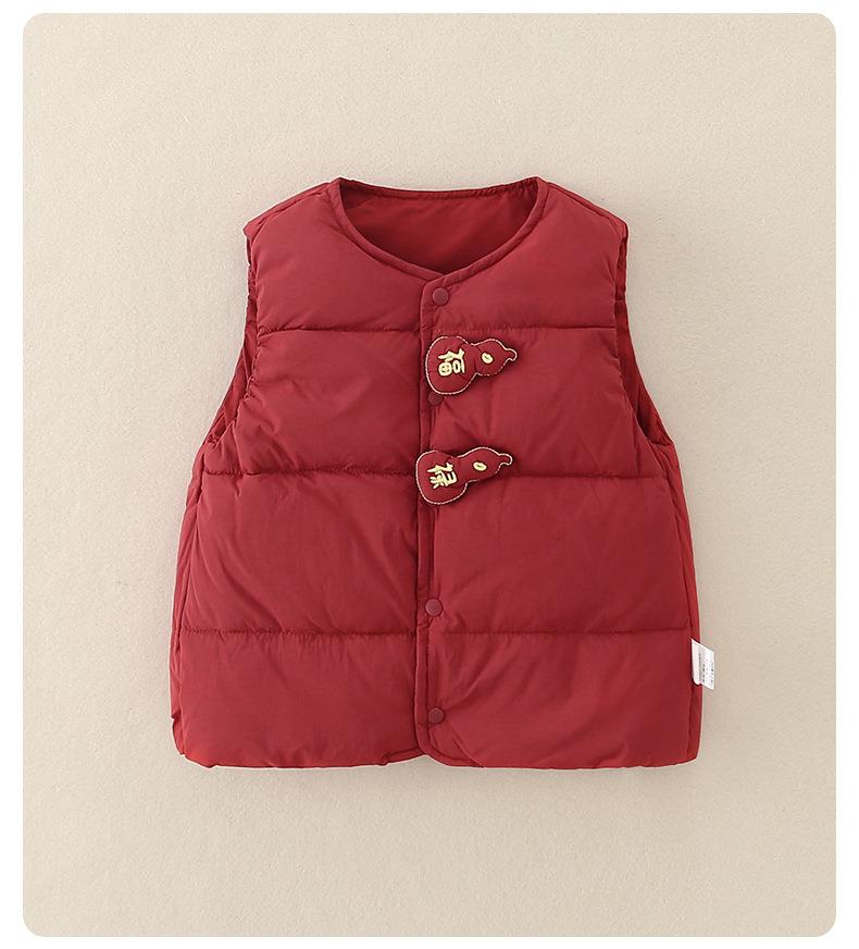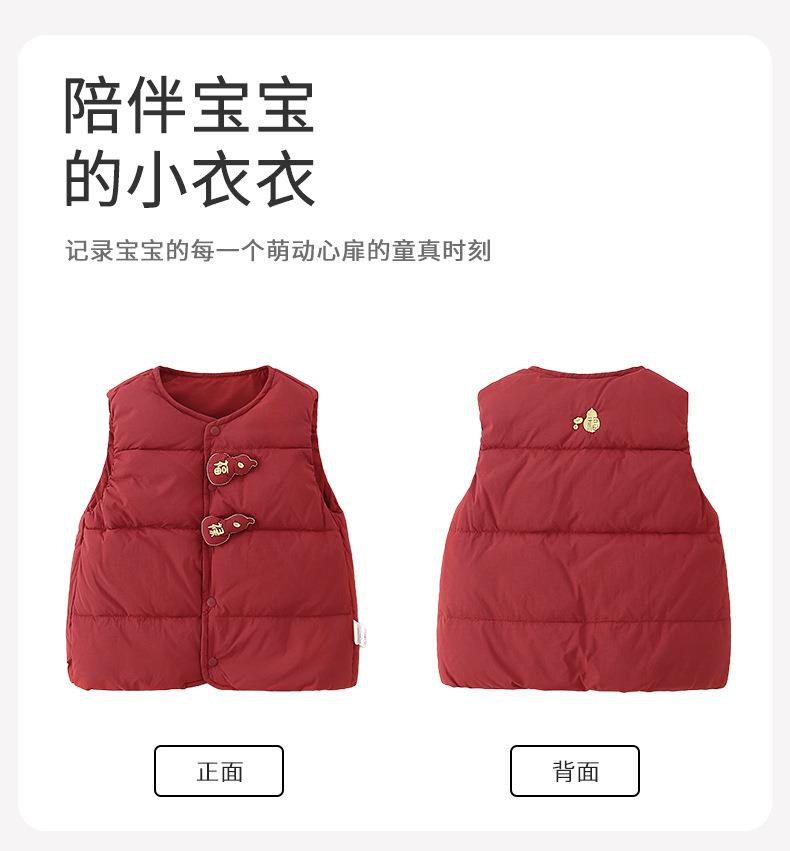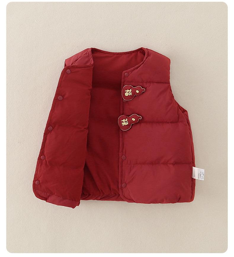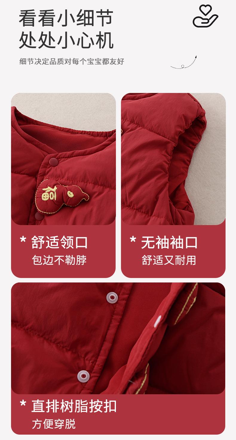 婴儿红色新年轻薄羽绒马甲白鸭绒2025冬季a类新款保暖儿童衣服