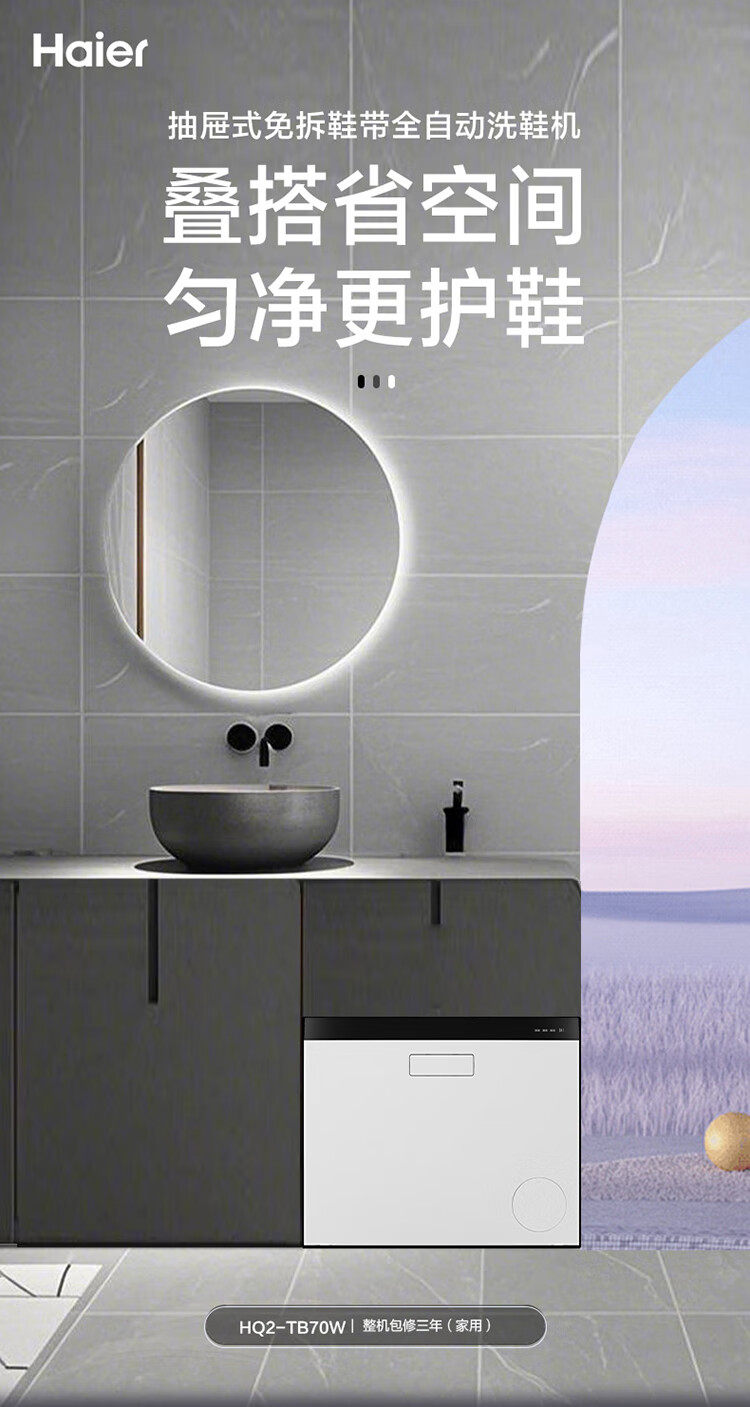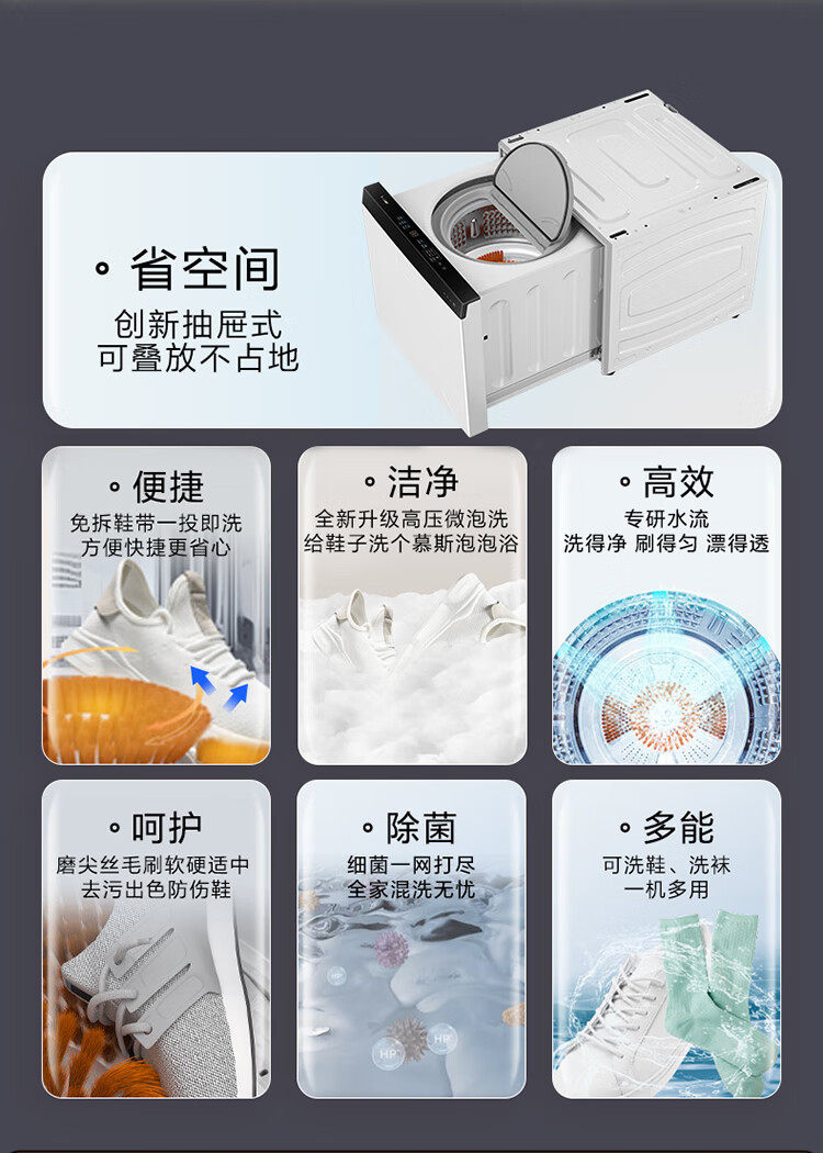 海尔抽屉式洗鞋机懒人全自动洗脱一体免拆鞋带可洗地垫叠放TB70W