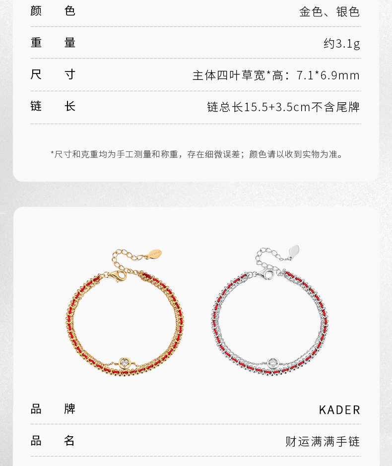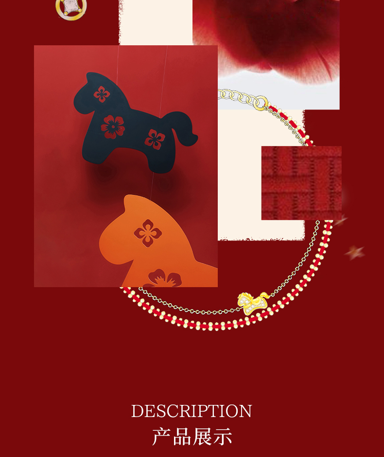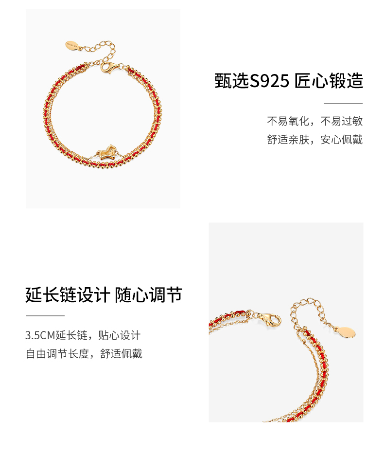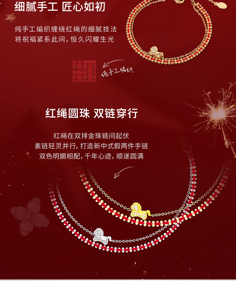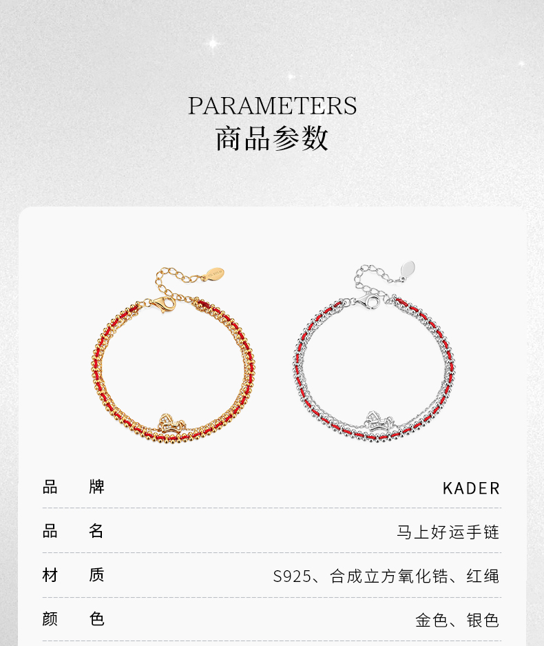 【马年限定】 KADER卡蒂罗 萌马好运手链 925银本命年红绳双链设计款新年礼物送闺蜜送女友