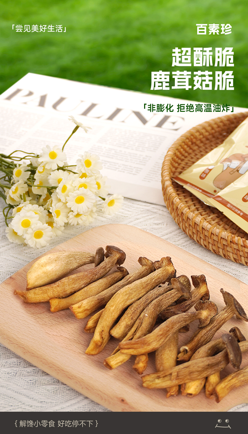 百素珍 鹿茸菇脆 解馋小零食非油炸非膨化食品更健康休闲零食开袋即食果蔬脆