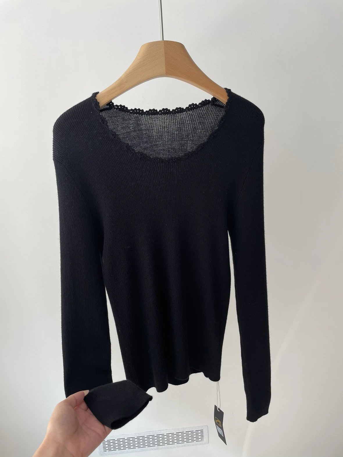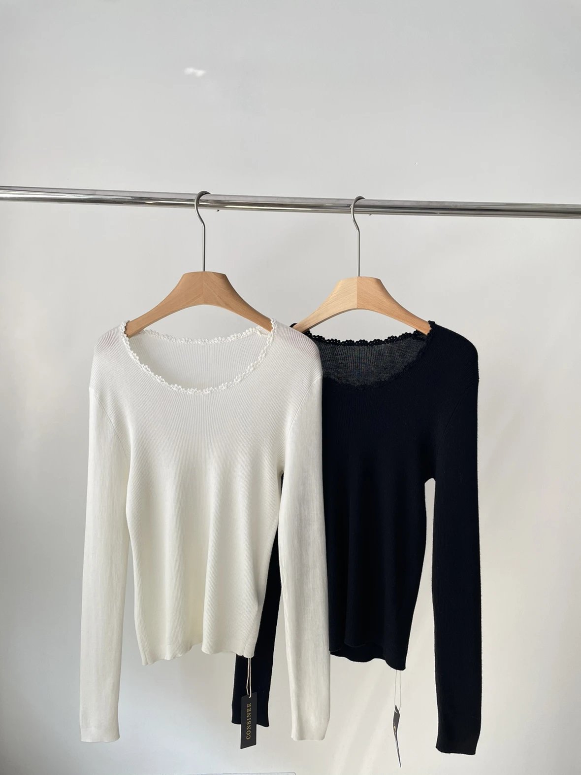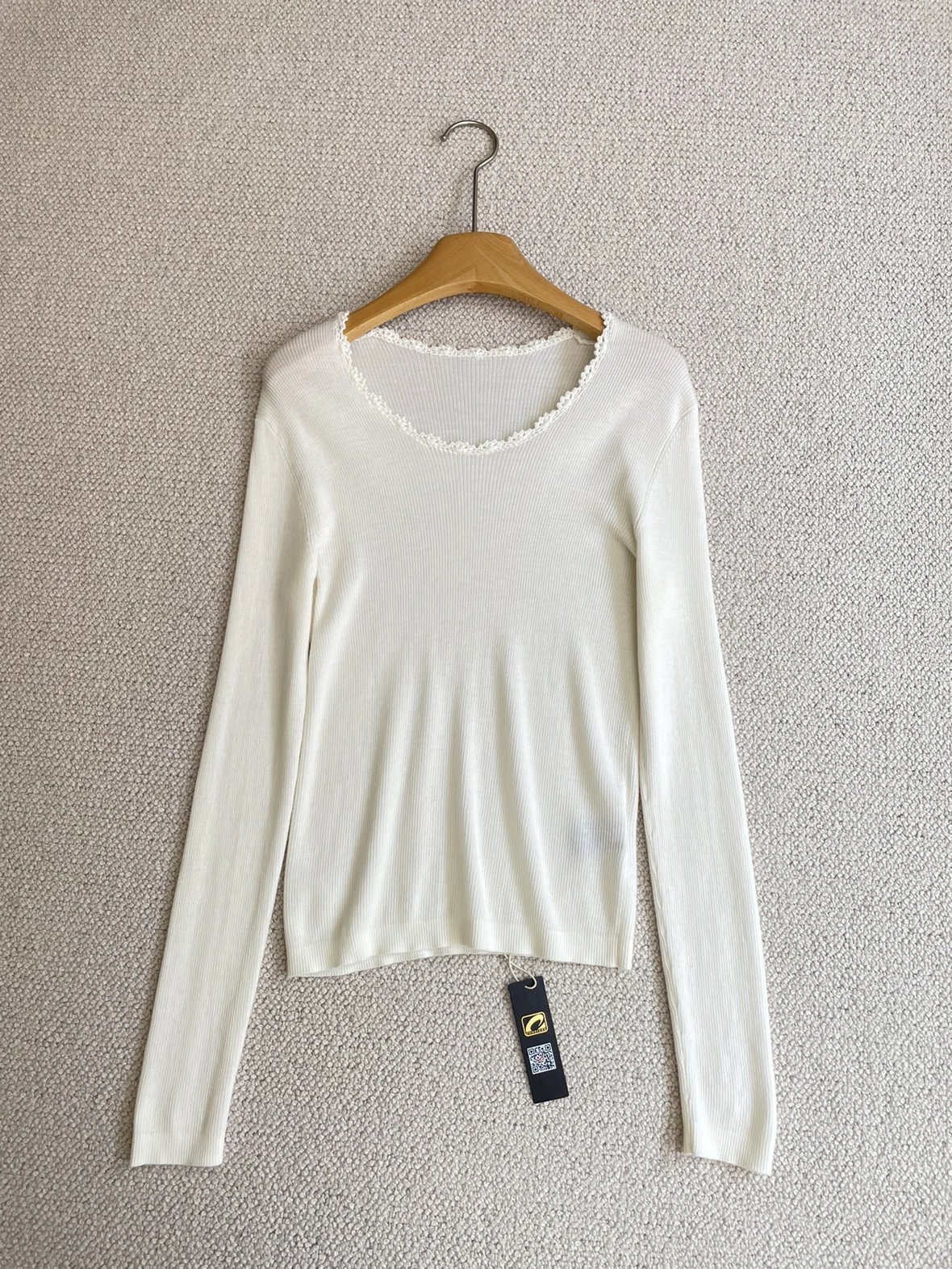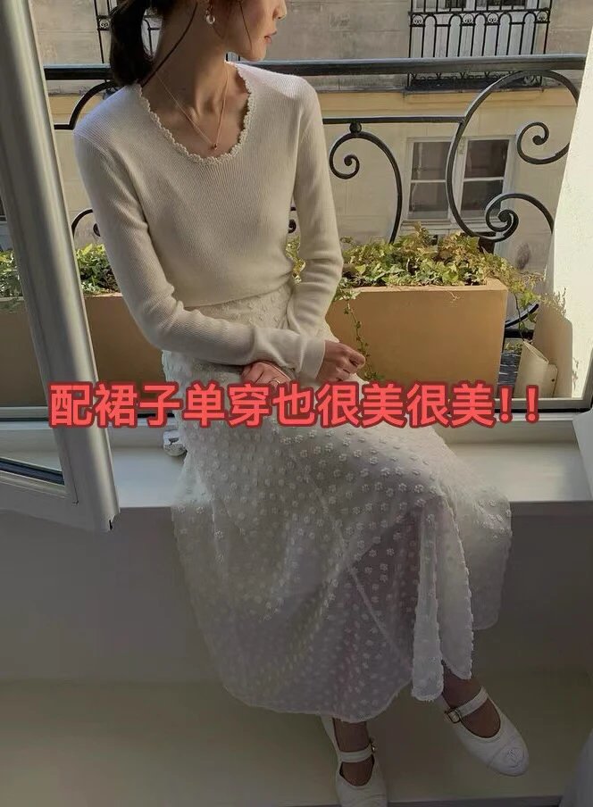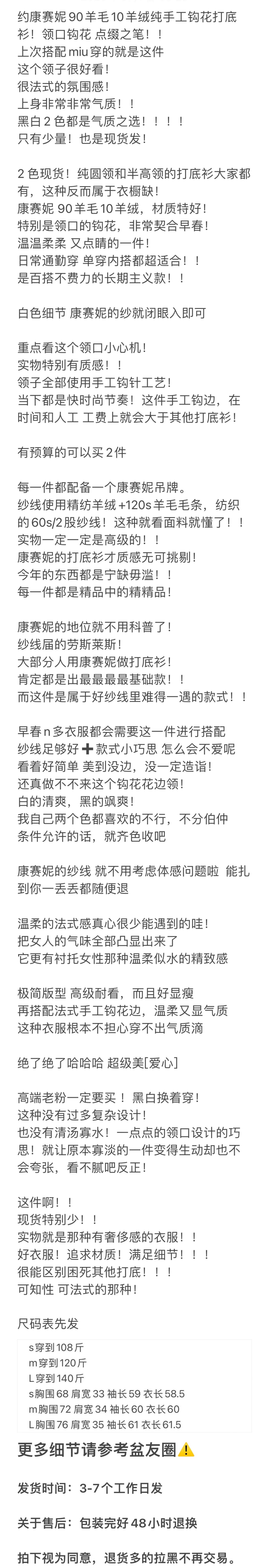 按头安利 康赛妮打底 黑白二色 圆领手工钩花 细节满满 9010羊毛羊绒针织衫