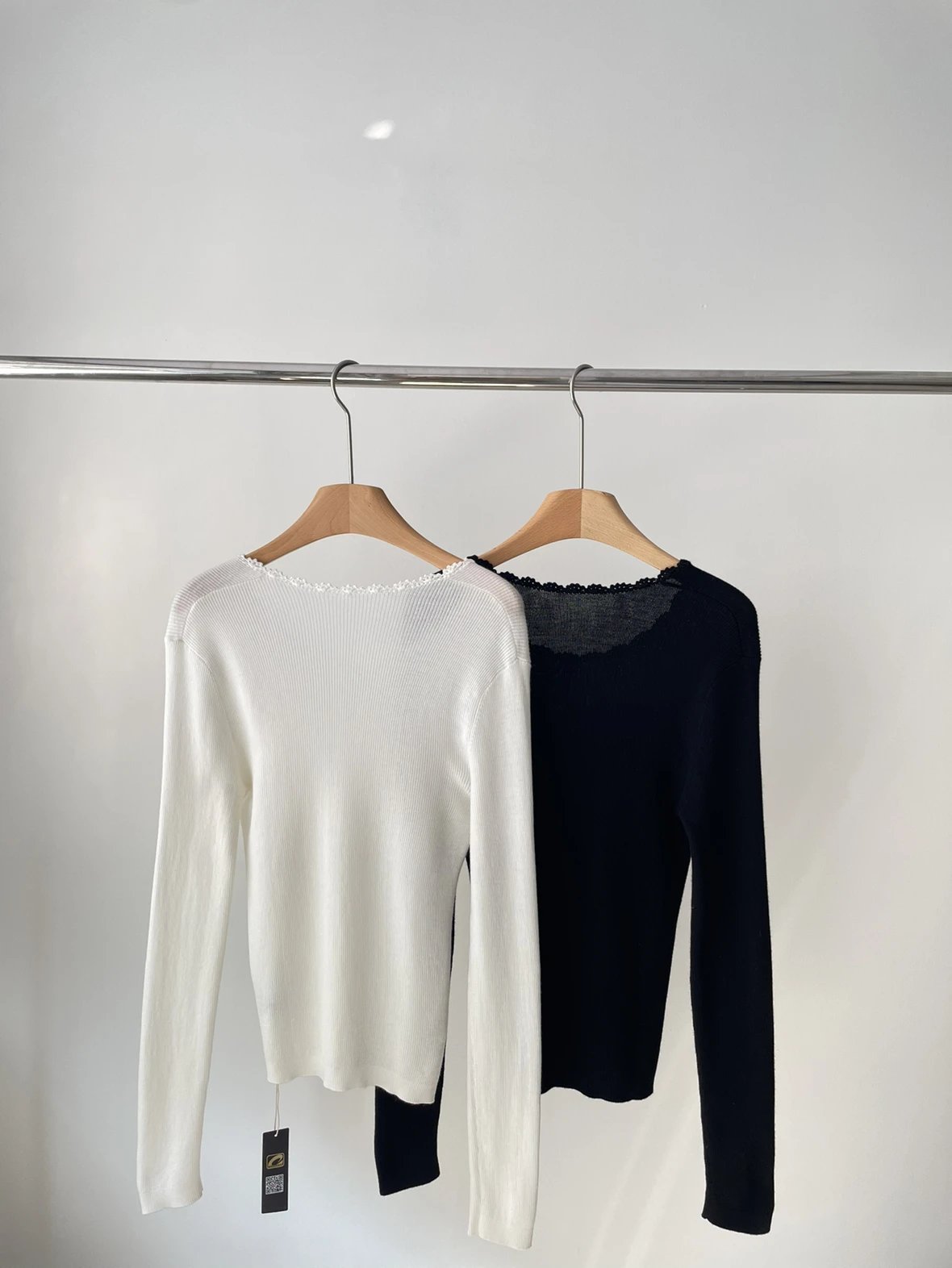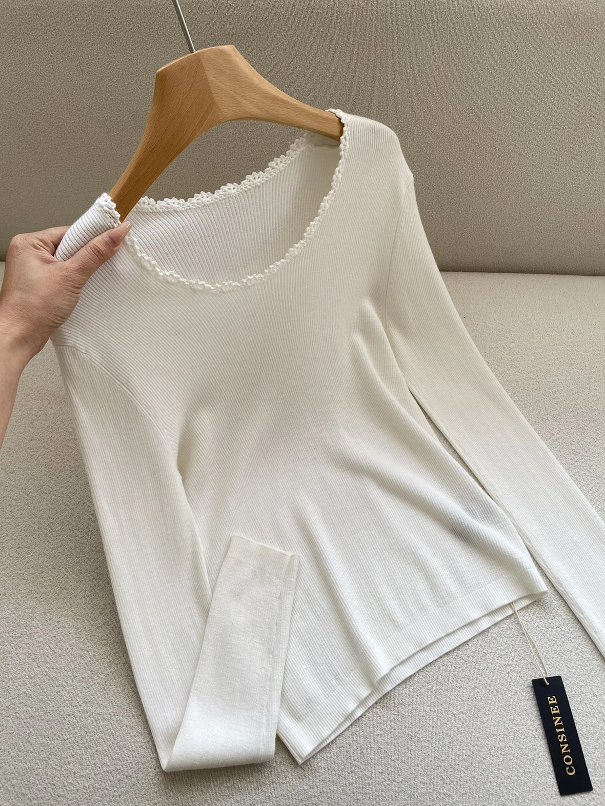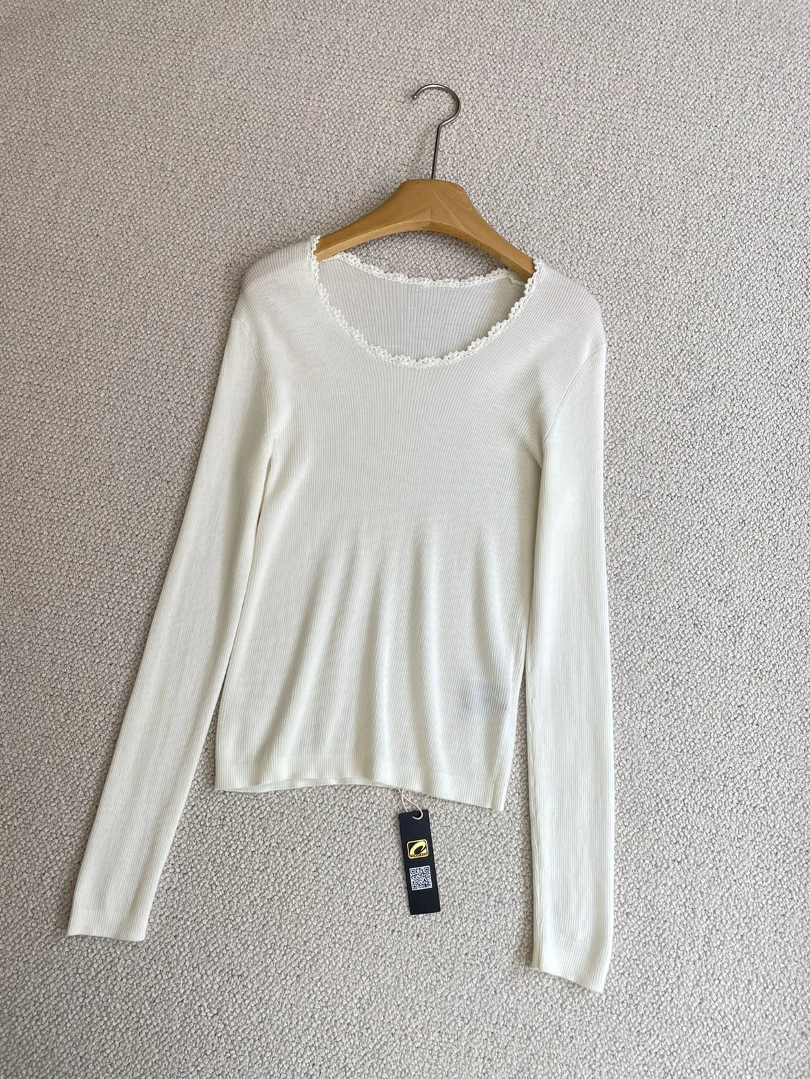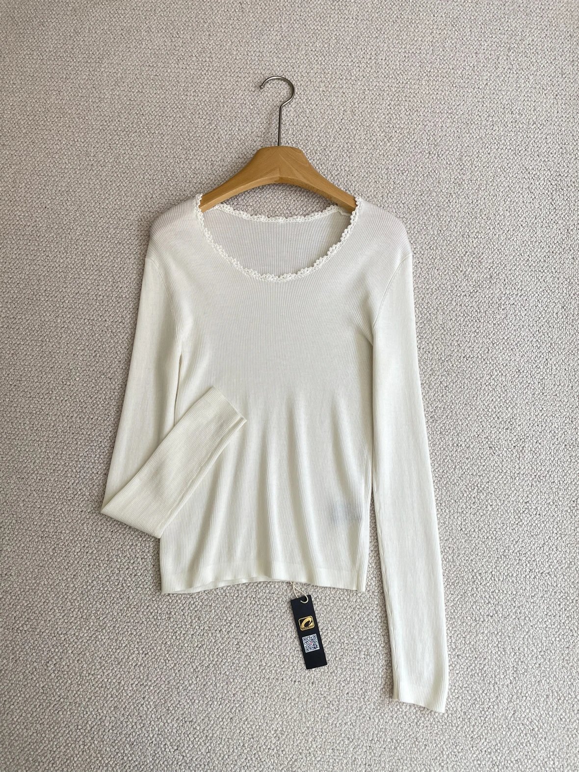 按头安利 康赛妮打底 黑白二色 圆领手工钩花 细节满满 9010羊毛羊绒针织衫