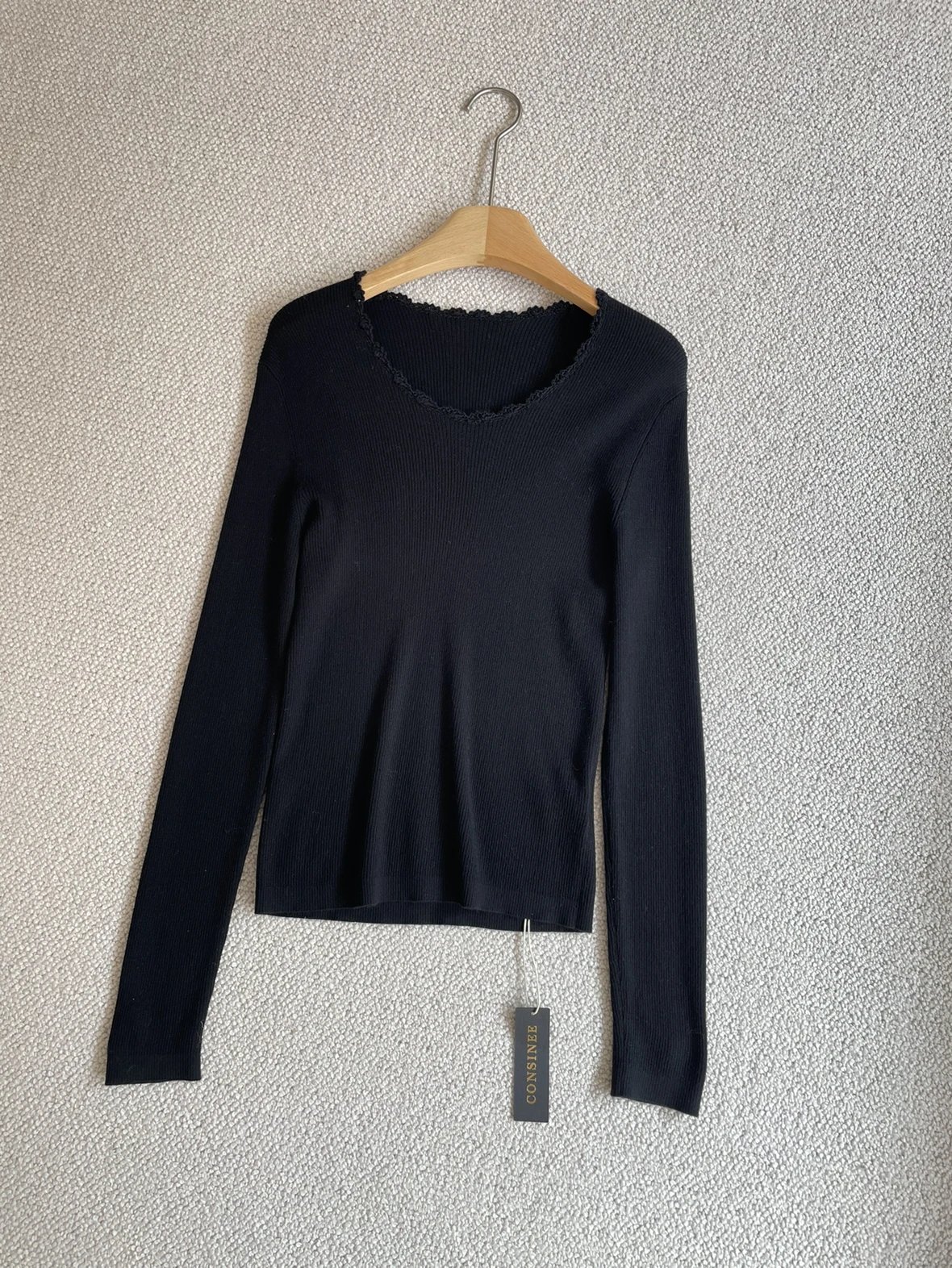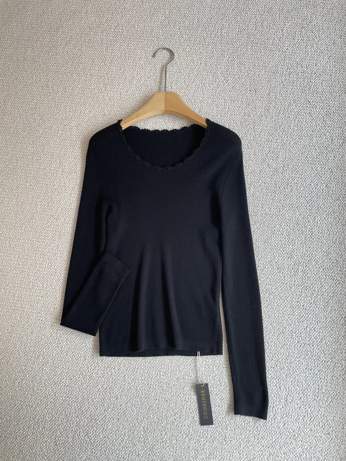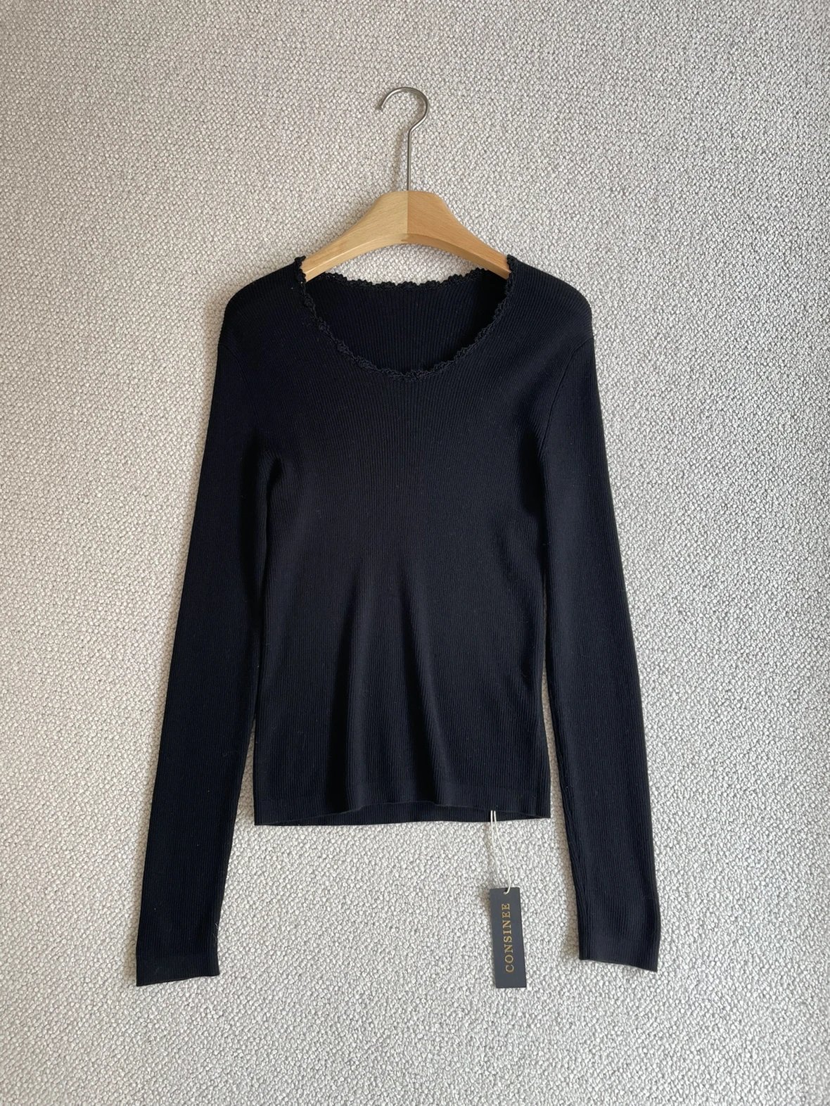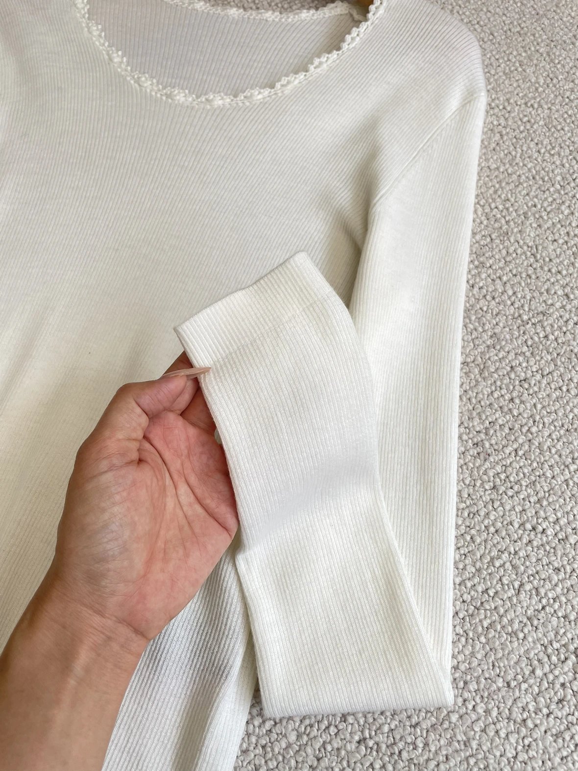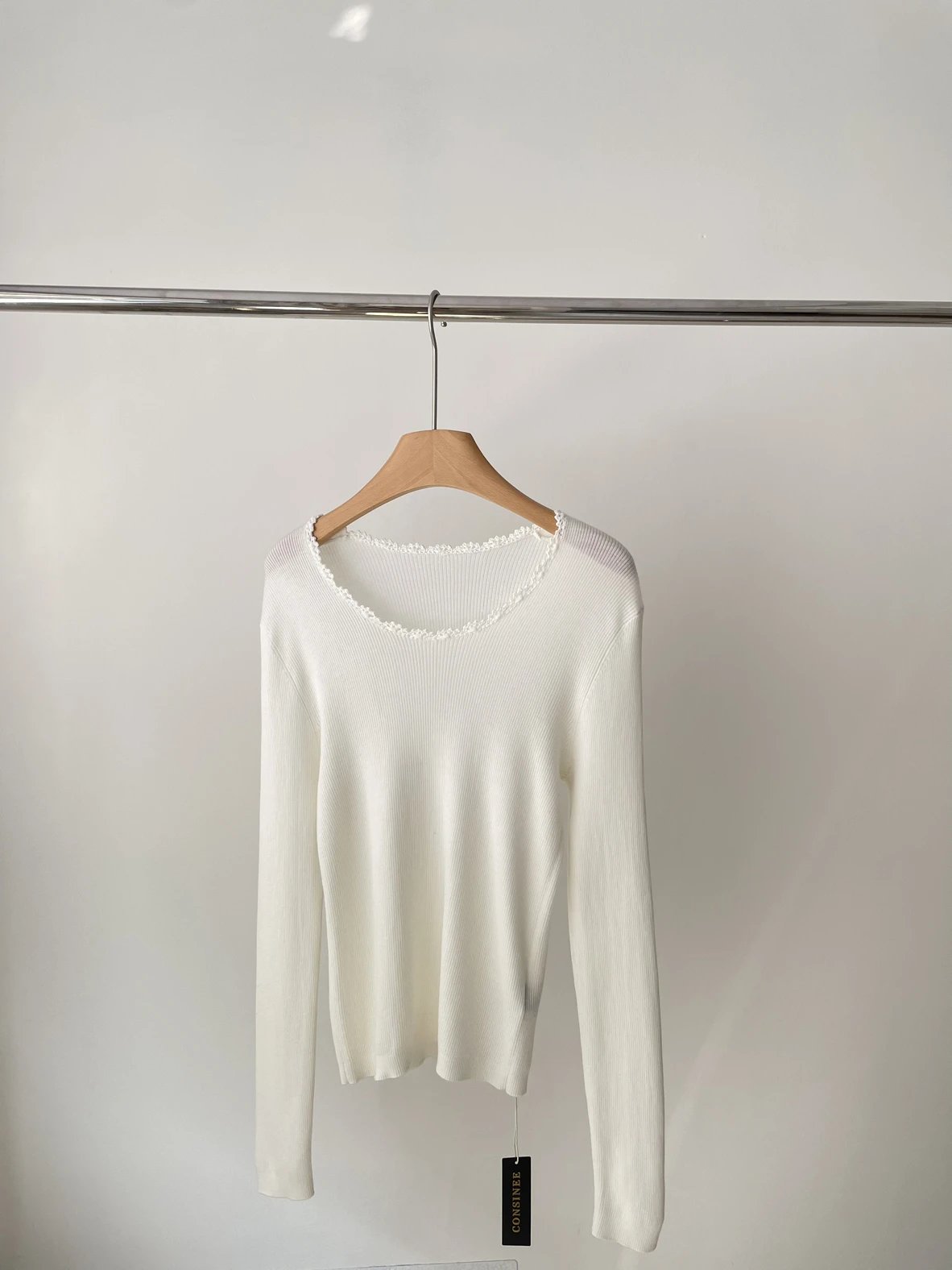 按头安利 康赛妮打底 黑白二色 圆领手工钩花 细节满满 9010羊毛羊绒针织衫