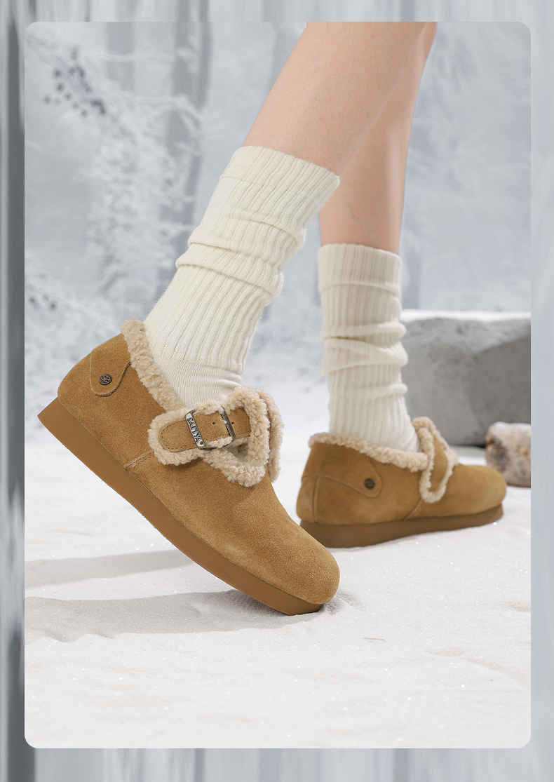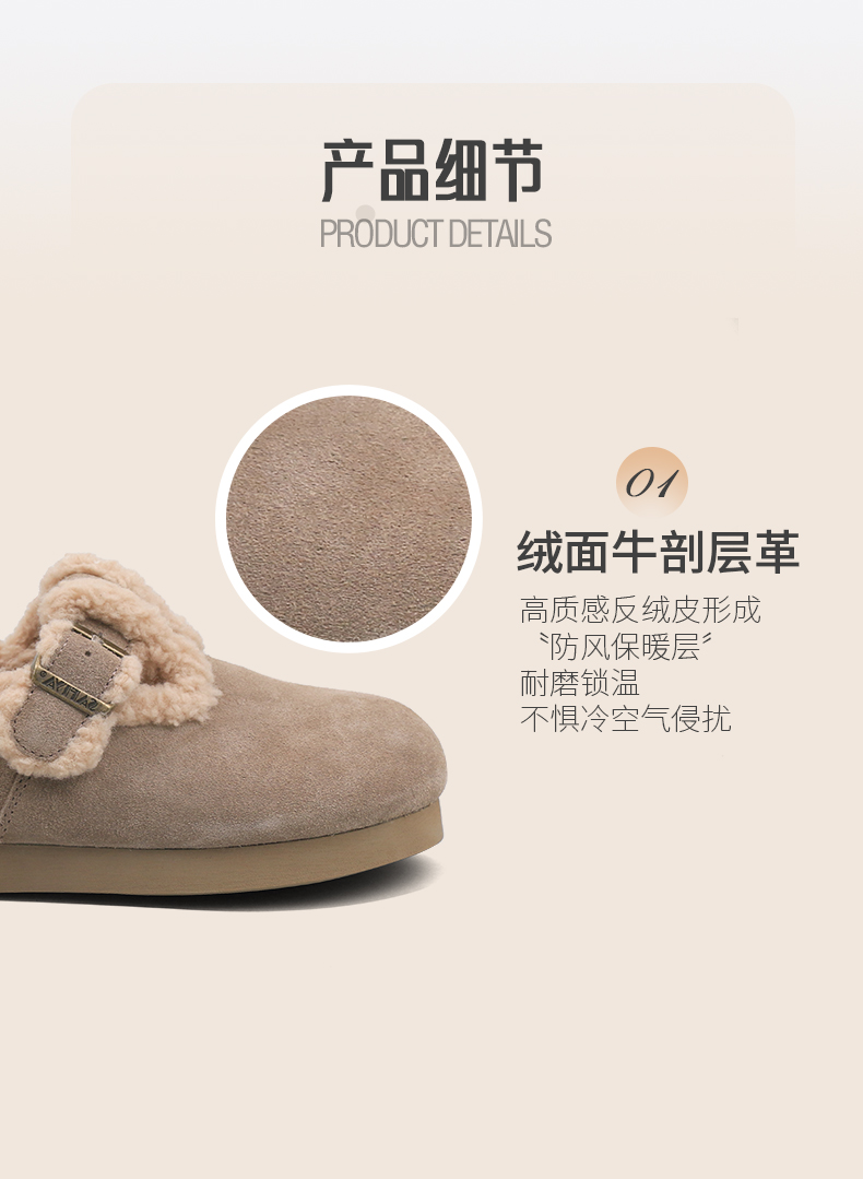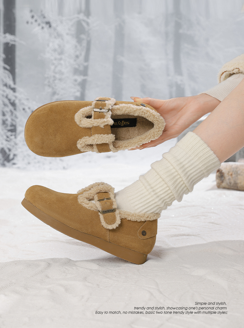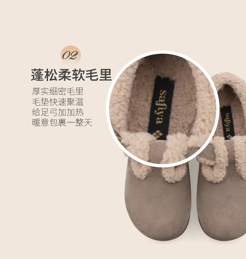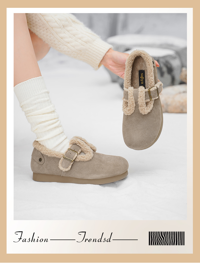 Safiya/索菲娅2024秋冬保暖加绒一脚蹬外穿平底羊羔毛毛勃肯鞋 SF44112035