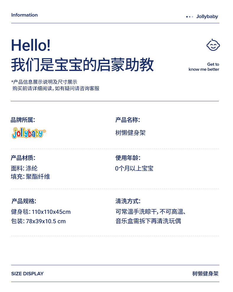 【品牌直供】Jollybaby英文树懒健身架 0-18个月