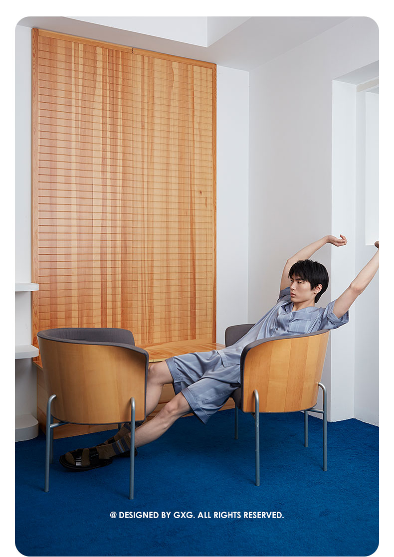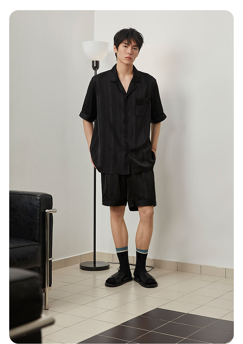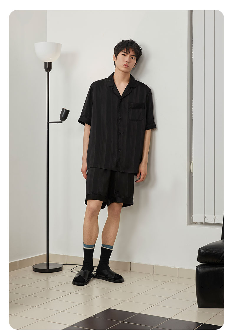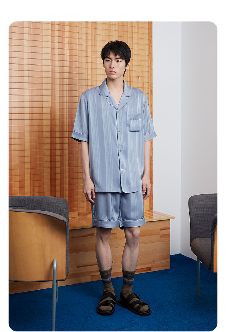 GXG男士家居服 冰丝感宽松暗条纹短袖睡衣套装男 25年春夏新品